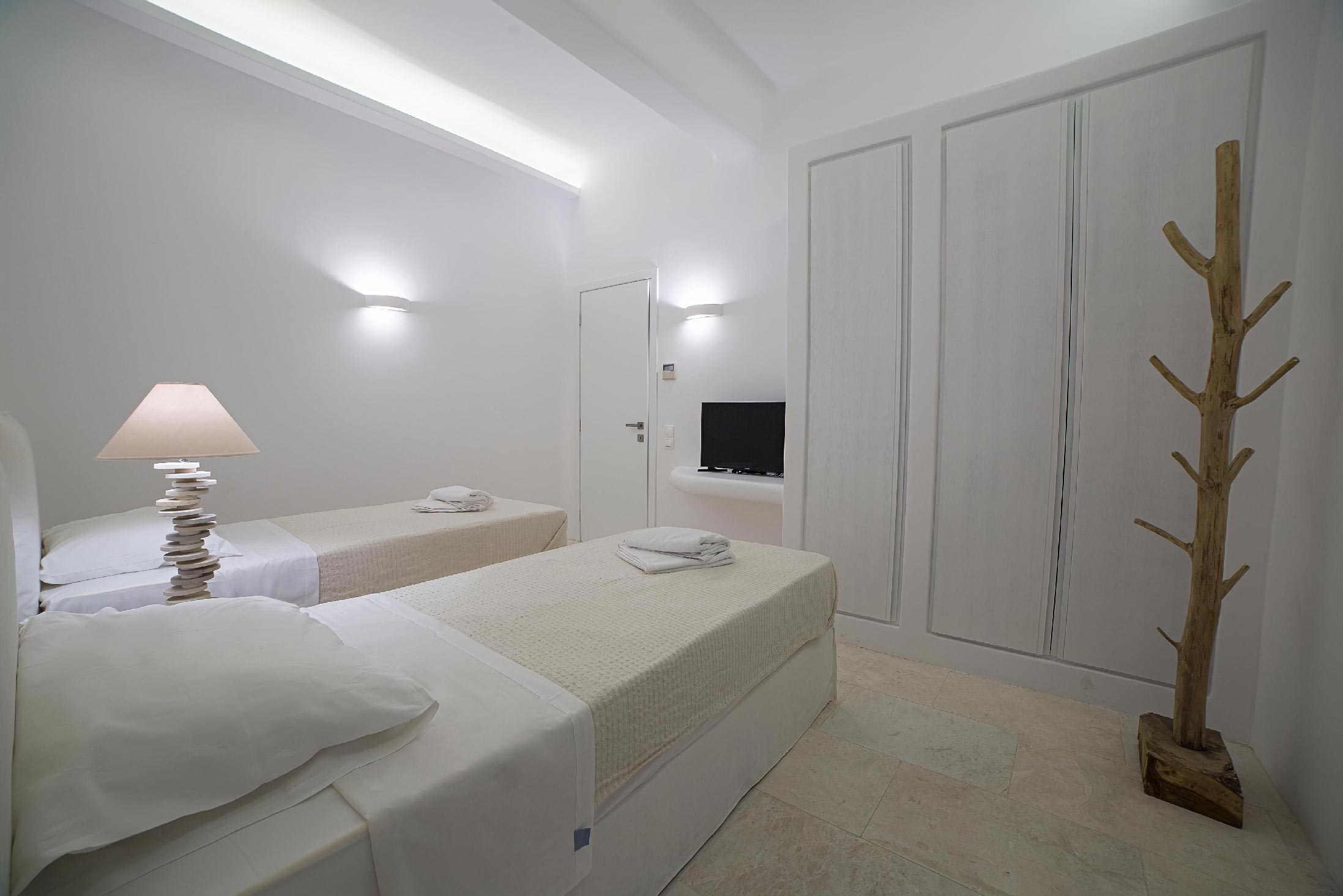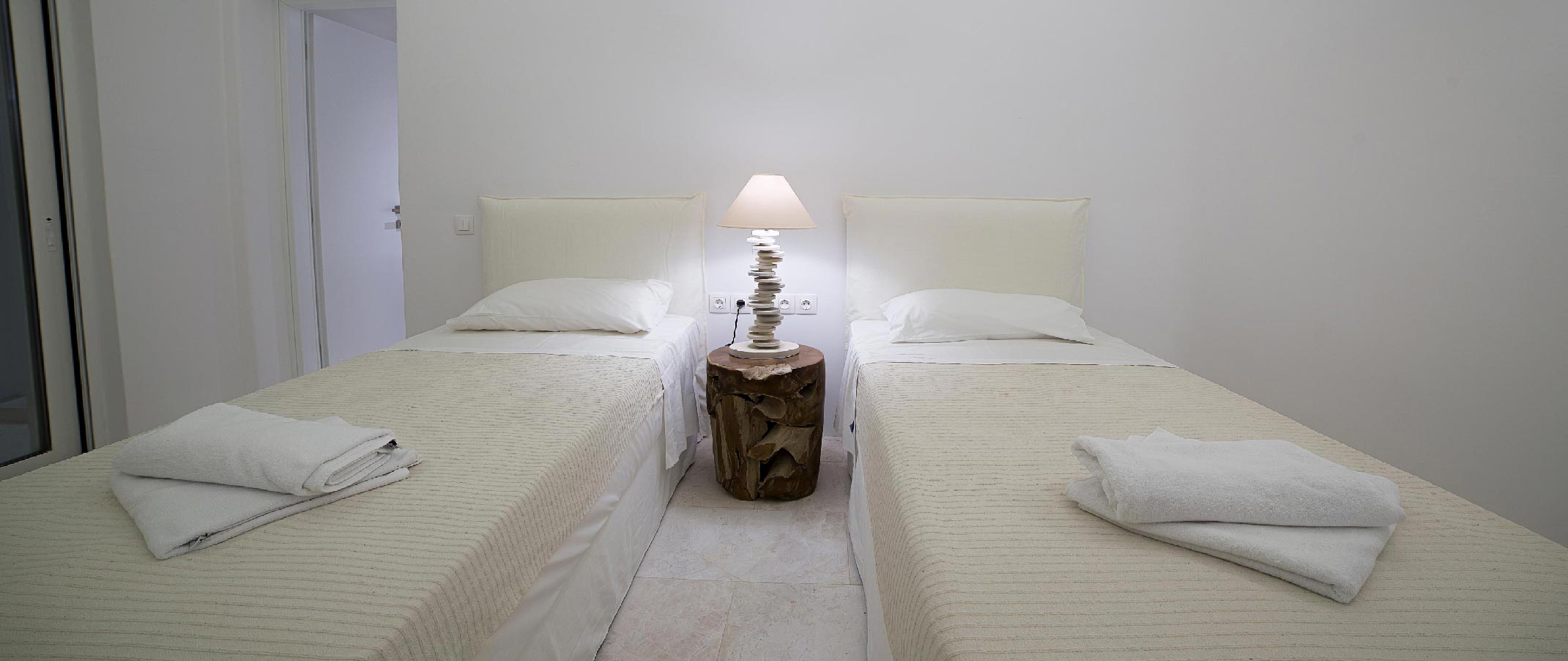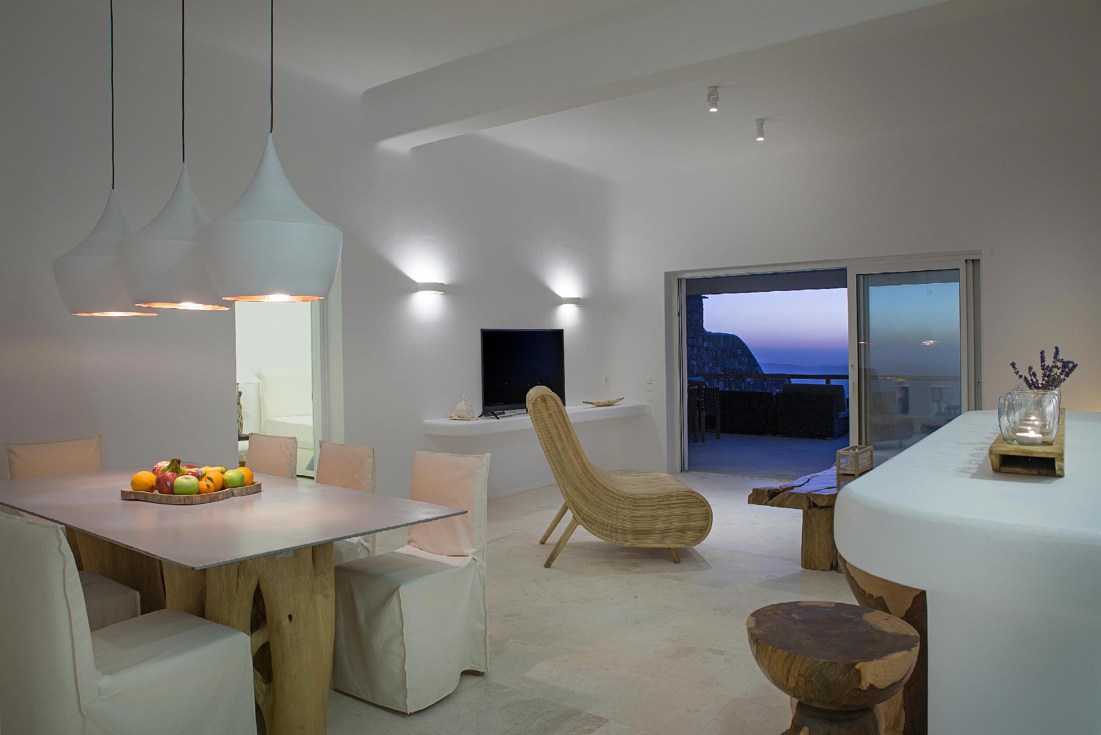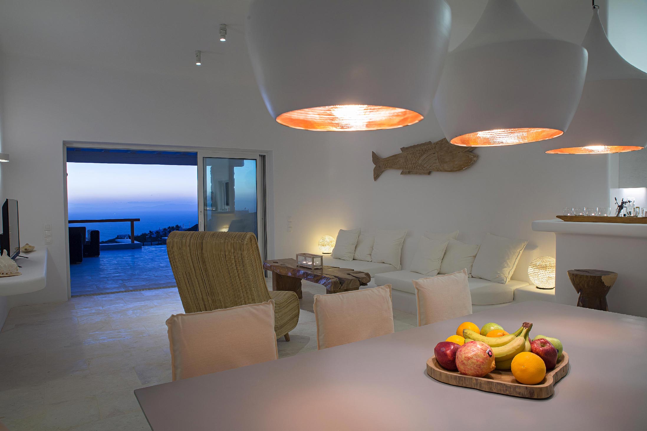 A luxurious villa, part of a glorious complex of Villas and Guest Houses. Located at the mid level of the complex, offering unique sea views and sunset. With an outdoor lounge, dining room, swimming pool and sun loungers. Inside you will find a spacious lounge with a large dining area and a fully equipped kitchen. Two master bedrooms with double beds (160cm*200cm) and two master bedroom with two single beds (100cm*200cm) each.Three independent Guest Houses with one double bed each (160cm*200cm). Two of them located at the lower level of the complex which are connected with the outdoor area of the Villa through a traditional stone stair case. The third Gest house is next to the Villa and has a separate entrance.