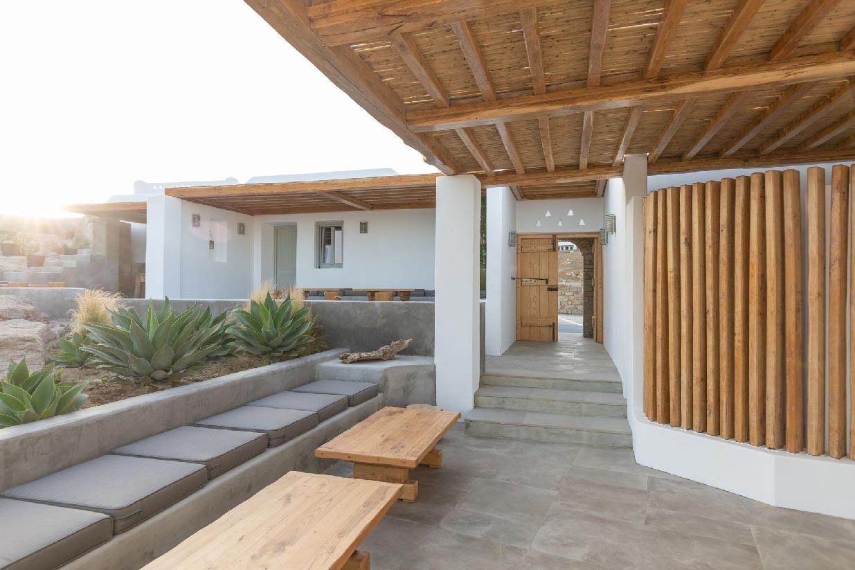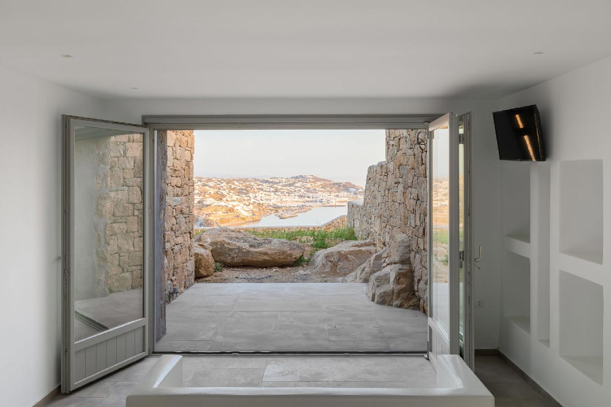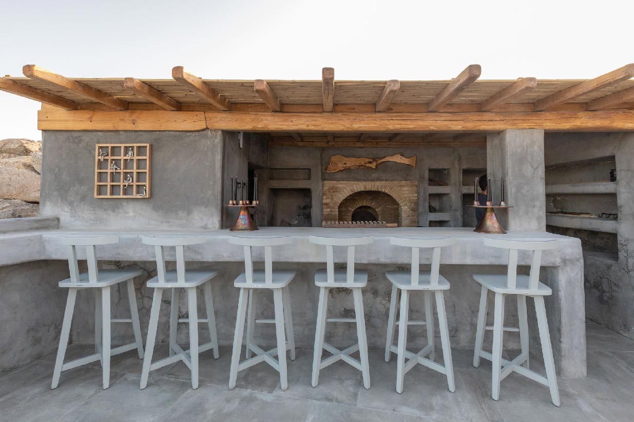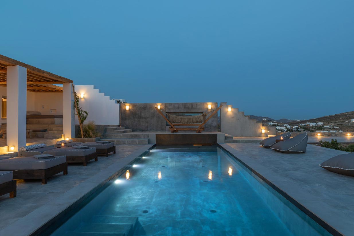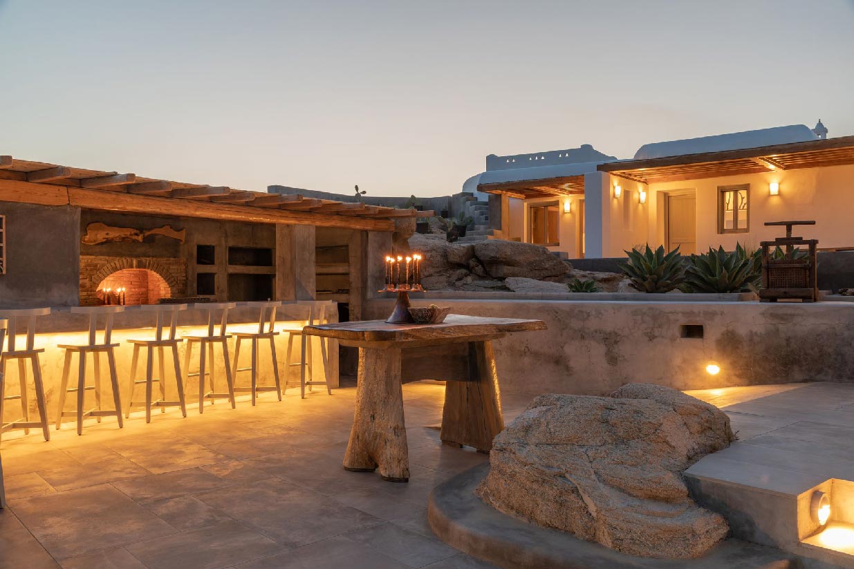 Following the authentic mykonian way of living, almi consists of one main house and 3 independent guest houses that frame a very secluded pool and a large outdoor living area surrounded by the impressive Mykonian nature of epic rocks and cactus.