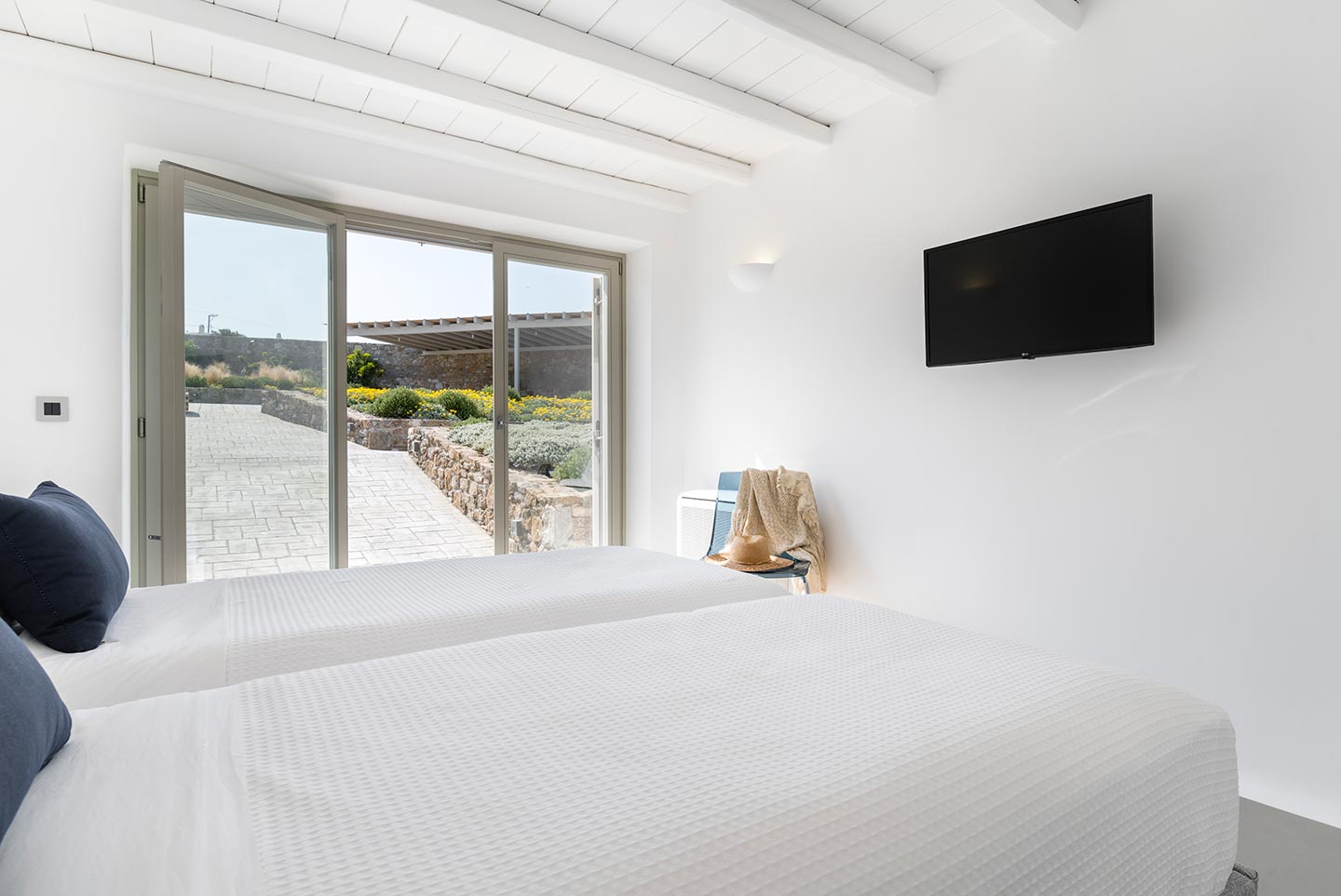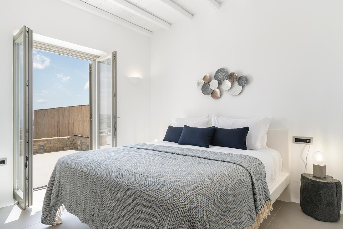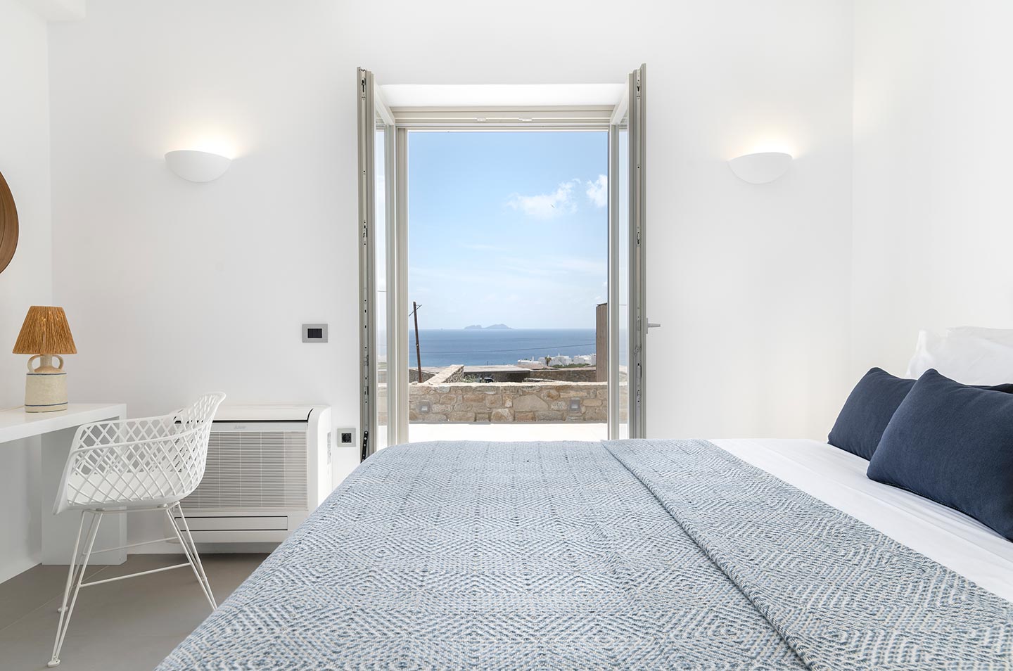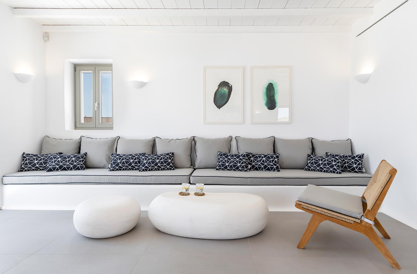 Villa Alma is a Cycladic villa, enhanced by modern comforts cleverly blended with minimal chic and contemporary interior designs. The property is located in Kalafatis area, providing numerous superb beaches and club-restaurants and yet not far away from the center of Mykonos town. Although the villa is just steps away from the sea the guests may enjoy its outdoor luxury spaces while experiencing unique and mesmerizing views of the Aegean’s natural landscape.