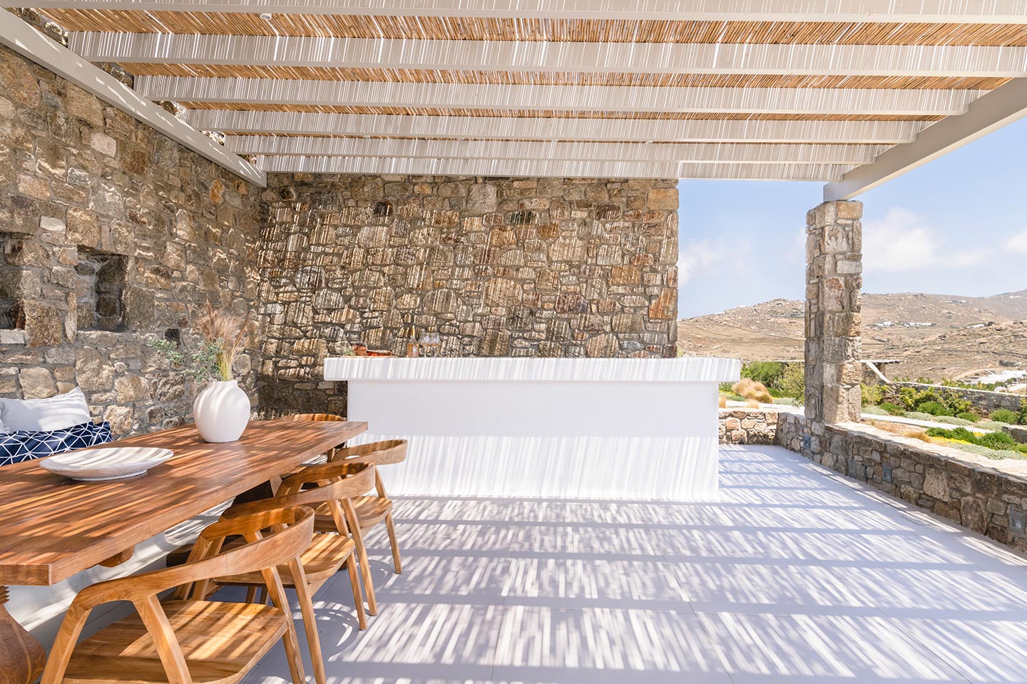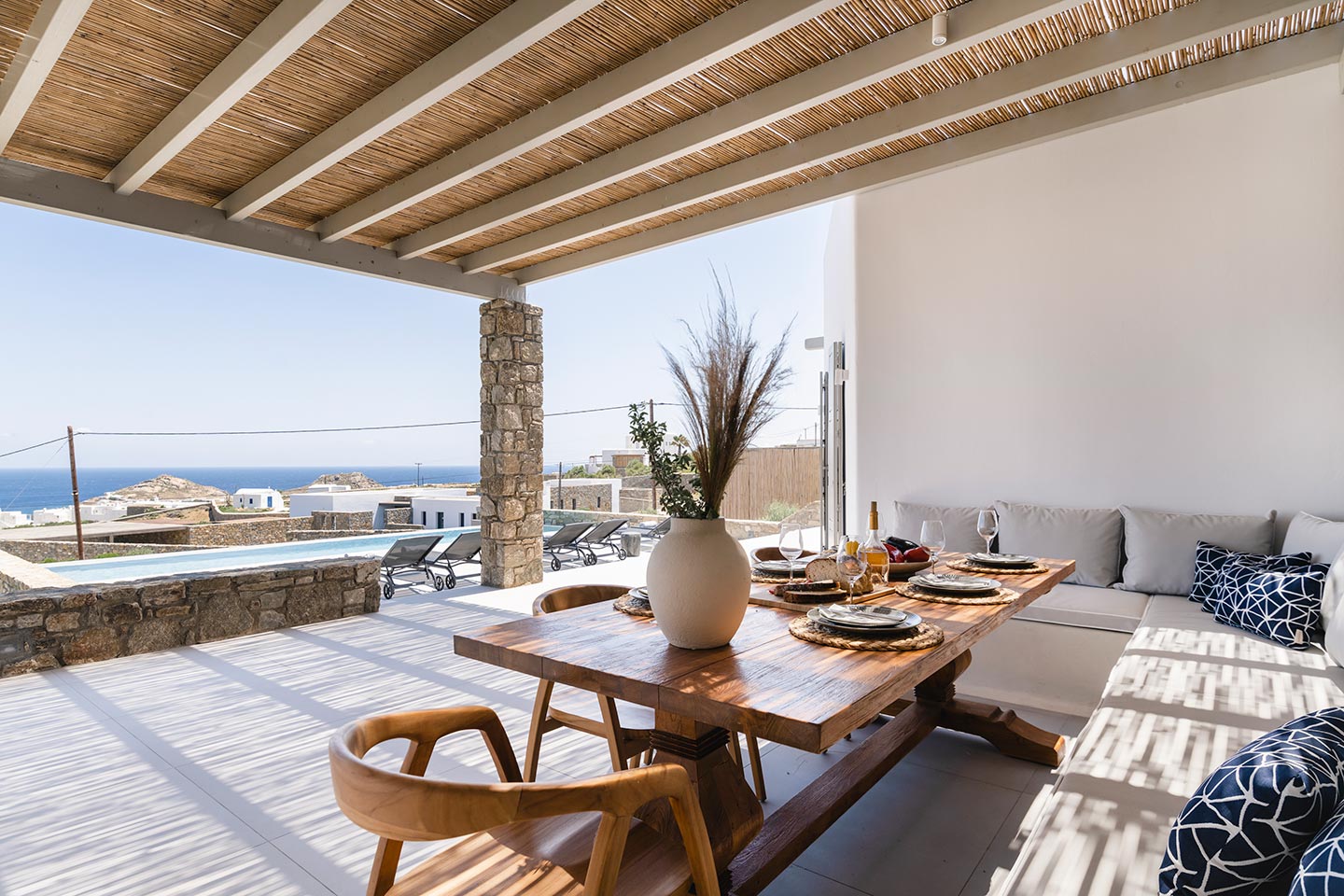 • Dining area is protected from the Mykonos’ windy weather.