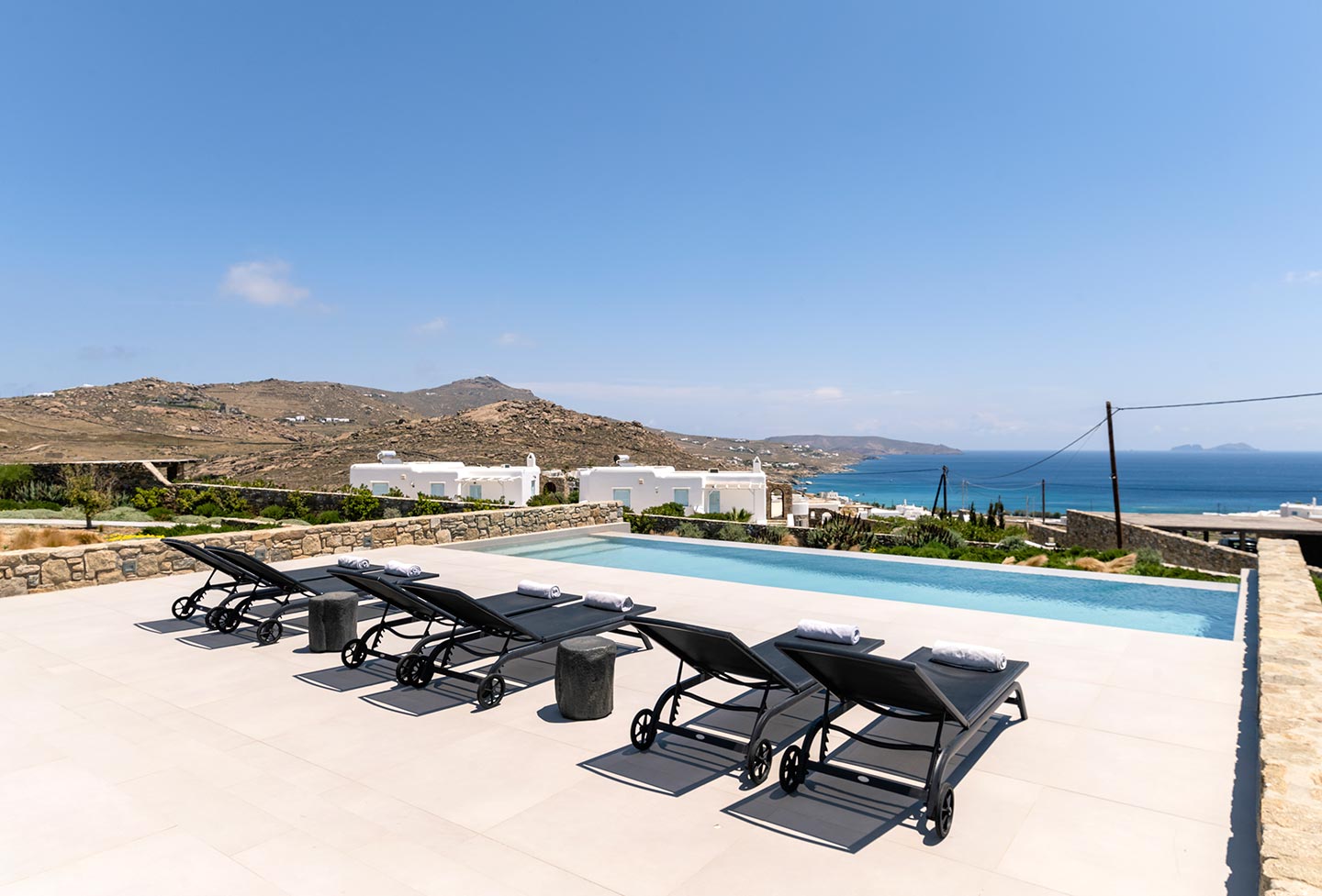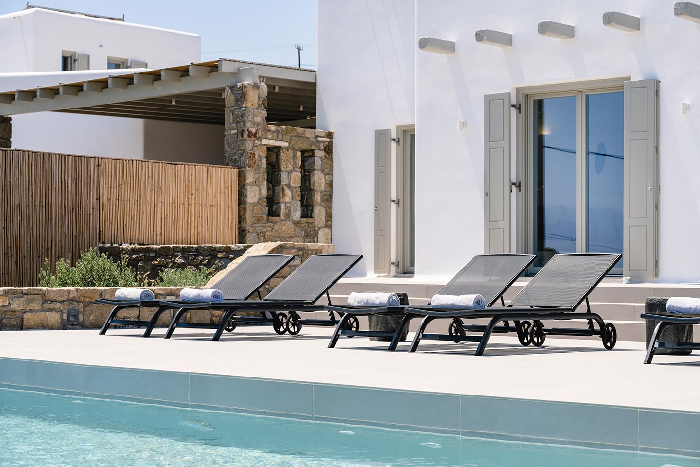 • Private swimming pool (with hydromassage feature) adding pairs of sunbeds and outdoor showers.