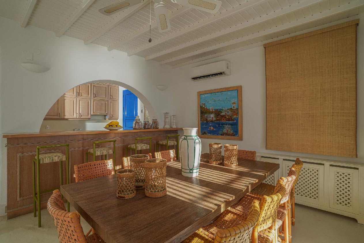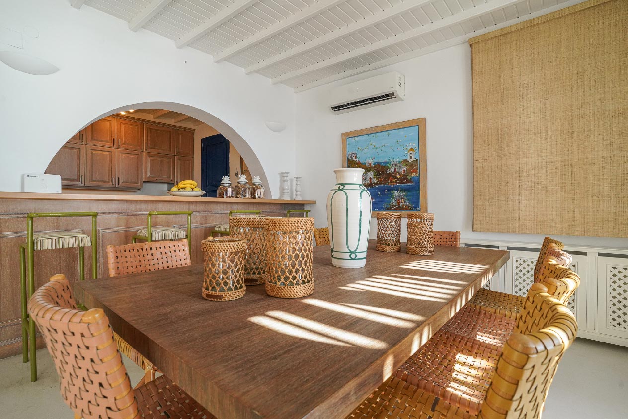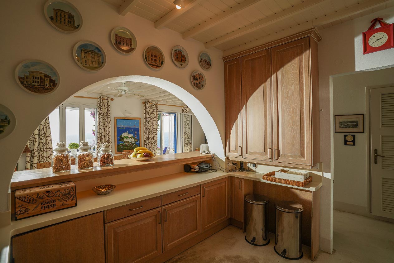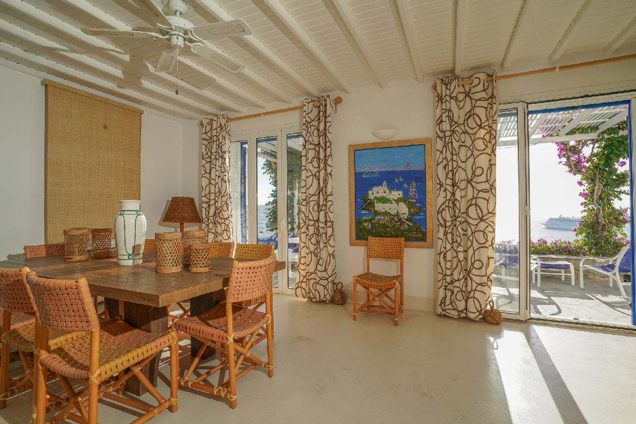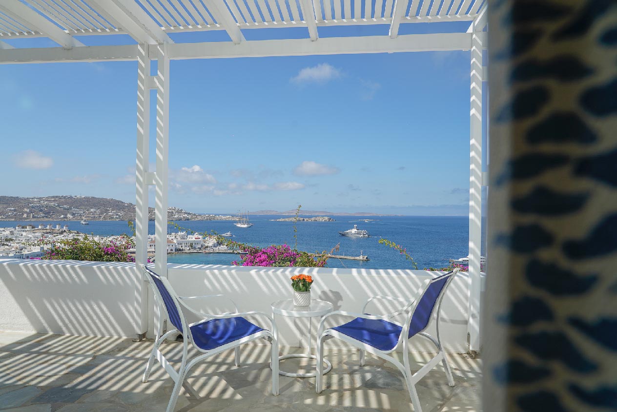 Postcard views , 5 minute walk into Mykonos town. Perched above the old port of Mykonos town.The villa enjoys breathtaking views of Mykonian sunsets, the town's unique Cycladic architecture and the endless Aegean sea. This special villa is the ideal refuge for guests who want the best of all worlds, a perfect location with direct access to Mykonos’ cosmopolitan lifestyle as well as tranquility and relaxation. Staying here, guests can enjoy unforgettable moments and create the best memories.Outdoor space consists of two terraces, facing Mykonos town, maximizing the magnificent views. The upper terrace, which is outside the living area, has a comfortable seating area and an outdoor dining area covered with an elegant pergola. Just a few steps down is a second terrace with a private swimming pool, as well as a relaxation area with its own small bar. Cosmopolitanism is rediscovered in the style and comfort of the interiors.