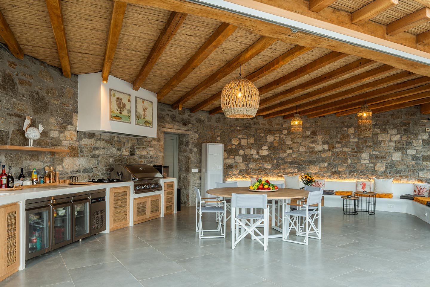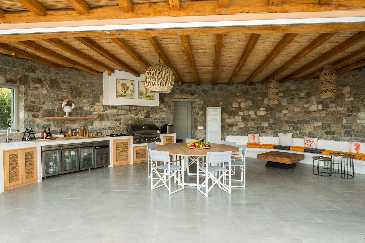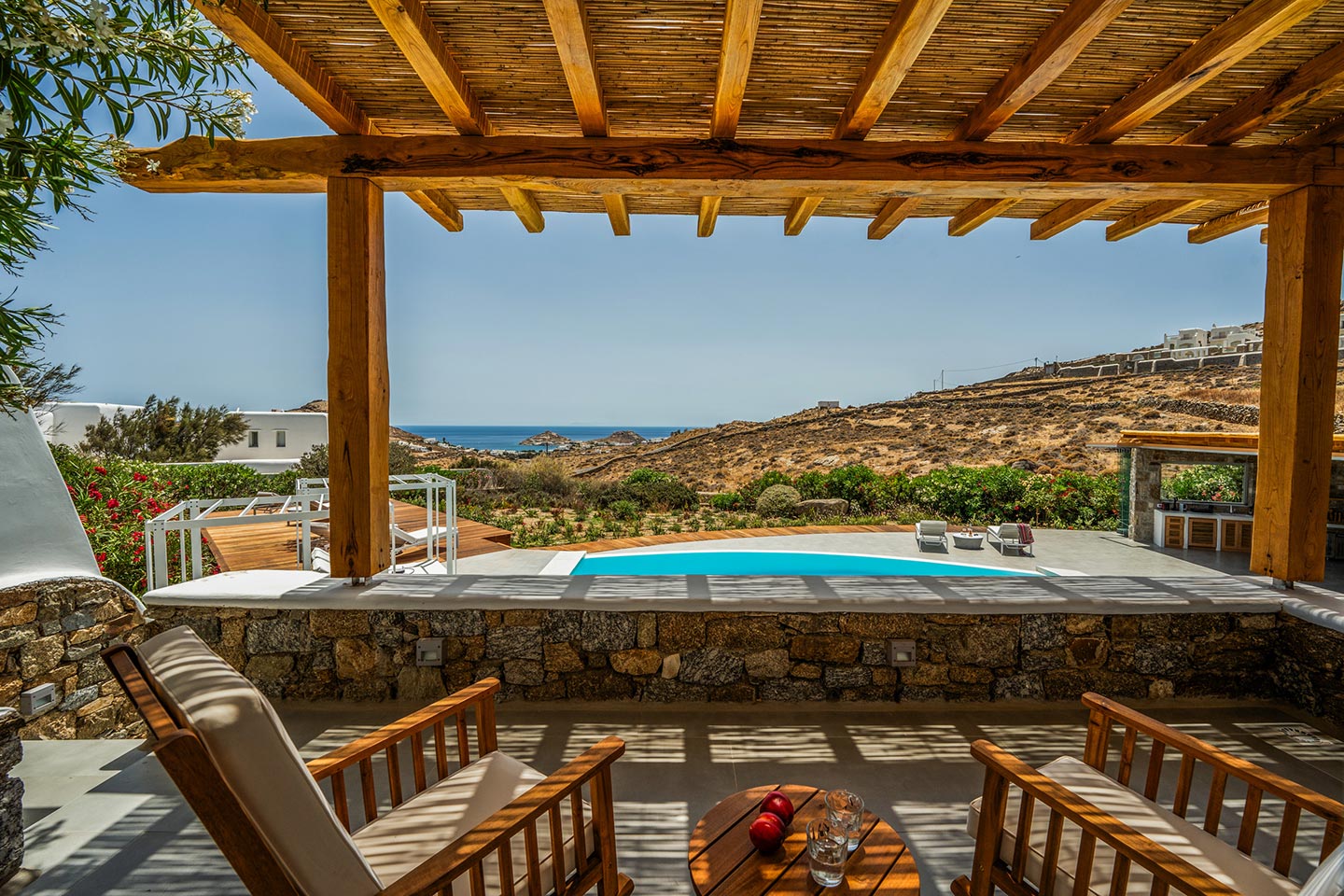 Escape to this paradise in this newly renovated 4 -bedroom villa in the upcoming area of Kalafatis . Designed with elegance and comfort in mind, this villa offers the perfect blend of luxury and tranquillity. Dive into the heated swimming pool, perfect for year -round enjoyment, and unwi nd under the expansive pergola, ideal for outdoor dining and entertai ni ng. The fully equipped, state -of -the - art outdoor kitchen is perfect for prepari ng delicious meals to be enjoyed alfresco.