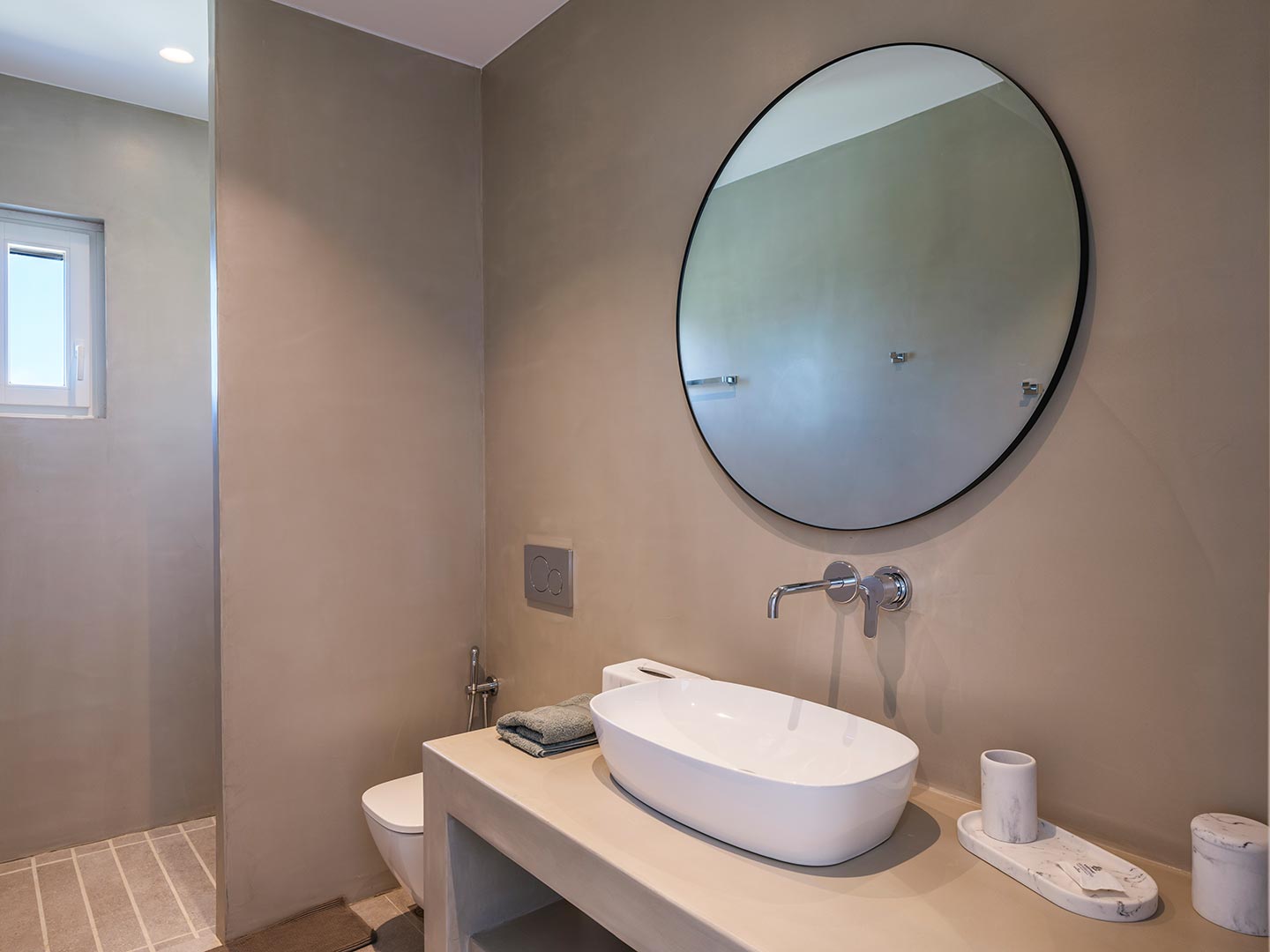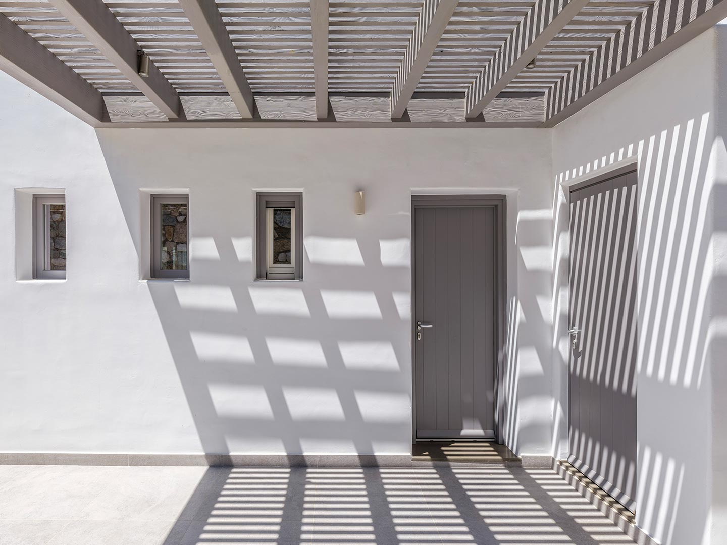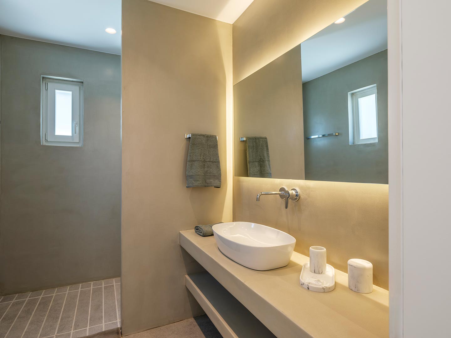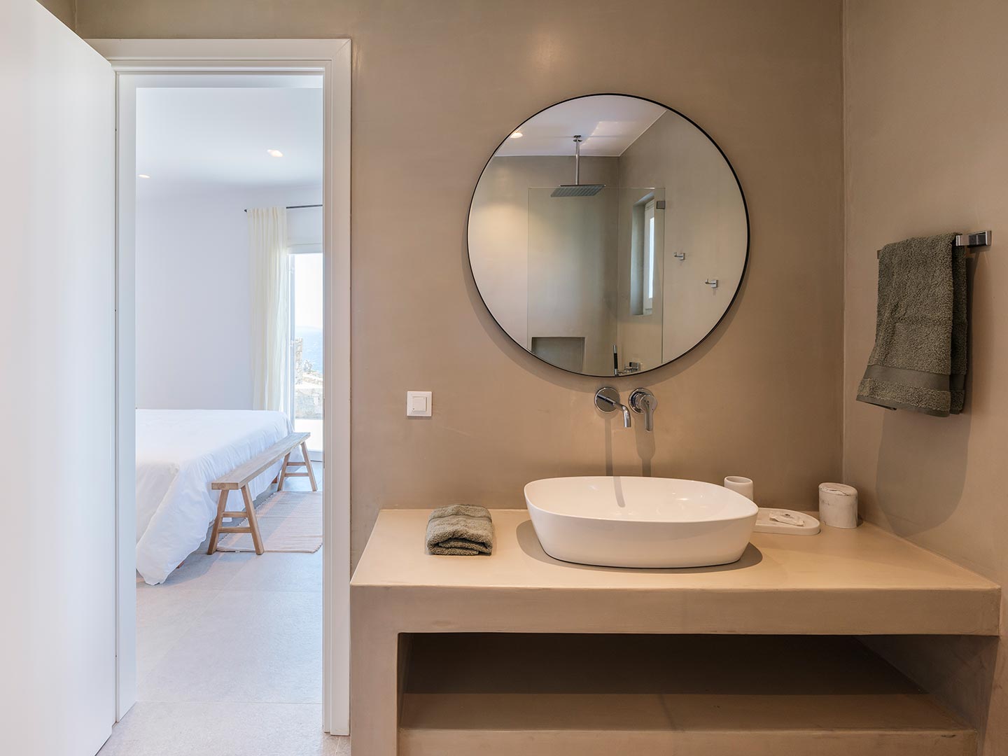 ➢ 3 Double bedroom with queen sized bed and ensuite bathroom. Equipped with AC, wardrobe, safe box and has direct access to pool and bed views to the Aegean Sea.