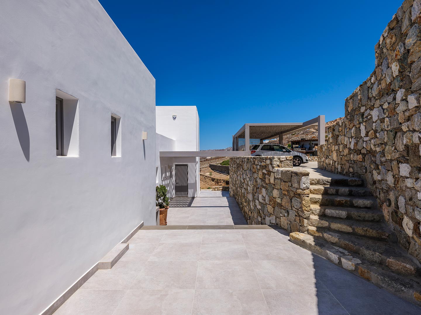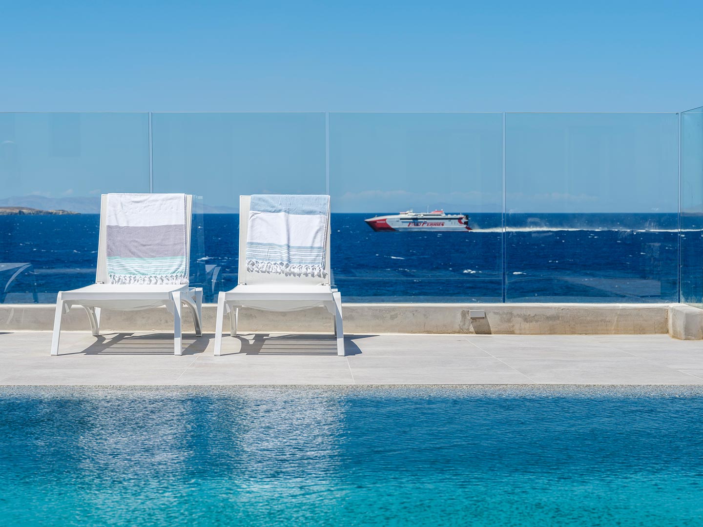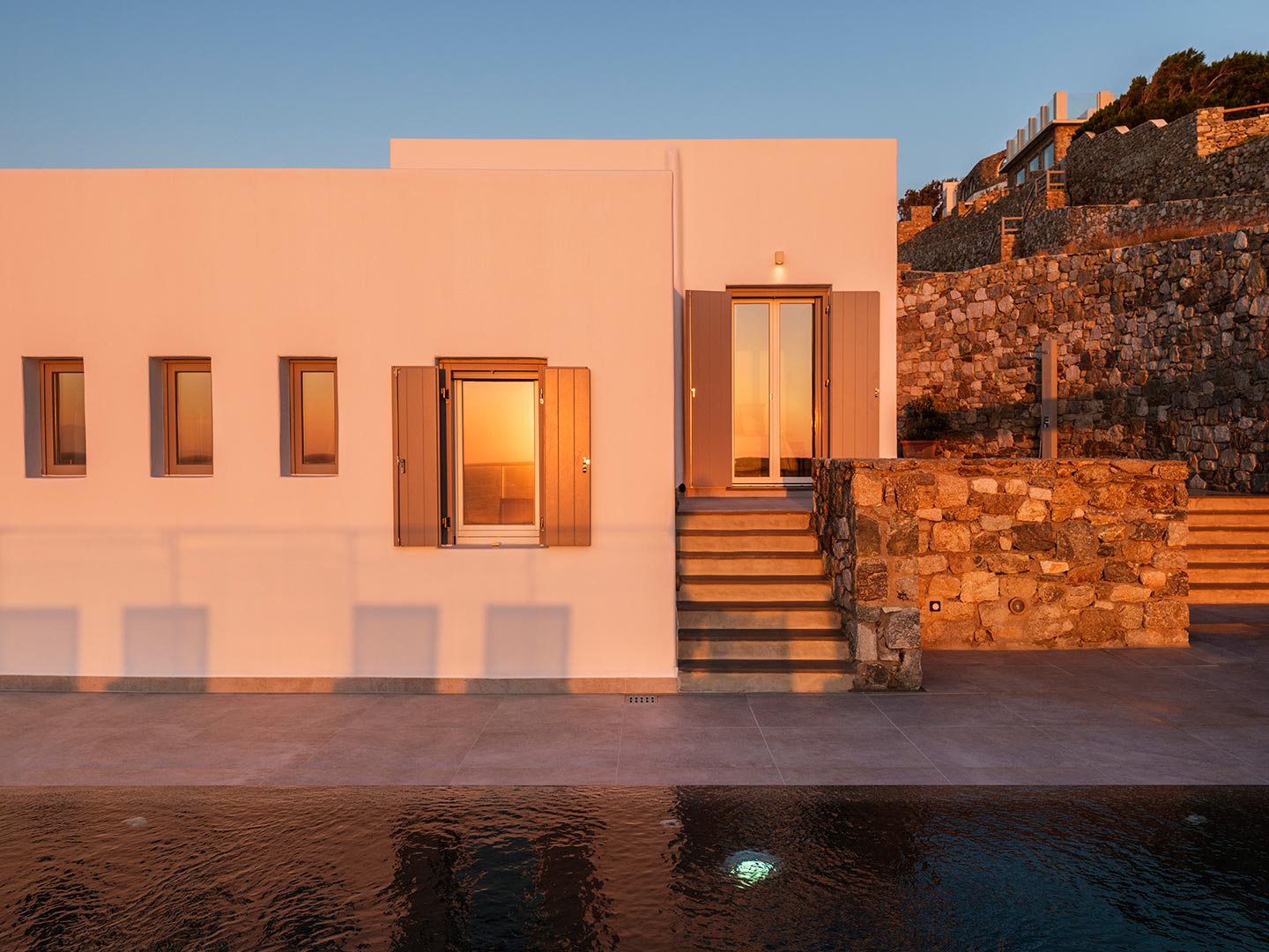 Boasting a privileged location in the Pouli area, just a few minutes away from the vibrant town of Mykonos, this beachfront villa is a luxurious modern retreat that epitomizes elegance and comfort. This modern architectural masterpiece seamlessly blends contemporary design with breathtaking natural beauty Each of the spacious bedrooms features an ensuite bathroom, providing comfort and privacy, and has been tastefully decorated with high -end finishes .