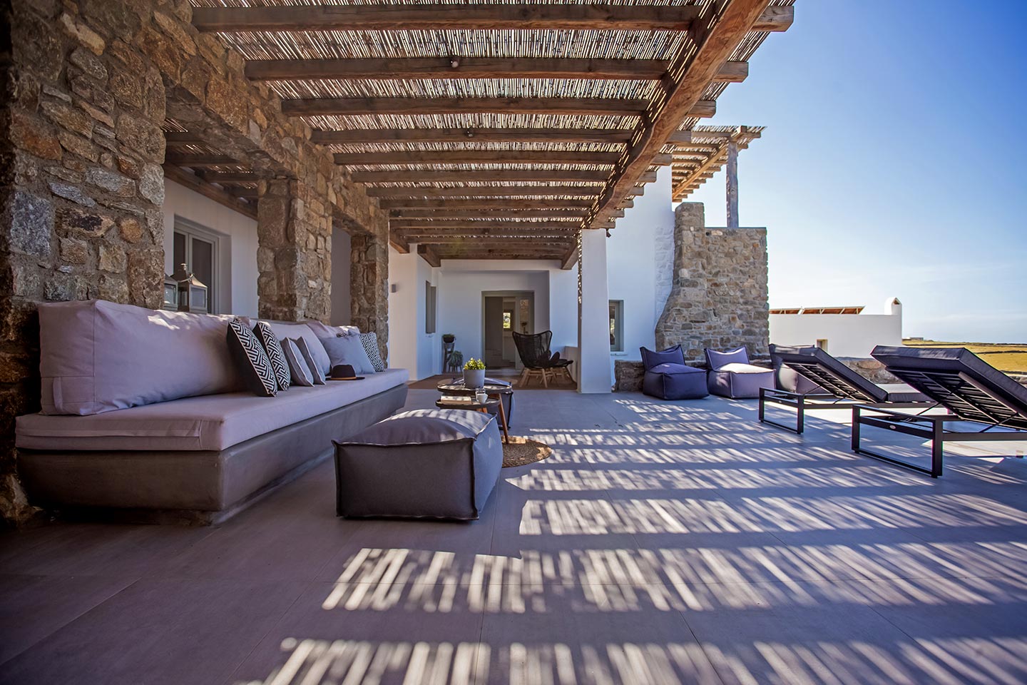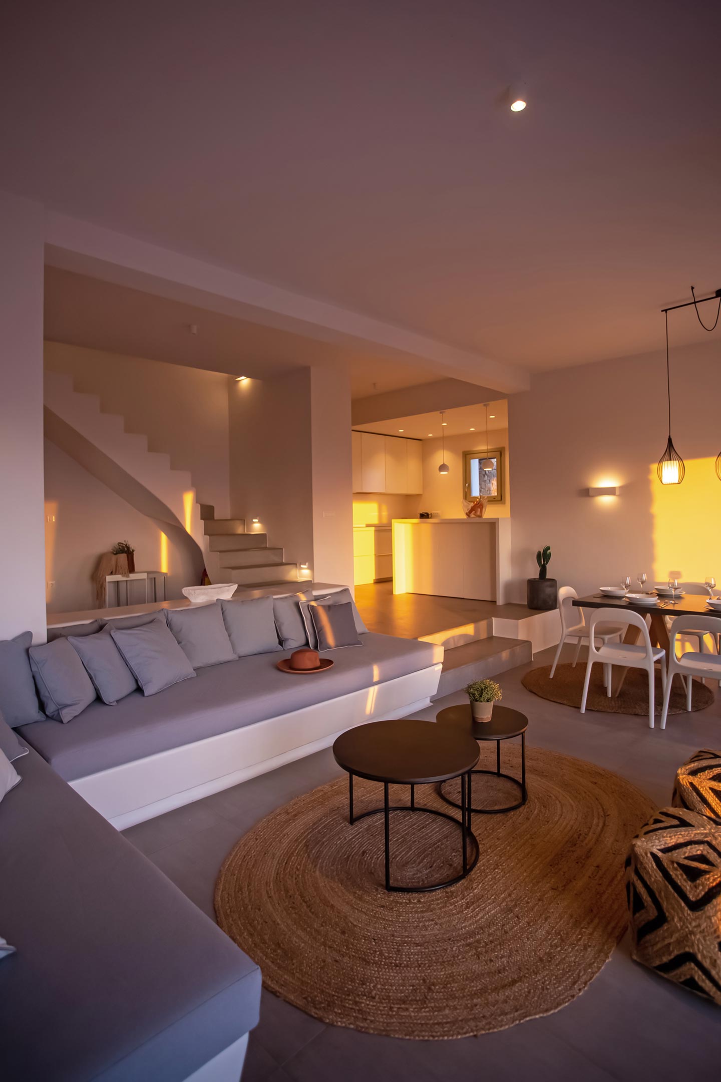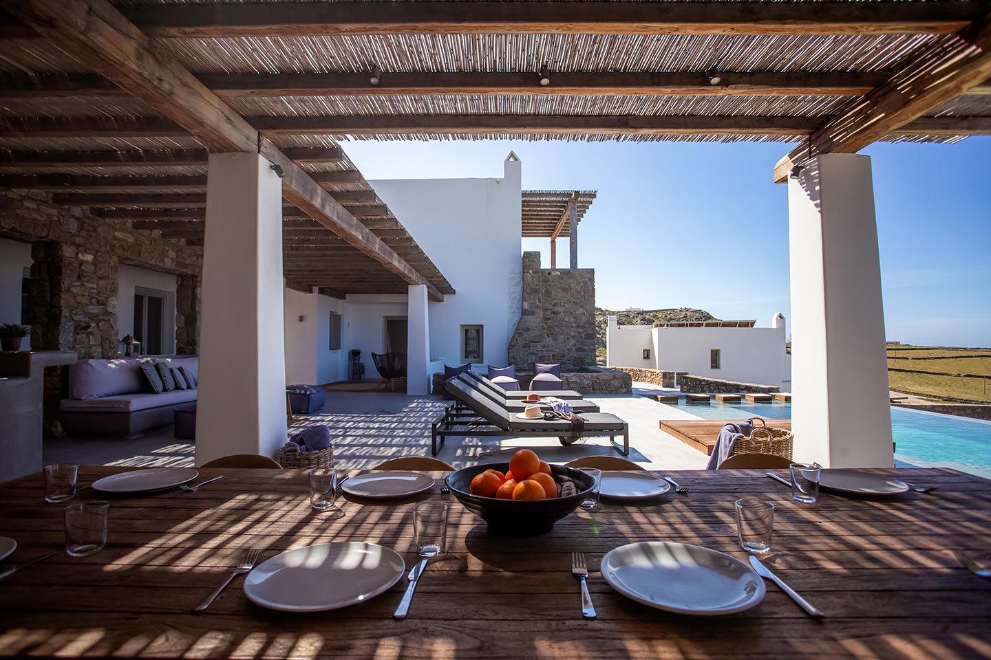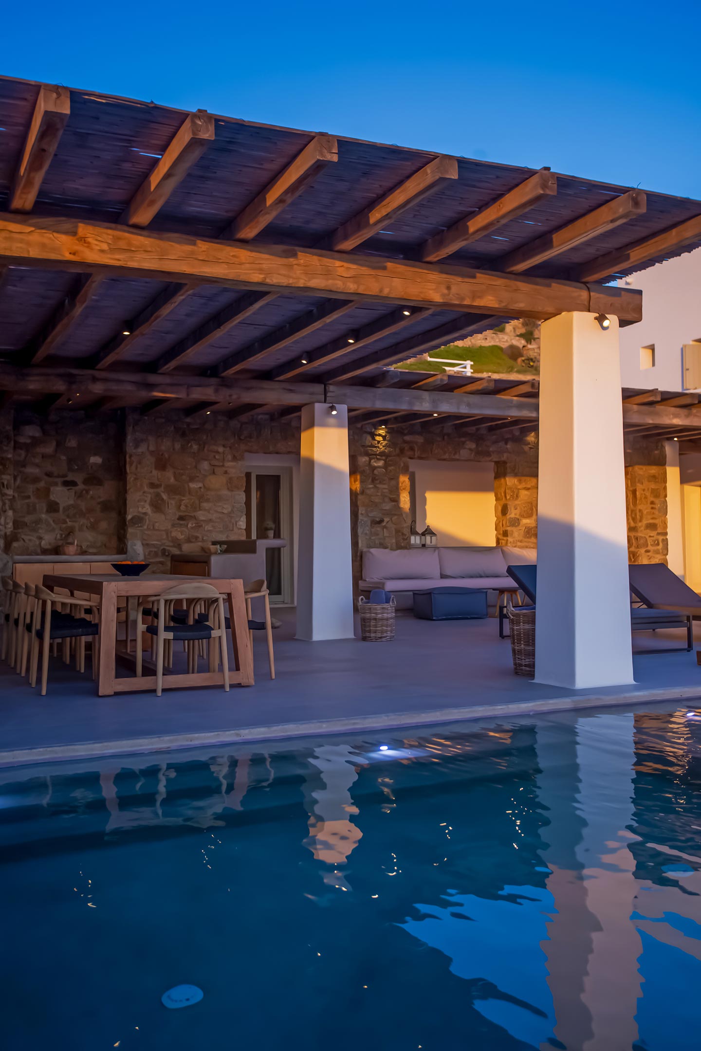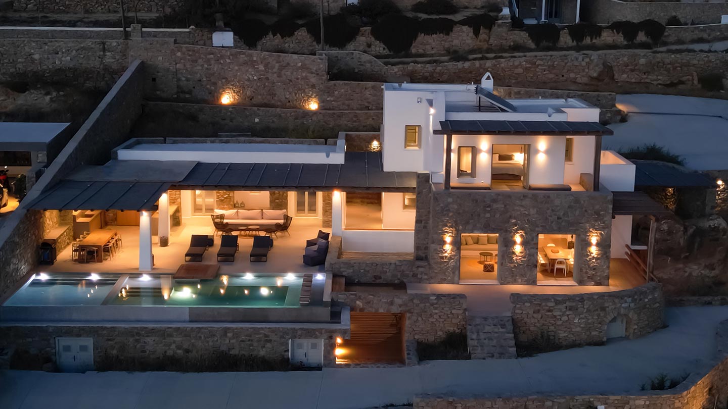 Here is the place, where you can feel a relaxed elegance and discreet luxury. There is a positive aura from morning till late night, all times of the day, you can enjoy a different aspect - view - feeling of it. Sophisticated, minimal, contemporary , luxurious and stylish but also respecting local culture and architecture. Designed with relaxed elegance, to serve a family as well as a big group of friends, with focus in functionality. Less is more.
