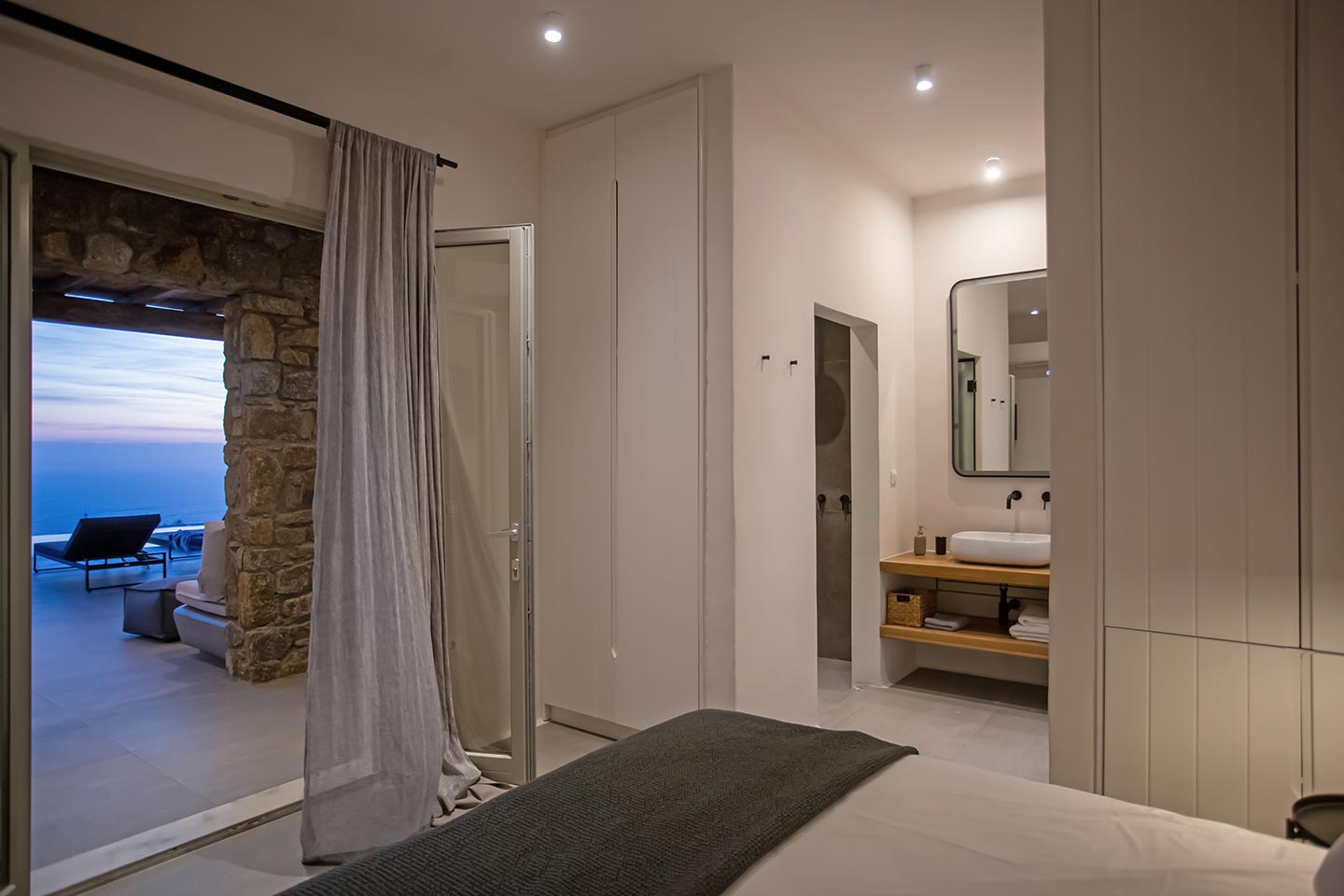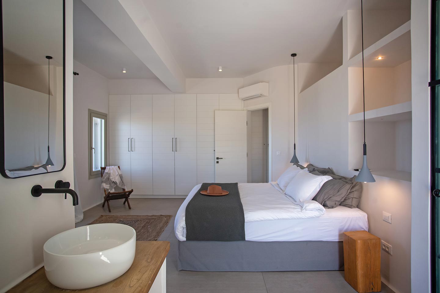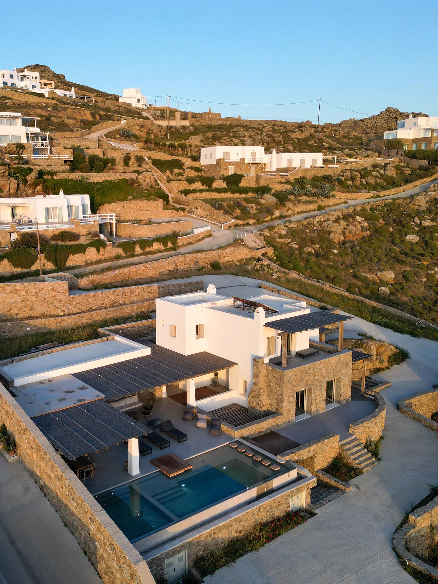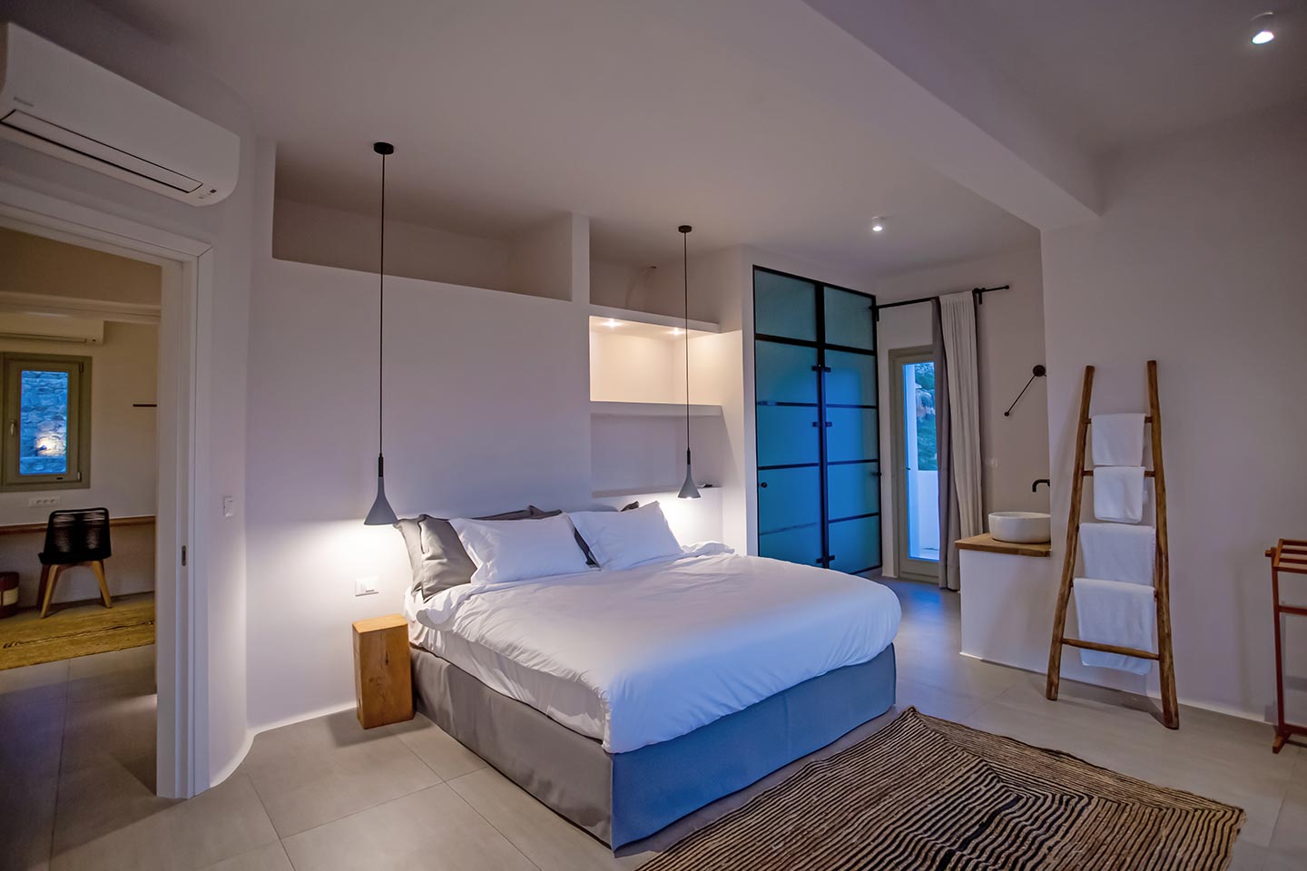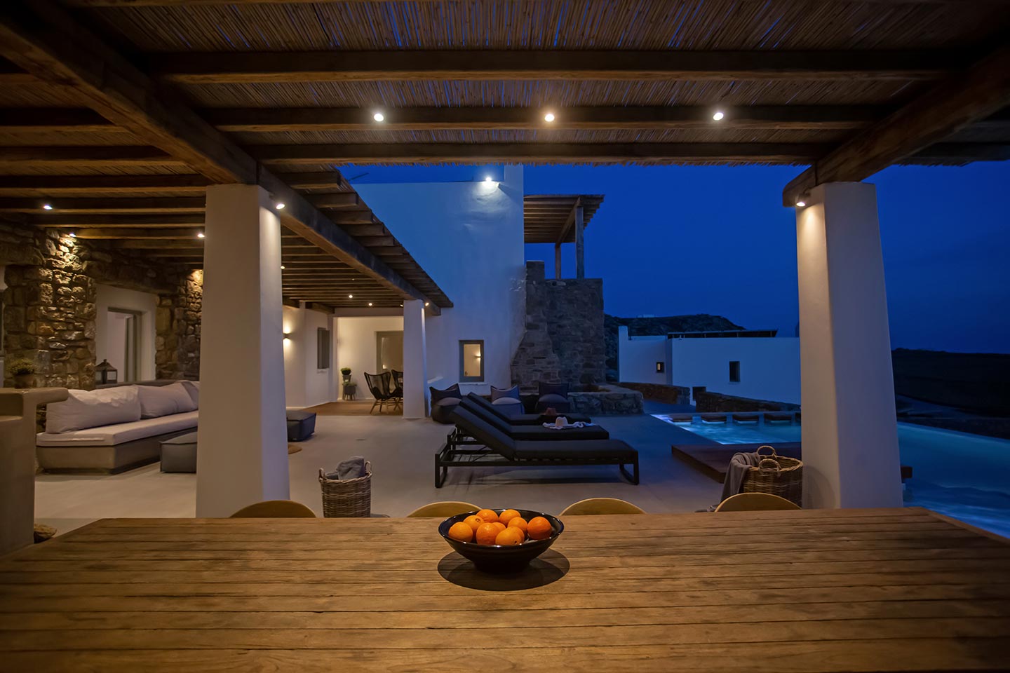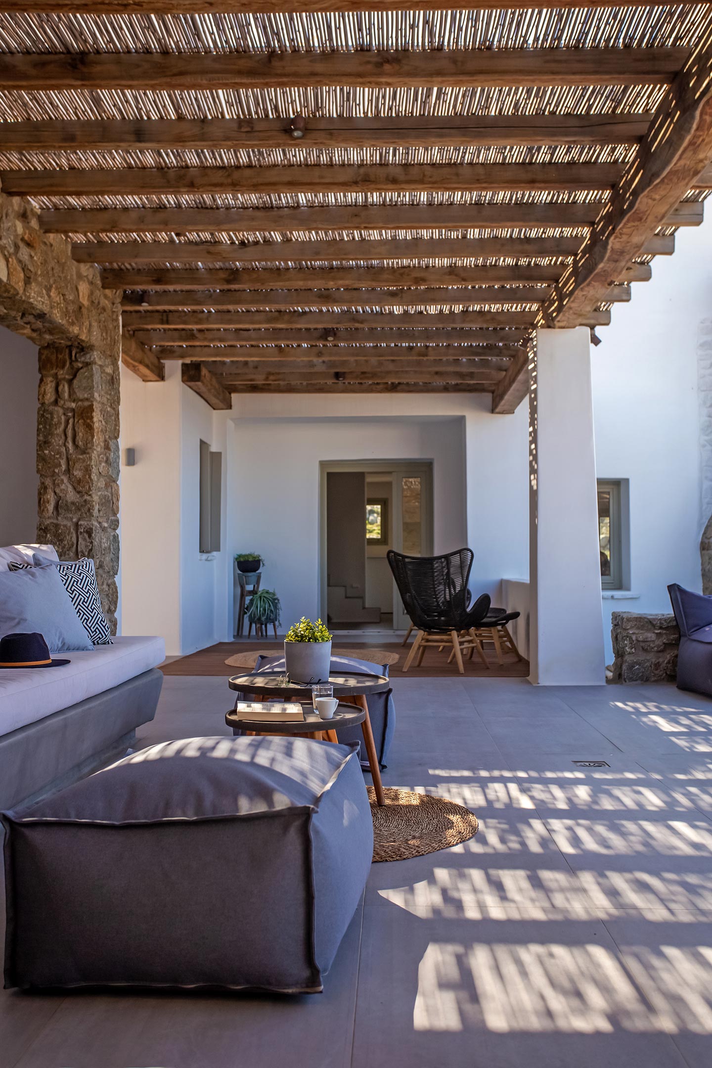 Here is the place, where you can feel a relaxed elegance and discreet luxury. There is a positive aura from morning till late night, all times of the day, you can enjoy a different aspect - view - feeling of it. Sophisticated, minimal, contemporary , luxurious and stylish but also respecting local culture and architecture. Designed with relaxed elegance, to serve a family as well as a big group of friends, with focus in functionality. Less is more.