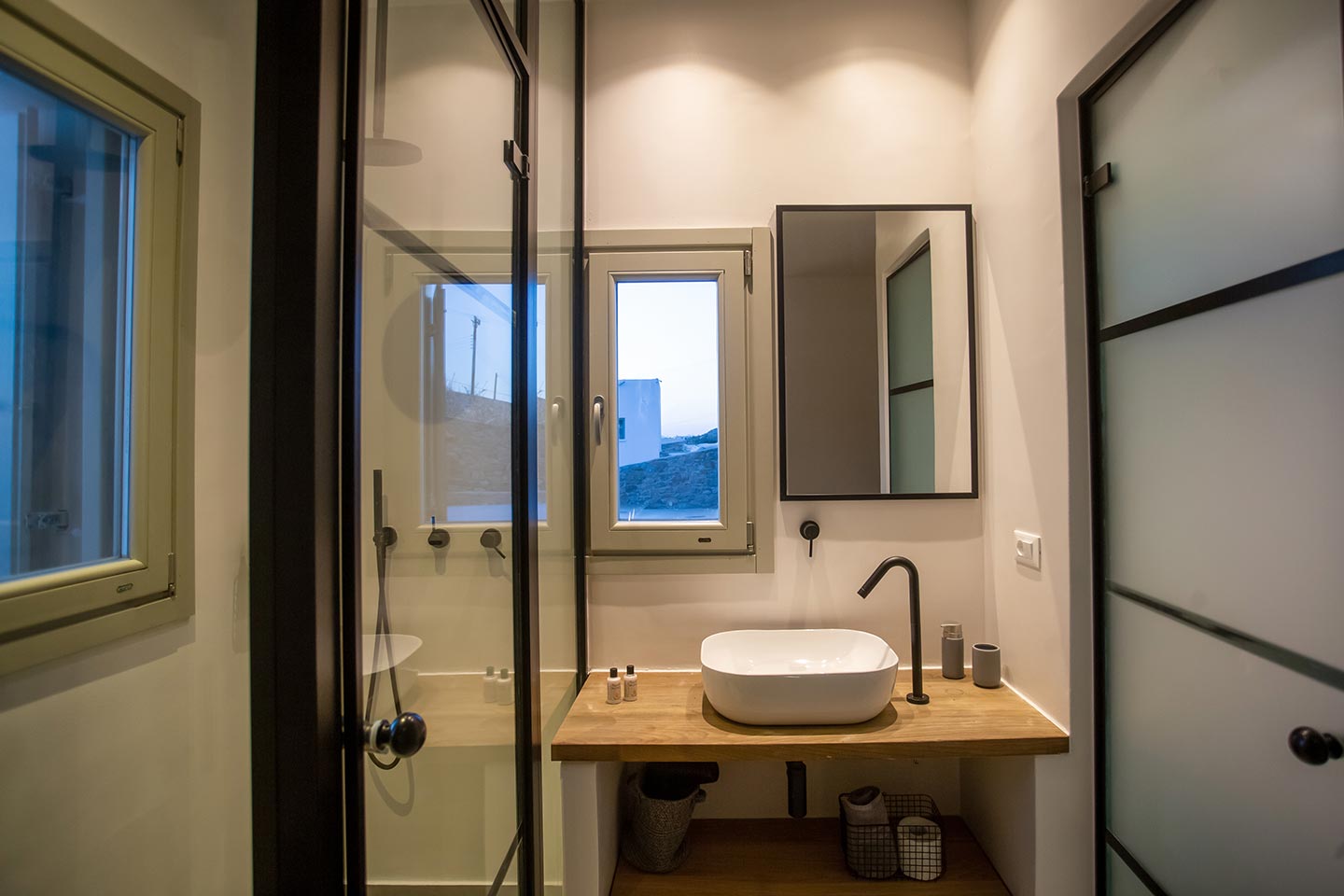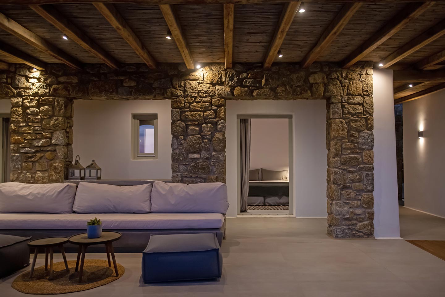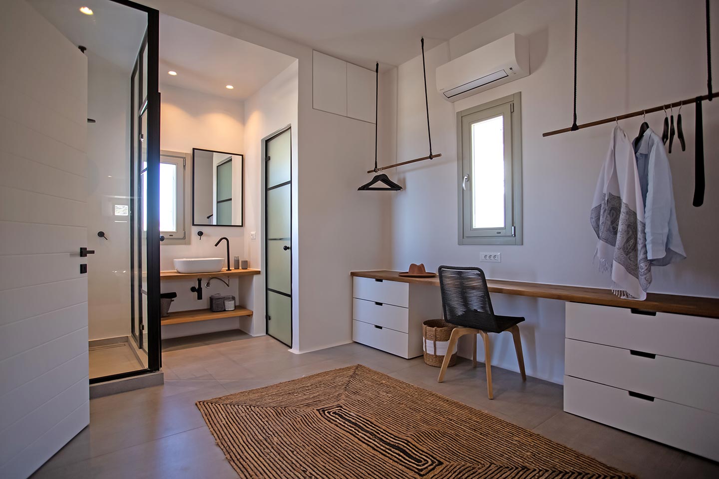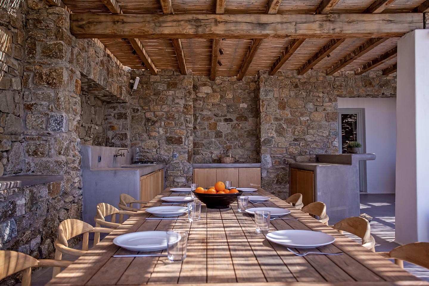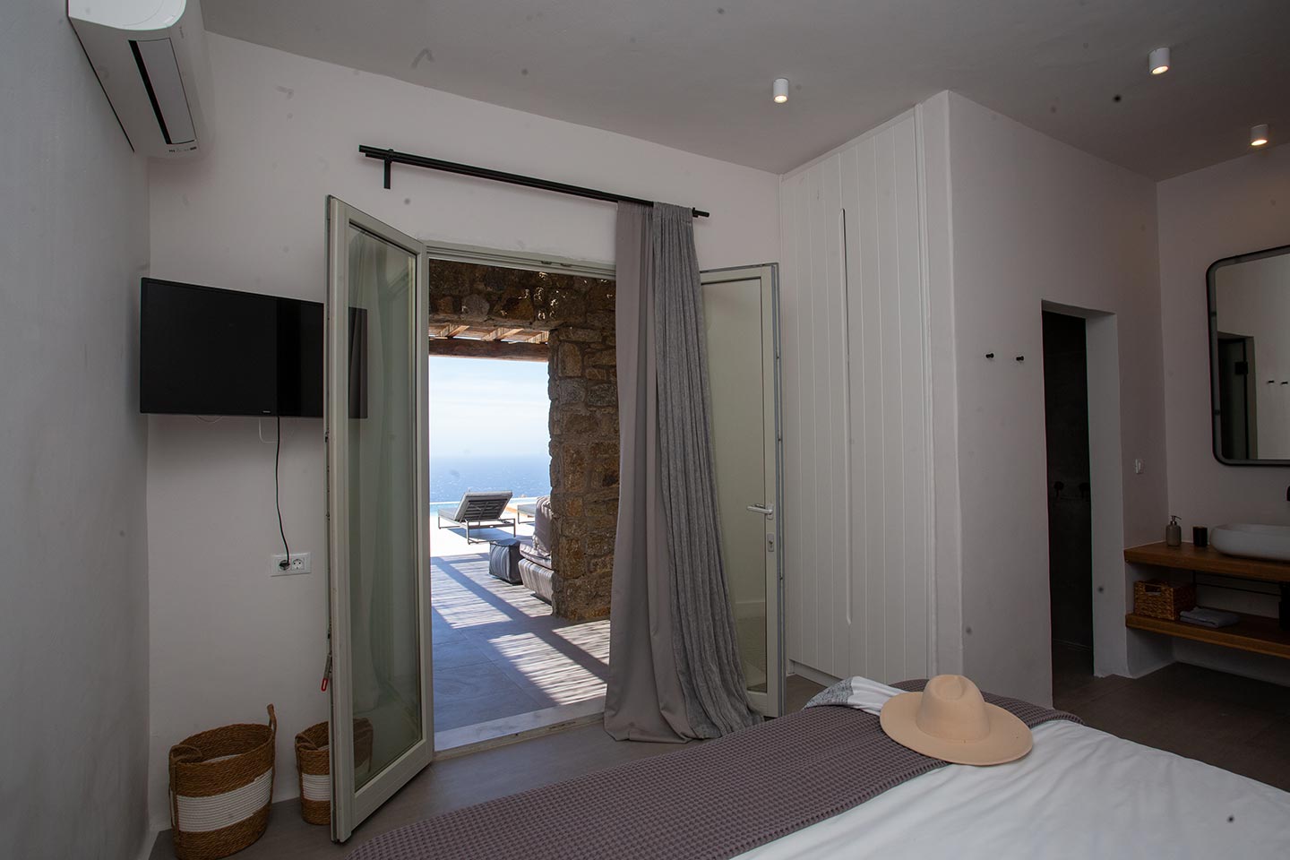 Here is the place, where you can feel a relaxed elegance and discreet luxury. There is a positive aura from morning till late night, all times of the day, you can enjoy a different aspect - view - feeling of it. Sophisticated, minimal, contemporary , luxurious and stylish but also respecting local culture and architecture. Designed with relaxed elegance, to serve a family as well as a big group of friends, with focus in functionality. Less is more.