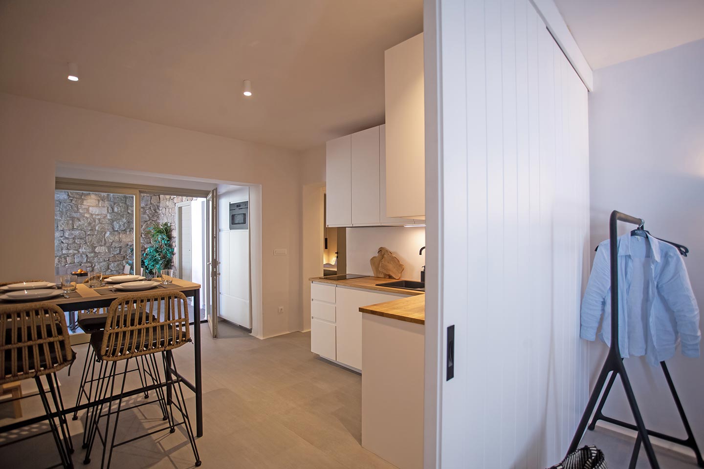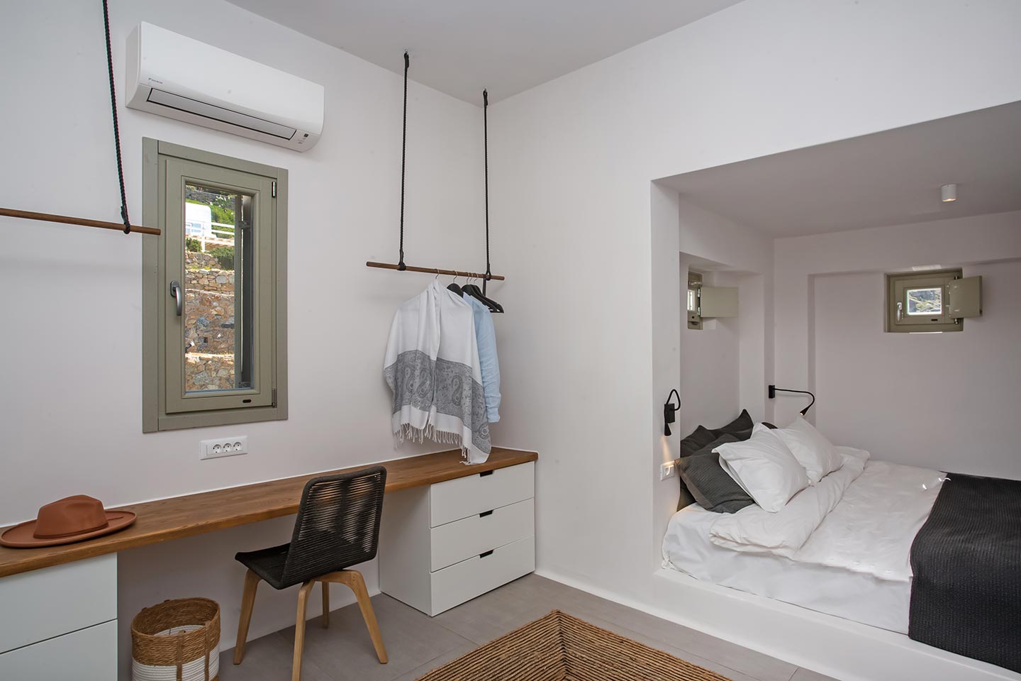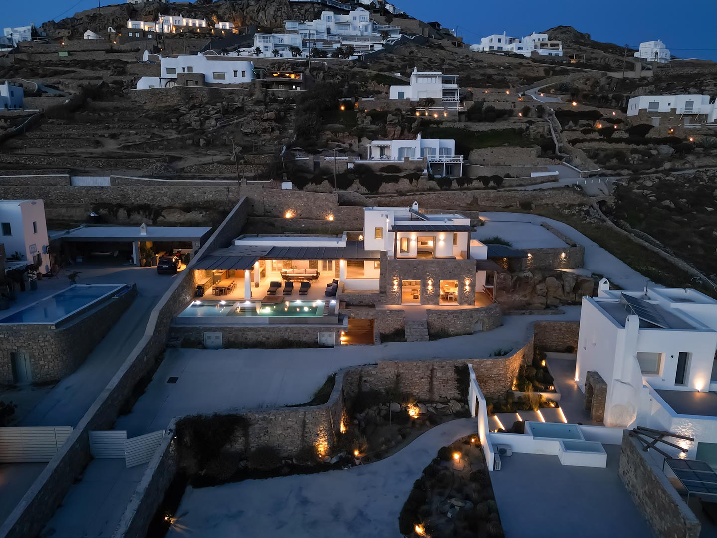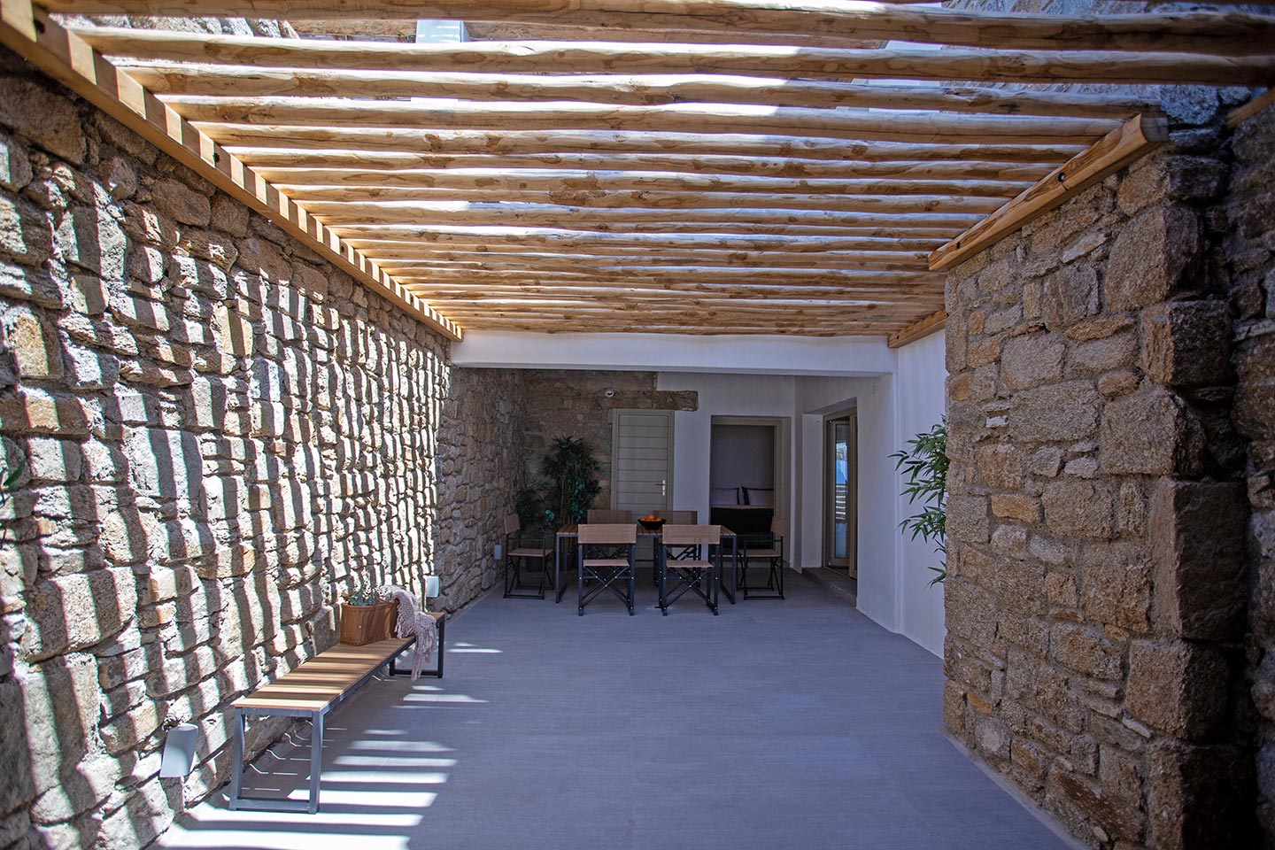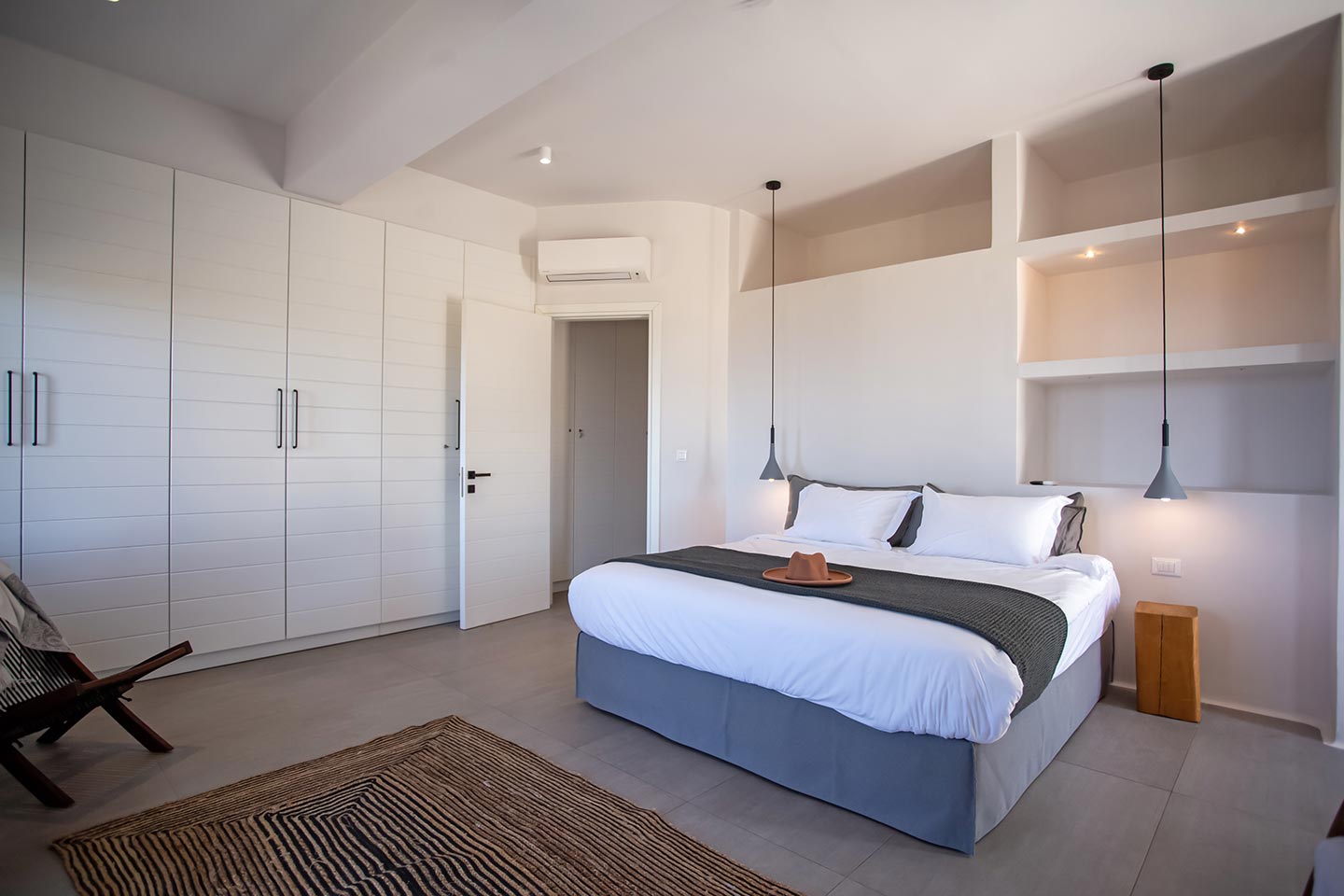 Here is the place, where you can feel a relaxed elegance and discreet luxury. There is a positive aura from morning till late night, all times of the day, you can enjoy a different aspect - view - feeling of it. Sophisticated, minimal, contemporary , luxurious and stylish but also respecting local culture and architecture. Designed with relaxed elegance, to serve a family as well as a big group of friends, with focus in functionality. Less is more.