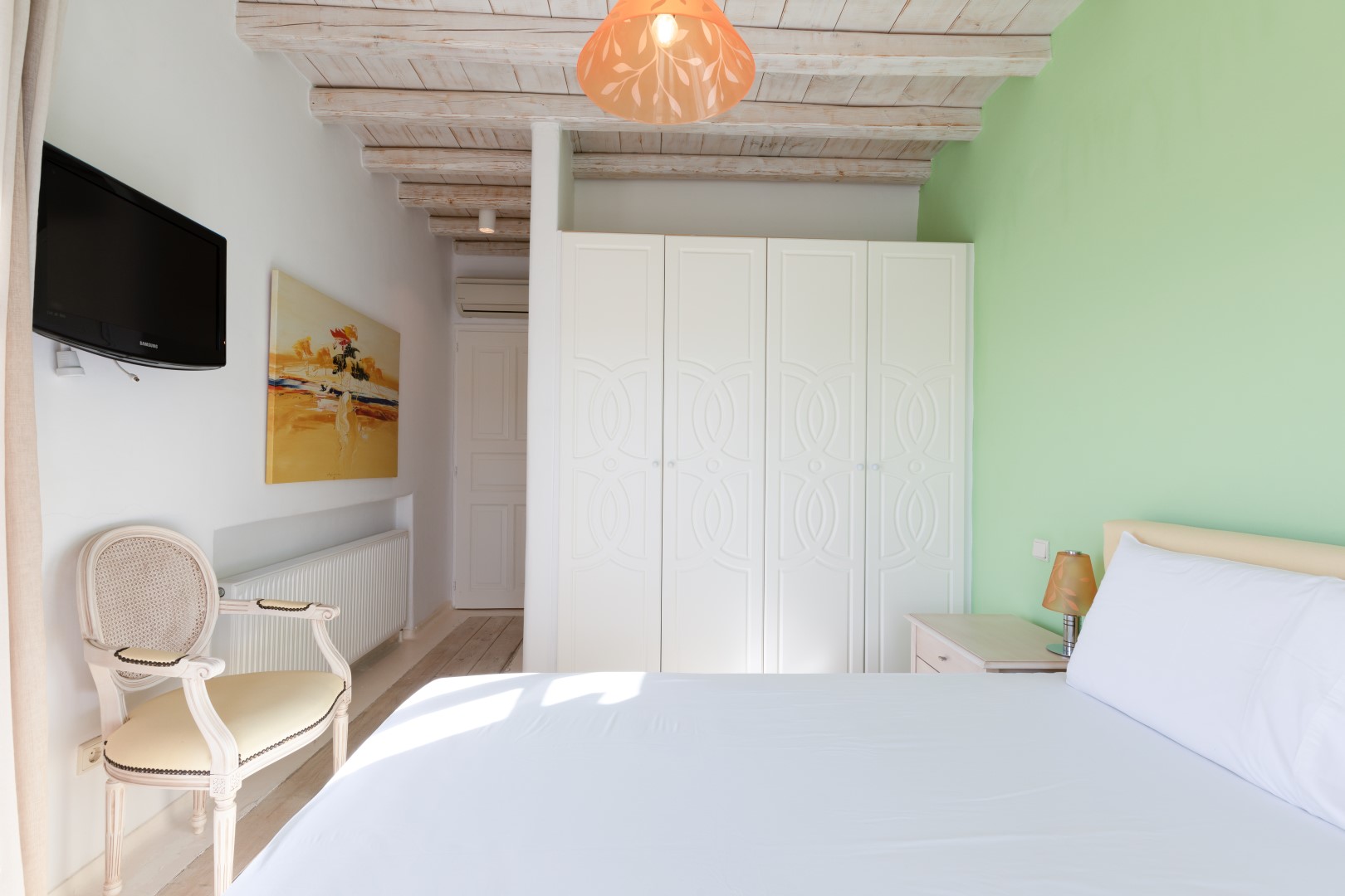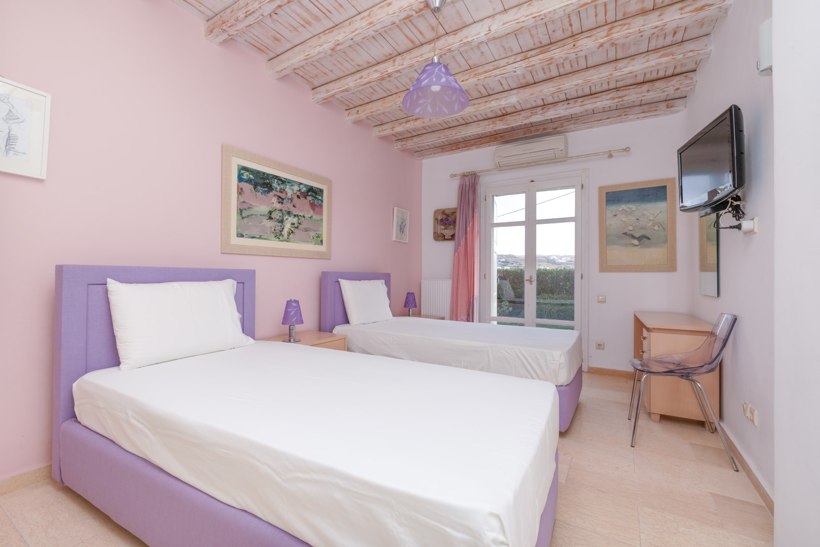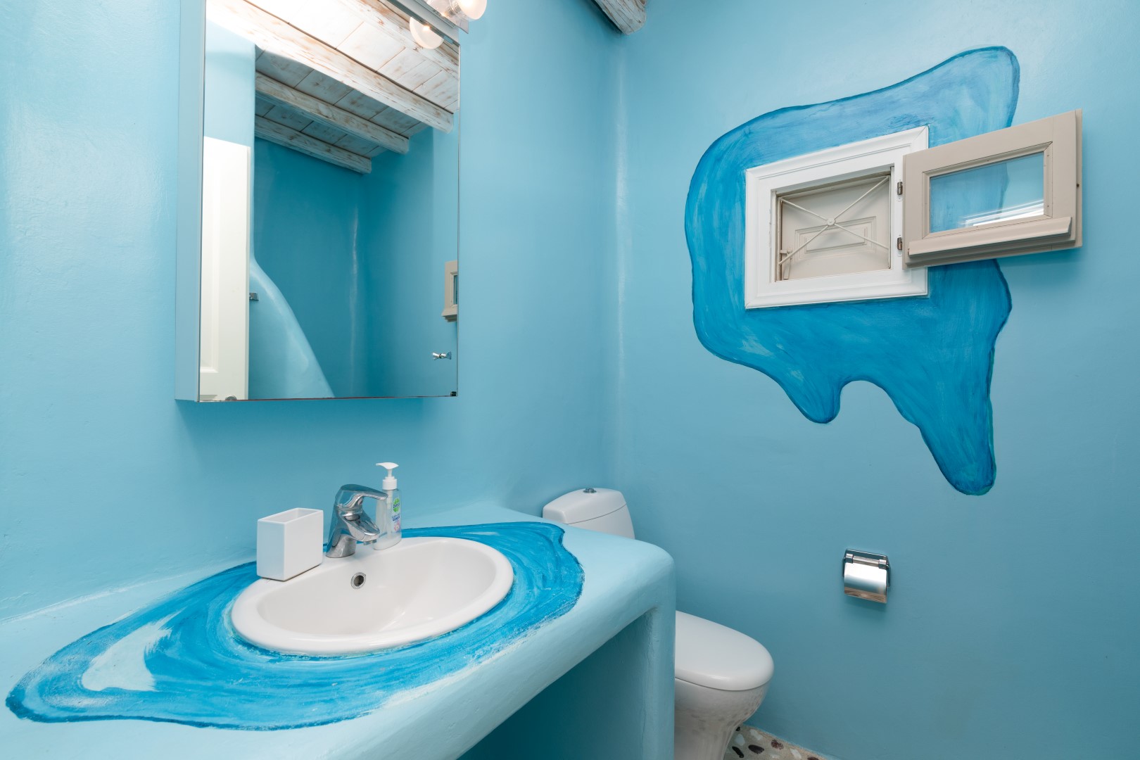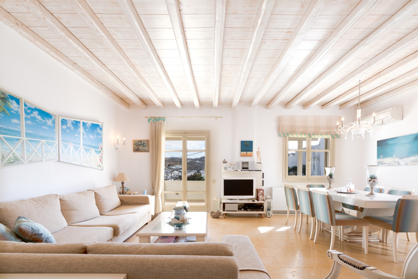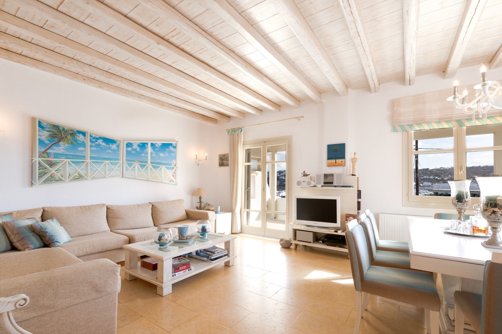 The decor is classic Cycladic with luxurious attributes. The living room has a Smart TV and a fully equipped kitchen with everything needed to enjoy convenient cooking including but not limited: to electric ovens and coffee maker (Nespresso) for the outmost home feeling. Cameras(outdoor) and alarm systems are available for security.