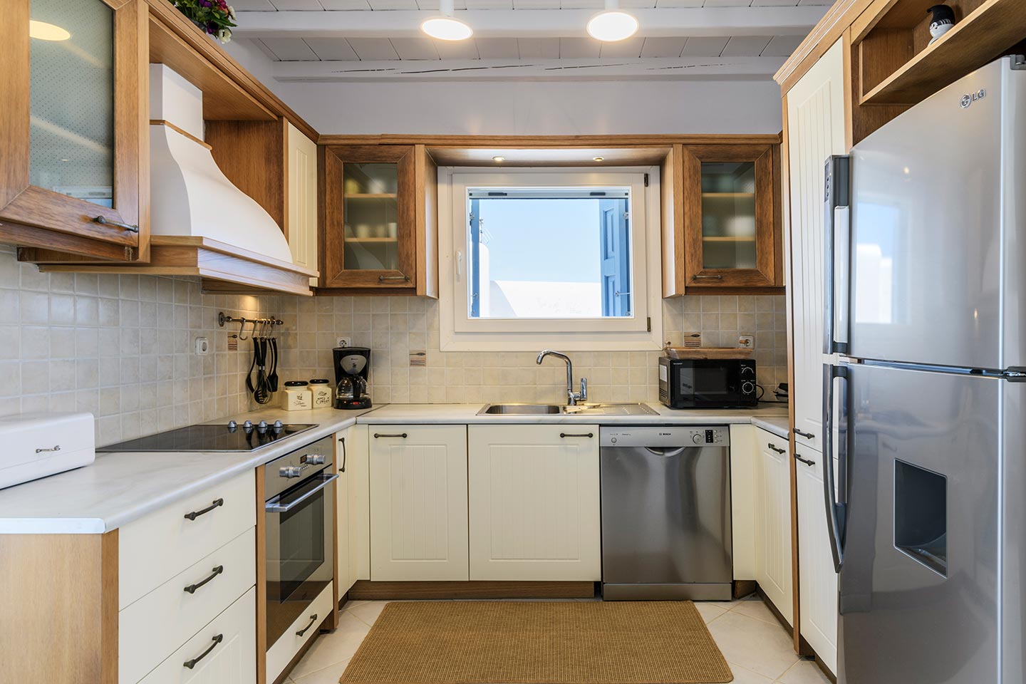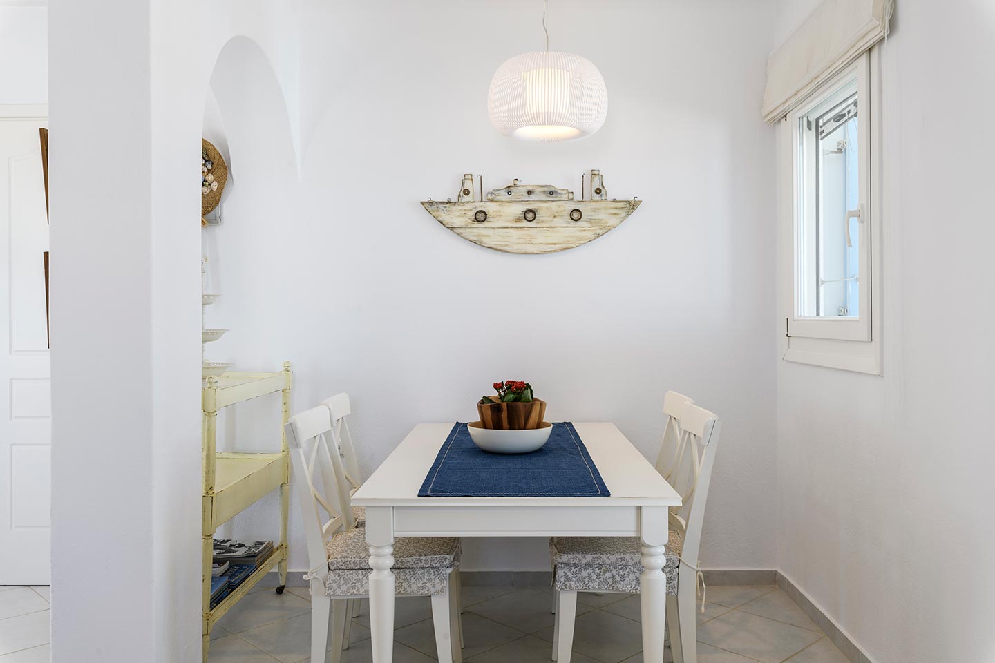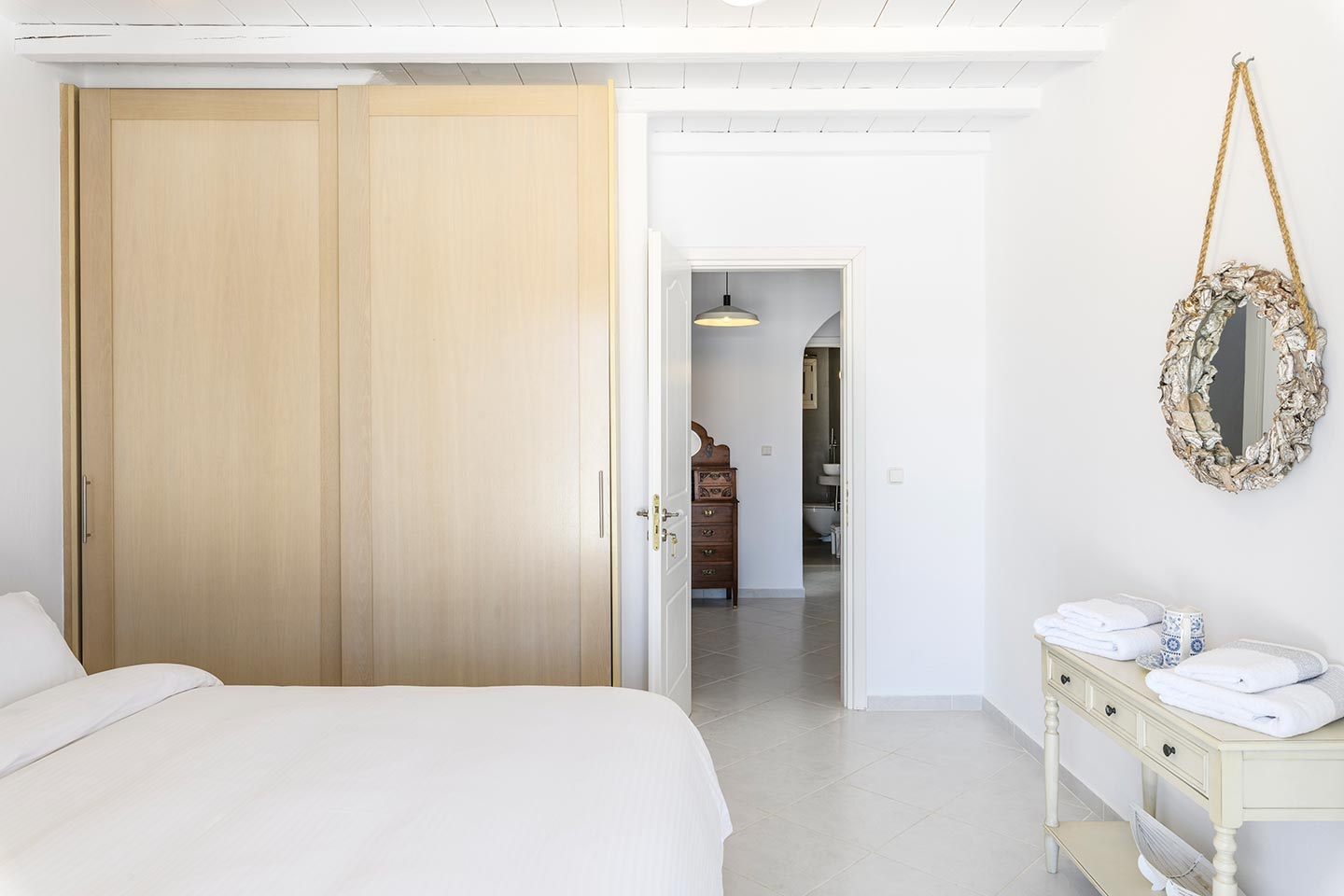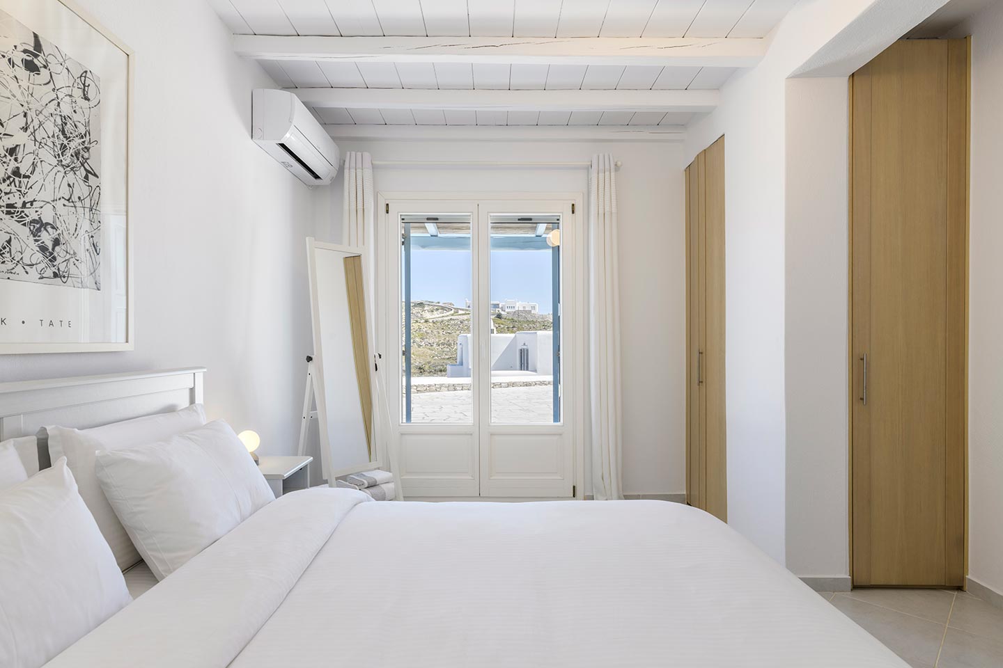 Influenced by traditional tone, the bright white colors mixed with natural stones and decorative details, vastly incorporating natural materials and focusing on simple geometric shapes result to an easy and breezy ambience; providing fashionable elegance, absolute c omfort and tranquility. The exclusive Kanalia peninsula lies at the southwestern shore of Mykonos facing Mykonos Town, Tinos Island the island , of Delos, Rhenia and Baos . Villa Ariadne is located at a hill spot in K analia which offers unique sunset view , while the famous beaches of Ornos and Agios Ioannis are in a short distance , as well as the cosmopolitan Mykonos town lies about 4km away.