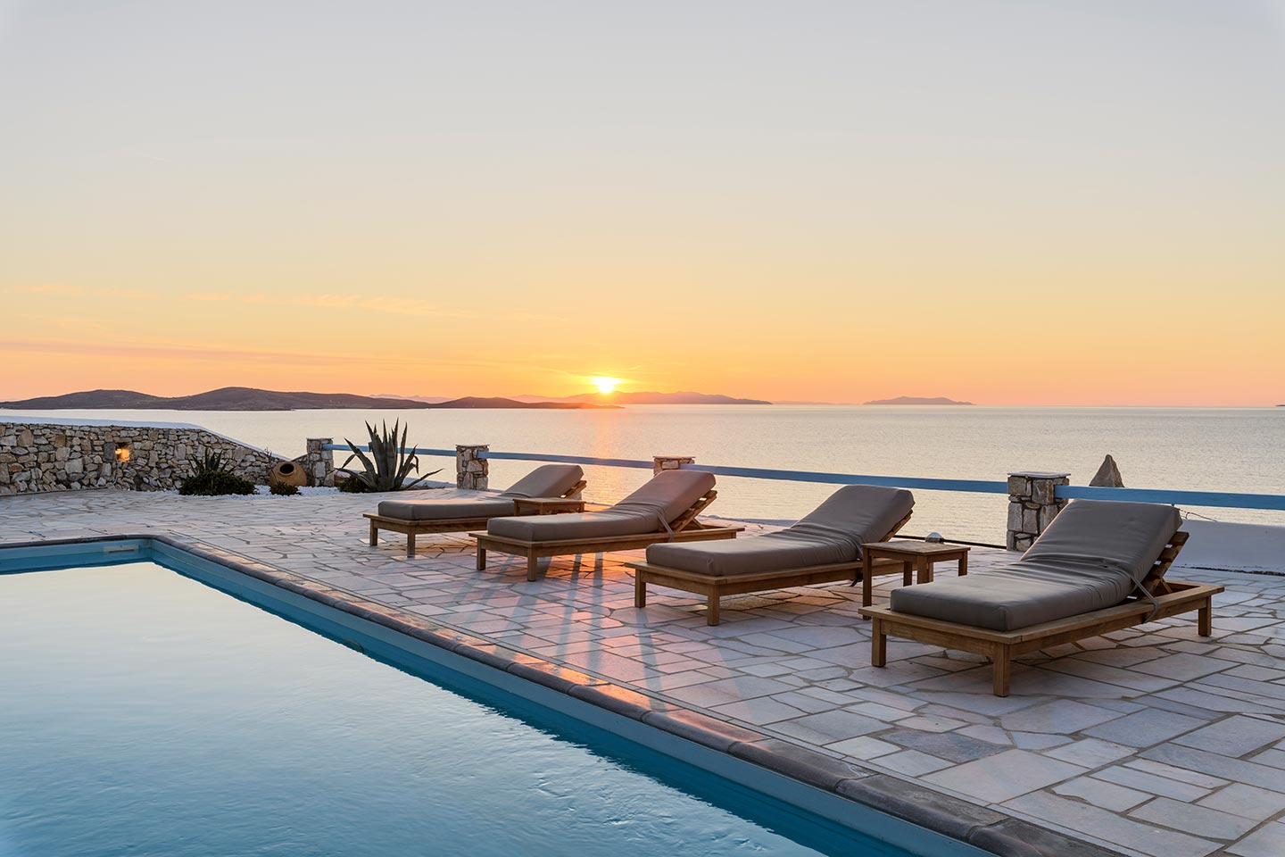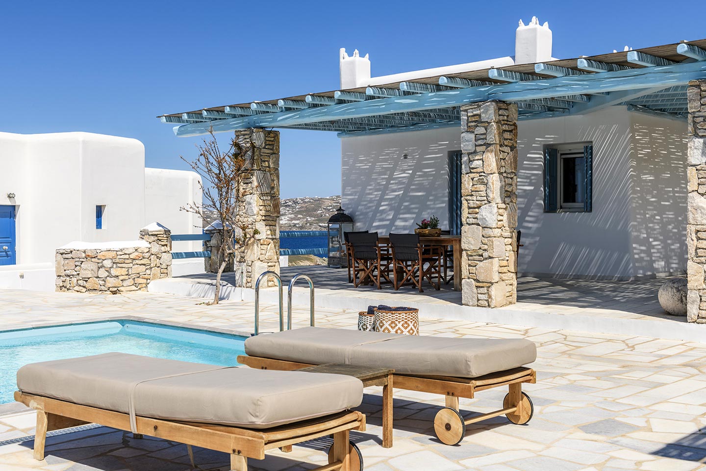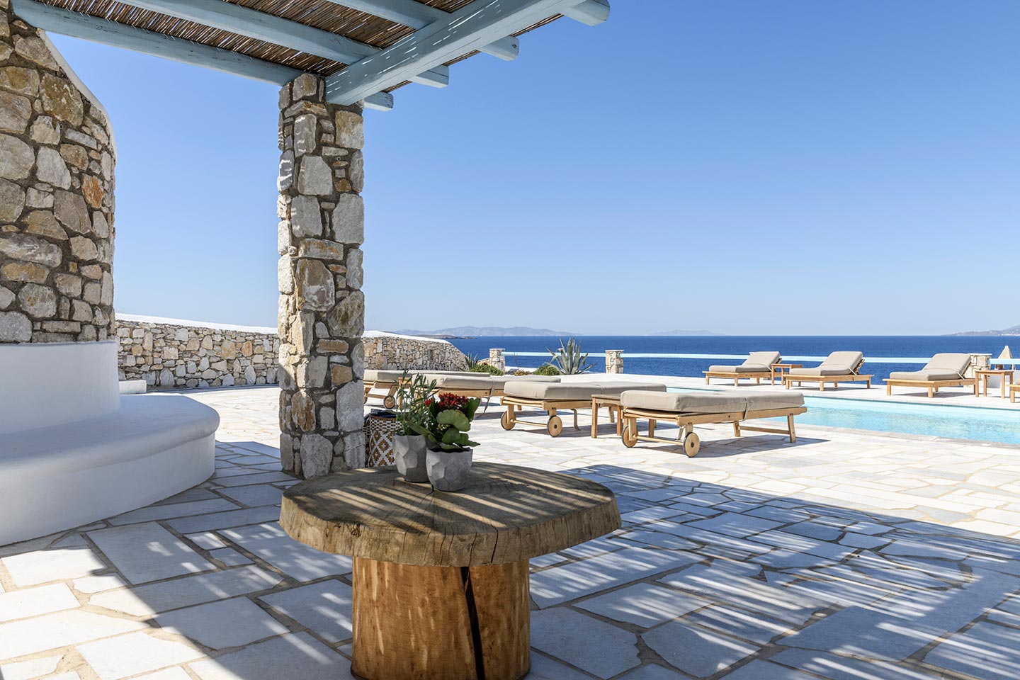 Villa Ariadne is a private traditional Villa , located on a unique seaside spot at the exclusive southern part of Mykonos, Kanalia. The property offers unique views, overlooking the Aegean Sea , Delos and Rhenia Islands and Mykonos Town. The pool, the exterior common spaces and the location of the property make an ideal combination for a family vacation, couples retreat or small group gatherings that are looking for a unique experience