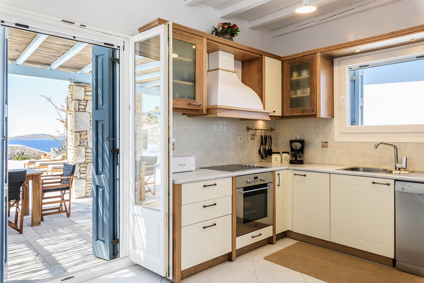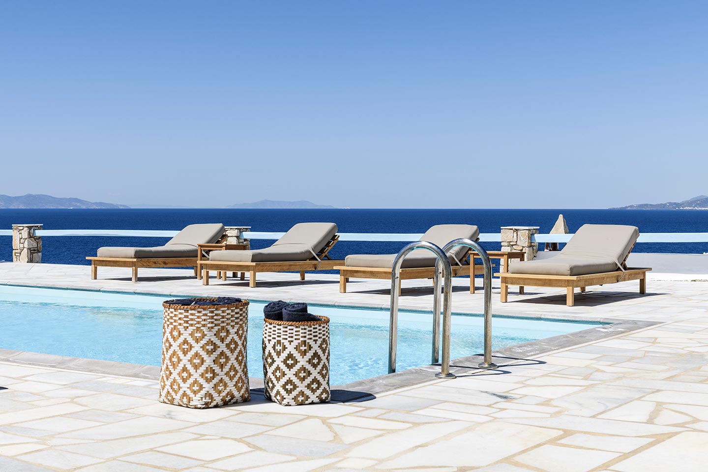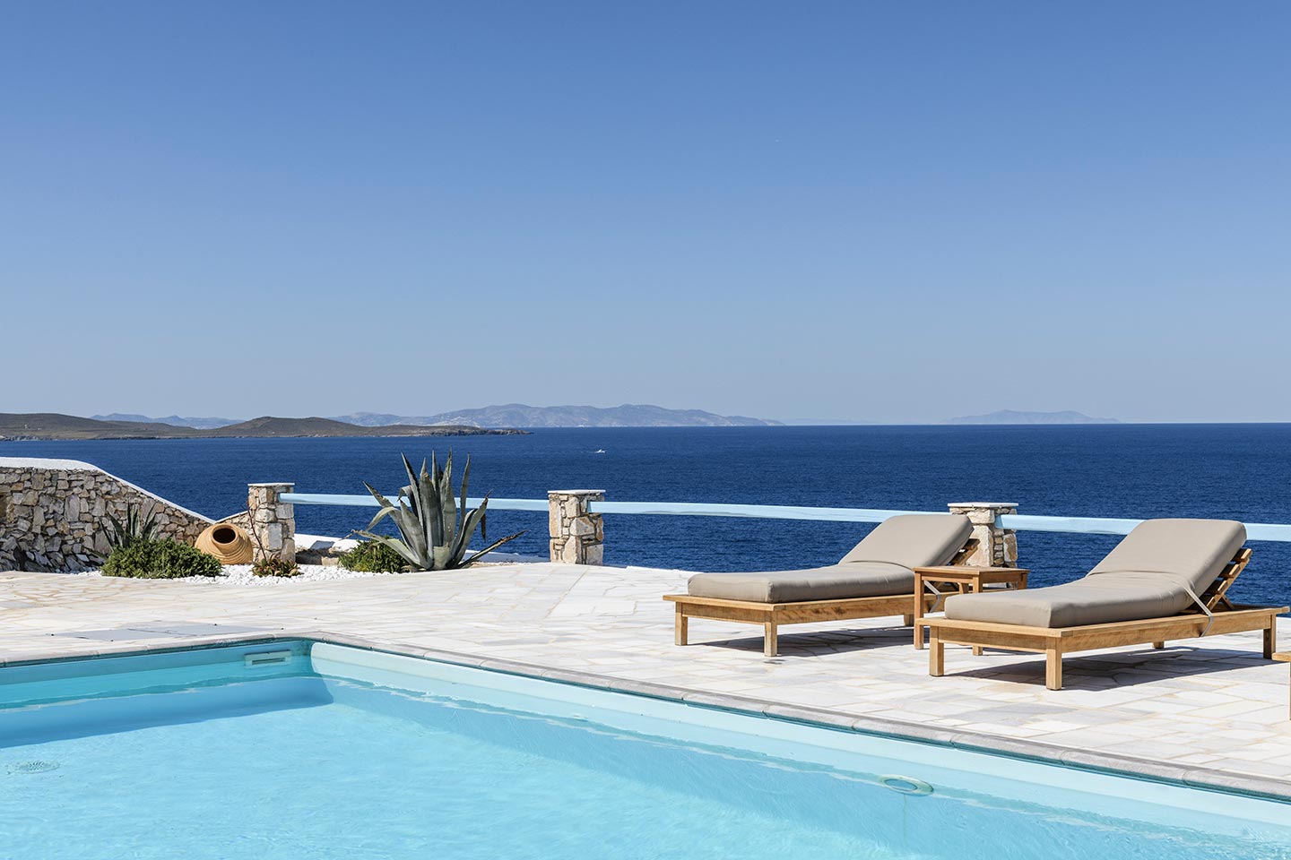 Villa Ariadne is a private traditional Villa , located on a unique seaside spot at the exclusive southern part of Mykonos, Kanalia. The property offers unique views, overlooking the Aegean Sea , Delos and Rhenia Islands and Mykonos Town. The pool, the exterior common spaces and the location of the property make an ideal combination for a family vacation, couples retreat or small group gatherings that are looking for a unique experience