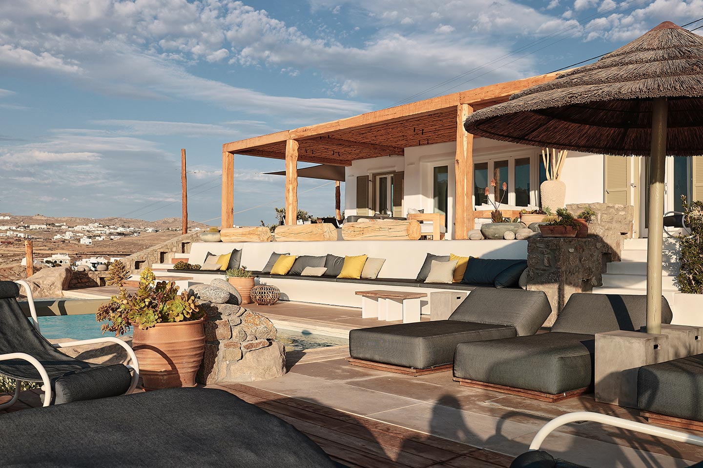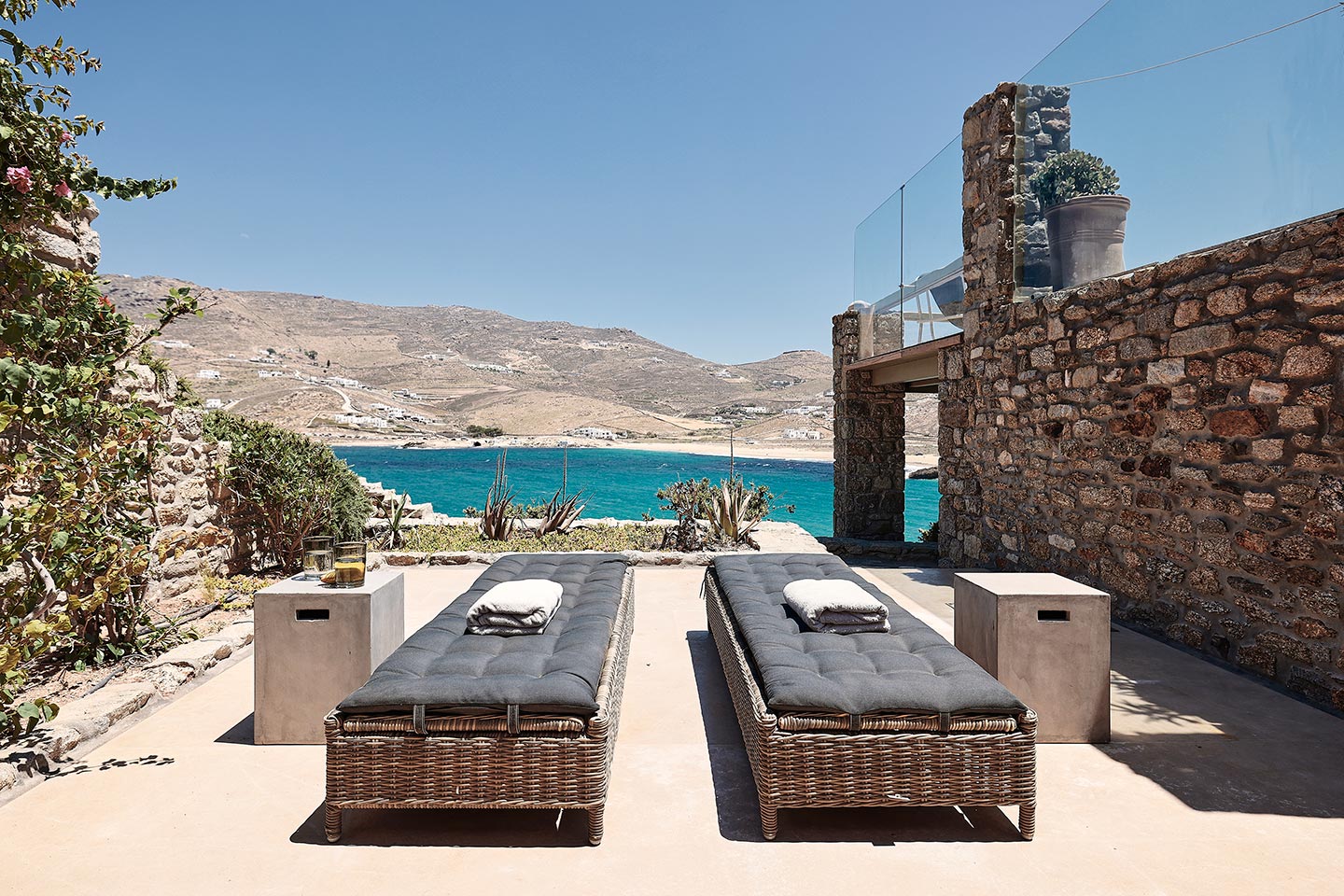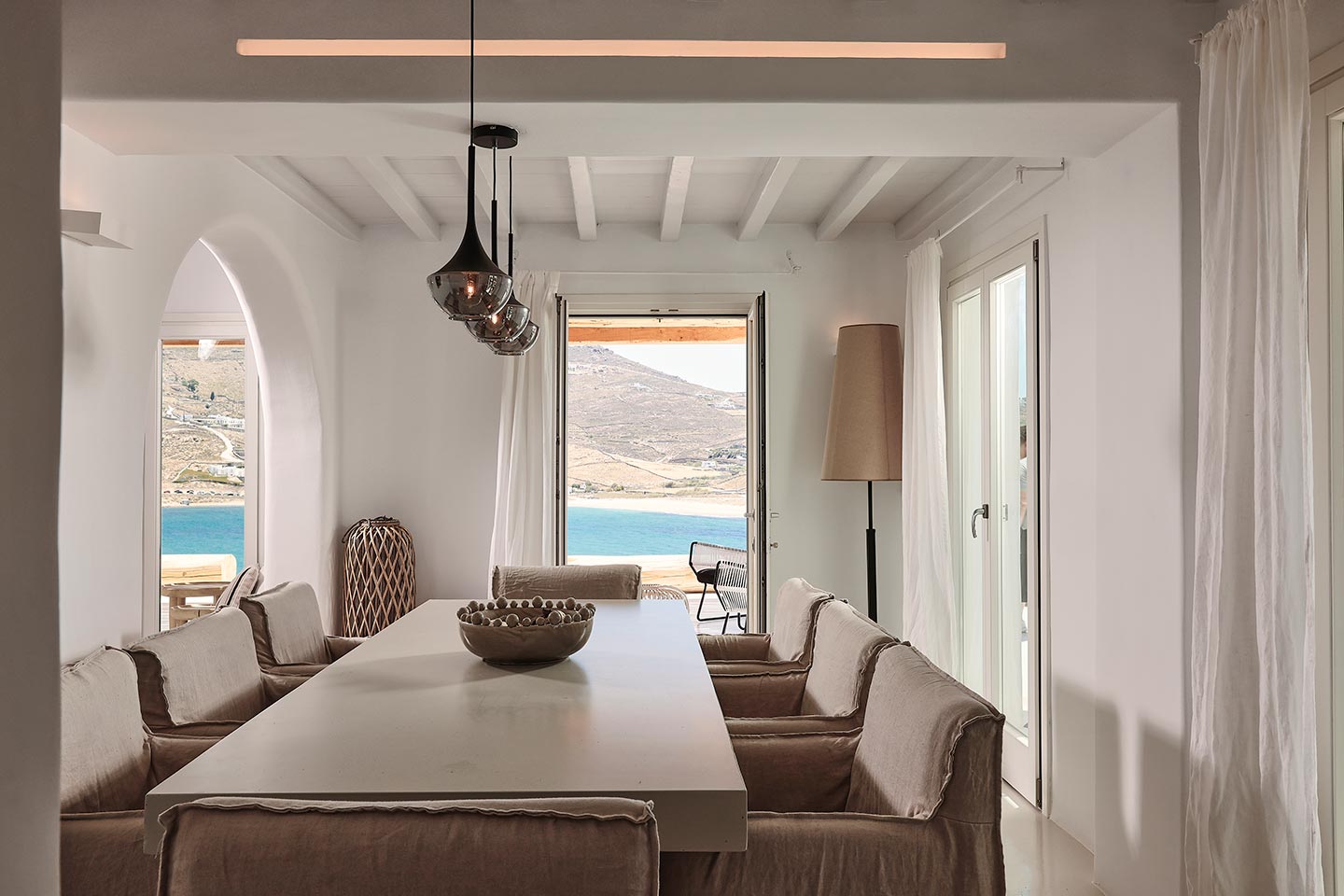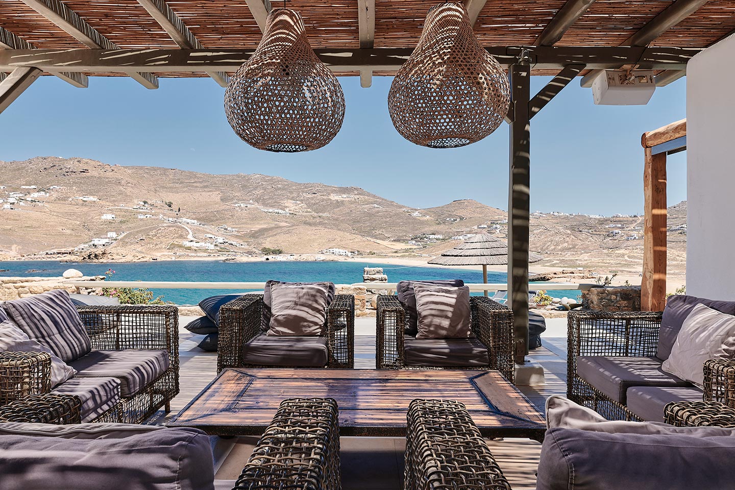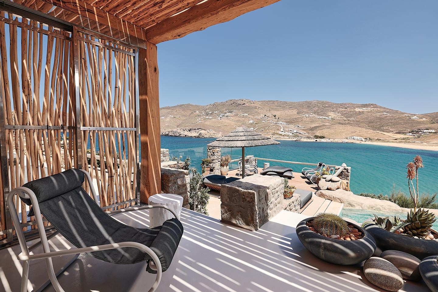 At the same time, it invites guests to unwind on the multiple lounge areas and the BBQ/dining area of the expansive terrace and gives the opportunity to the most athletic ones to remain active at the outdoor gym area, while gazing at the crystal-clear Aegean waters.