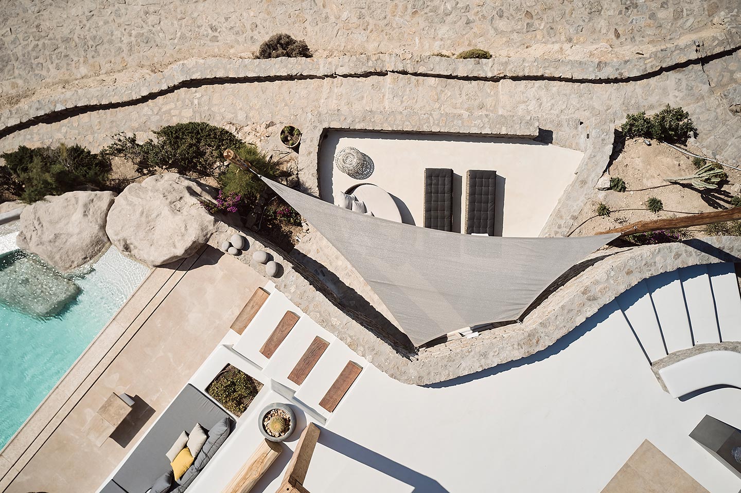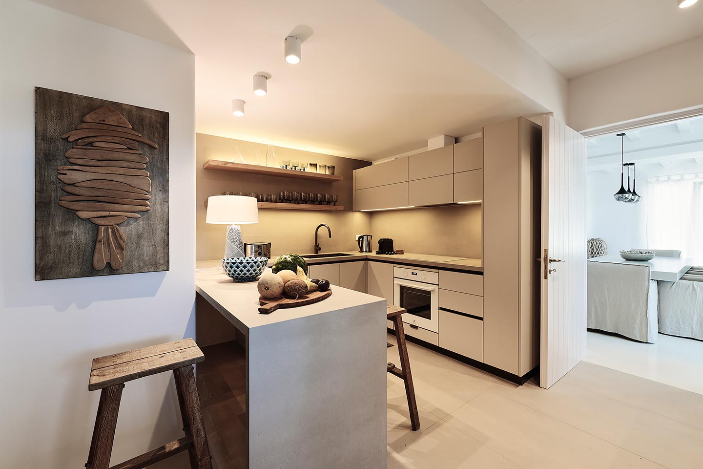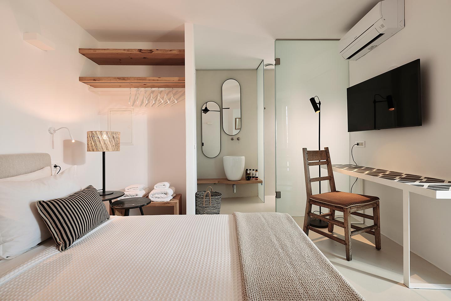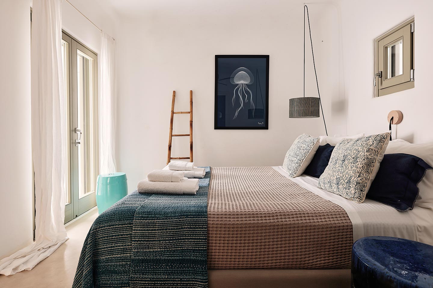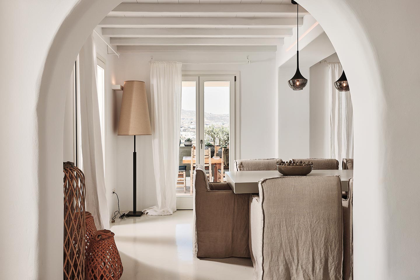 At the same time, it invites guests to unwind on the multiple lounge areas and the BBQ/dining area of the expansive terrace and gives the opportunity to the most athletic ones to remain active at the outdoor gym area, while gazing at the crystal-clear Aegean waters.