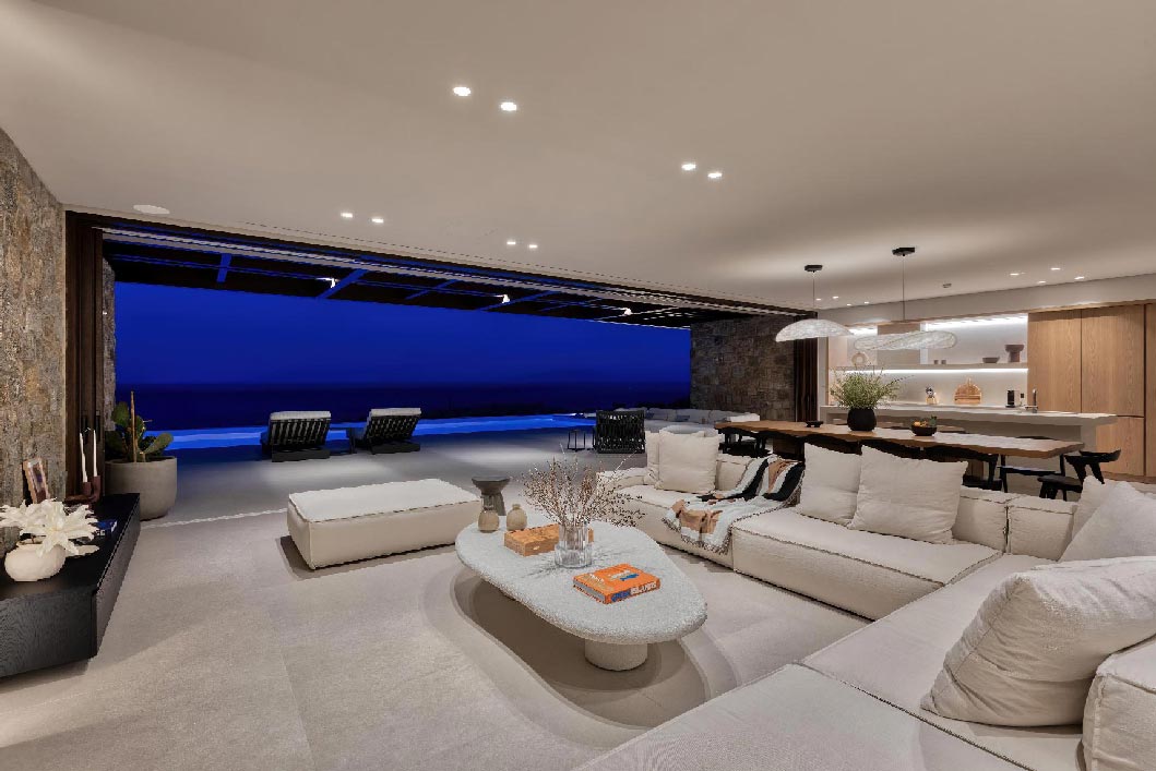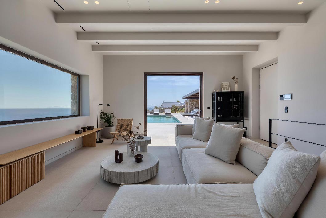 Villa Cassie is situated in a serene surrounding just to redefine the level of comfort and luxurious accommodation whilst enjoying full privacy. The location is magical where you can enjoy the stunning views of the Aegean Sea and the surrounding area. Cassie is a brand new amazing stone made property with unique bioclimatic architecture, with luxurious furnishings, which offers all contemporary amenities. The spacious, open plan areas allow the sunlight and air to come through all day long, allowing you to take in the splendid vistas from almost everywhere you stand. The location of the Villa offers panoramic views of the Aegean Sea and the surrounding area. The Villa is just a walking distance to famous Glyfadi Beach (200 meters) and a short drive away from the closest beaches and a variety of activities, making your stay as convenient as possible.