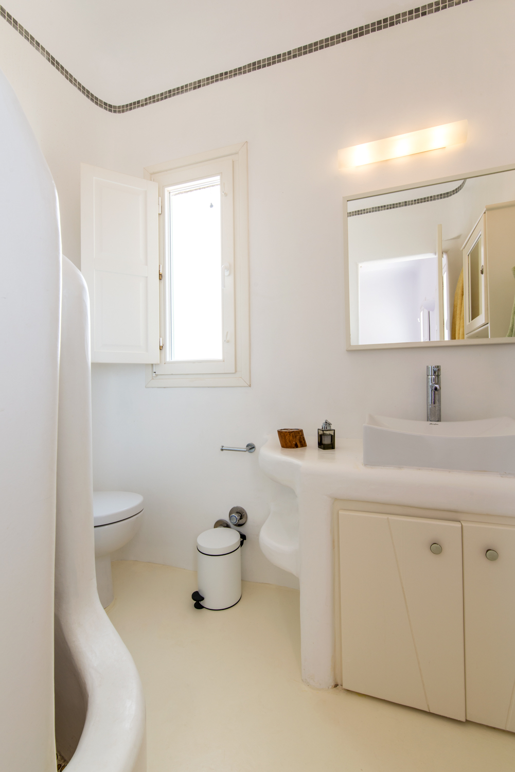 Solar panels and aeolic energy generators maximize the power sufficiency of the villa while minimizing its energy imprint. Relax in its swimming pool and outdoor shaded and sunny sitting areas, enjoy the view and discover all mythical qualities of the Greek summer holiday.