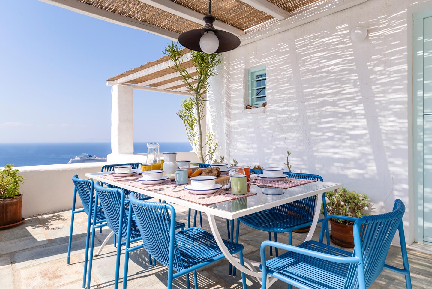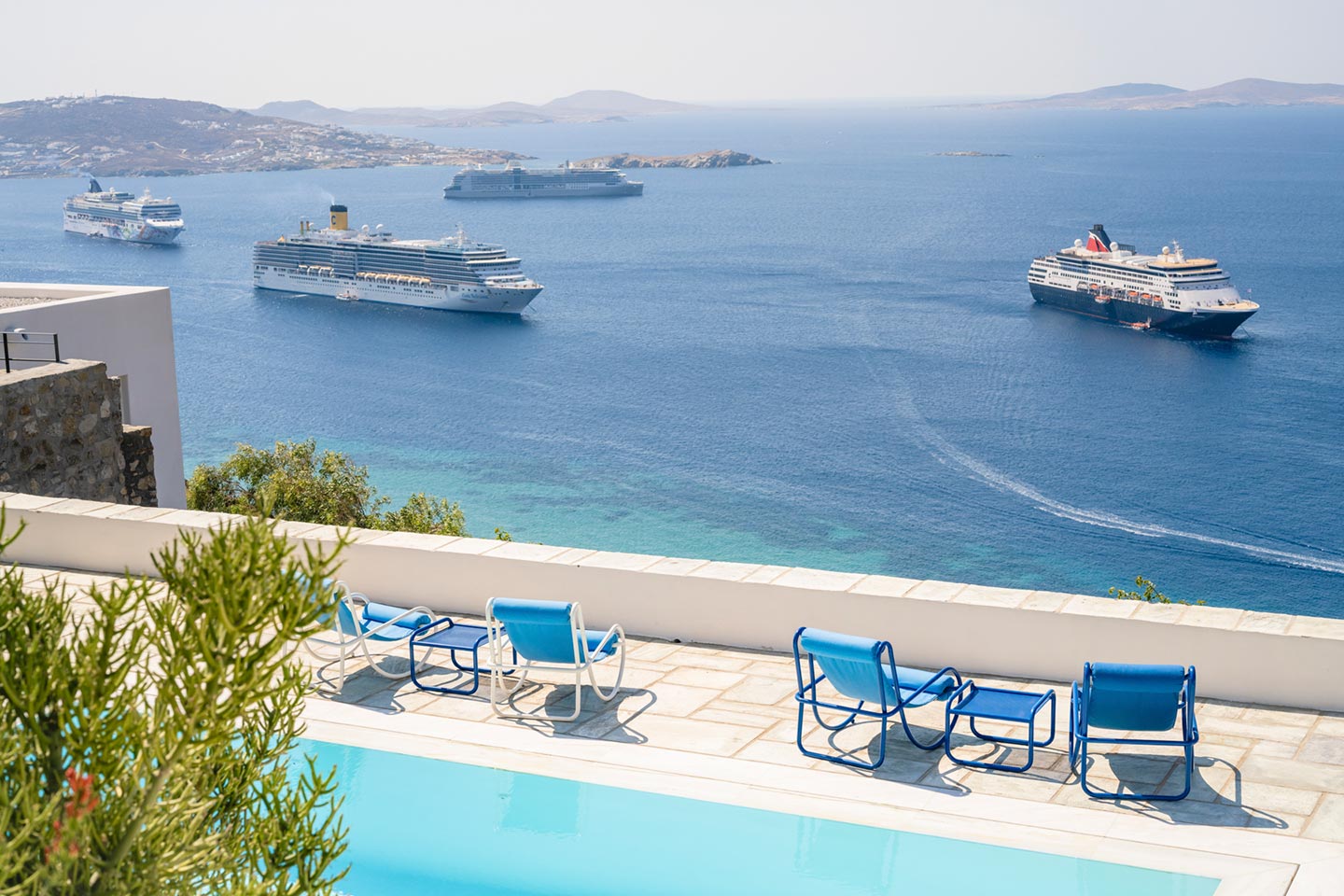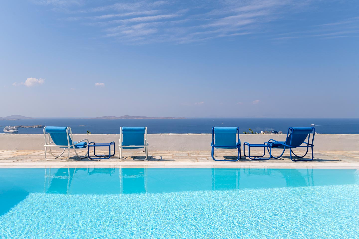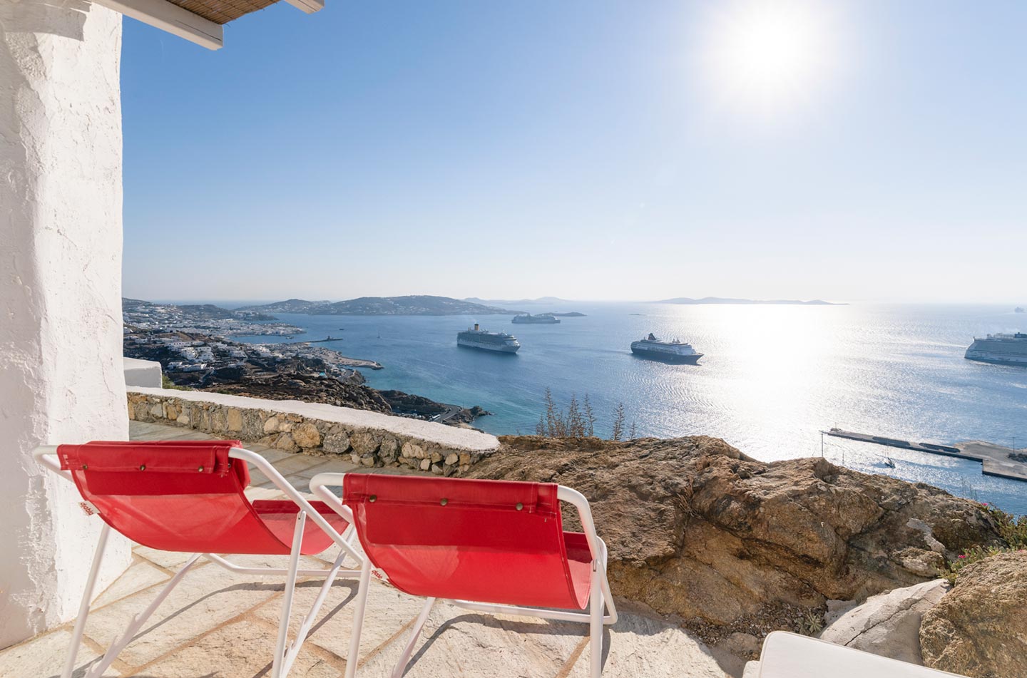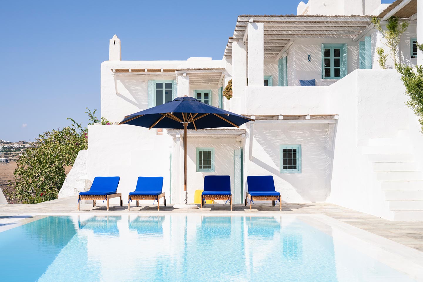 One of the most lovingly refurbished villas on Mykonos, indulges guests with sophisticated Cycladic hospitality and a feeling of being pampered by good friends. The villa boasts a 180-degree panorama of Cycladic islands and Mykonos town, allowing guests to imagine those early Aegean travelers leisurely crossing the sea on their way to trade goods or pilgrimage.Ella stands out for its understated sophistication and unique character that follows an alternative approach to Mediterranean holiday living and it can easily accommodate up to 14 guests in 6 beautiful bedrooms.