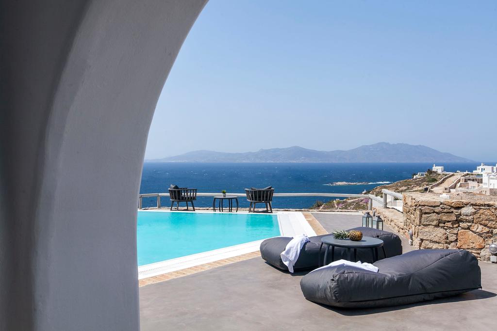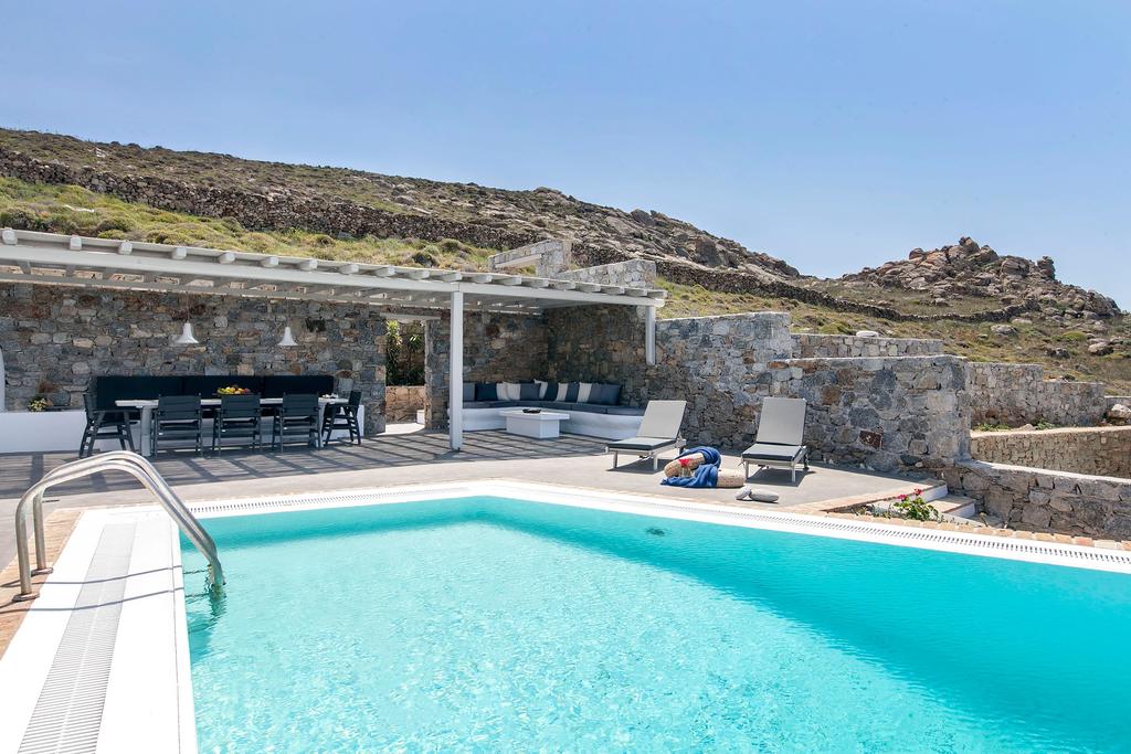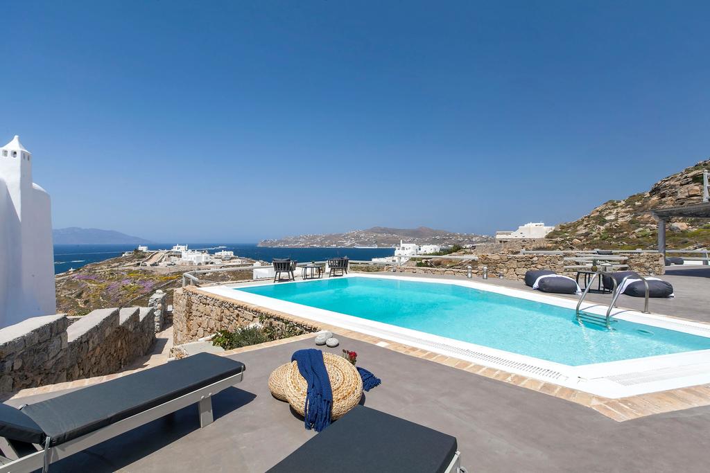 Situated on the panoramic and beautiful area of Kanalia, this villas is just a few minutes drive from Mykonos town. The villa is a private luxury estate, uniquely featuring one pool with stunning sunset views at the Aegean Sea, and the mystical Delos Island. The outstanding property features 4 bedrooms and can comfortably accommodate 8 guests.