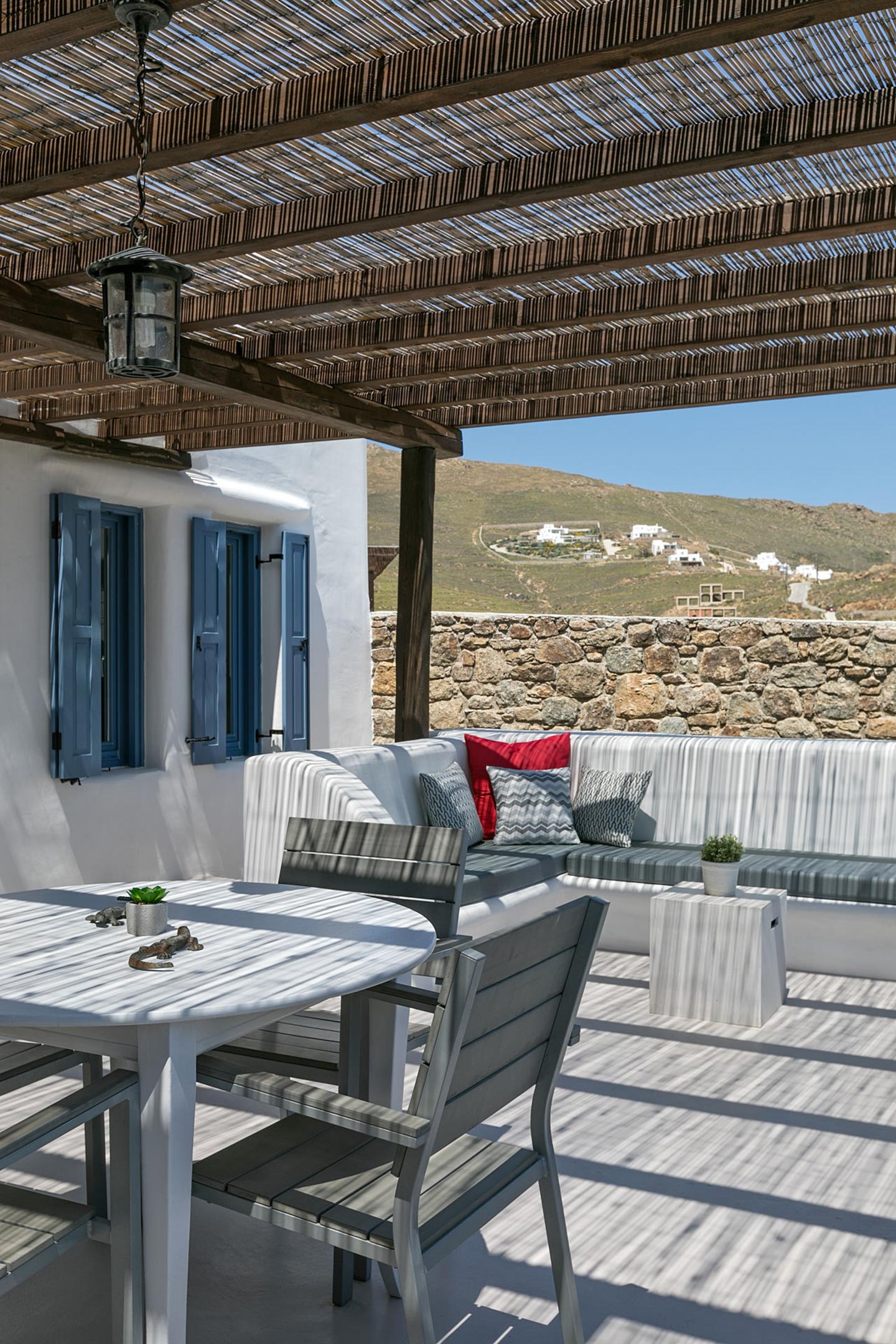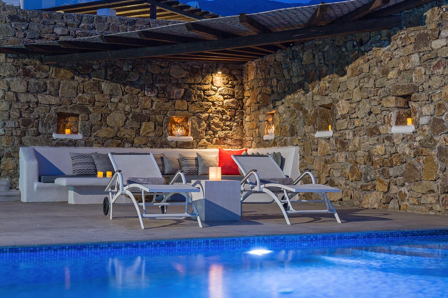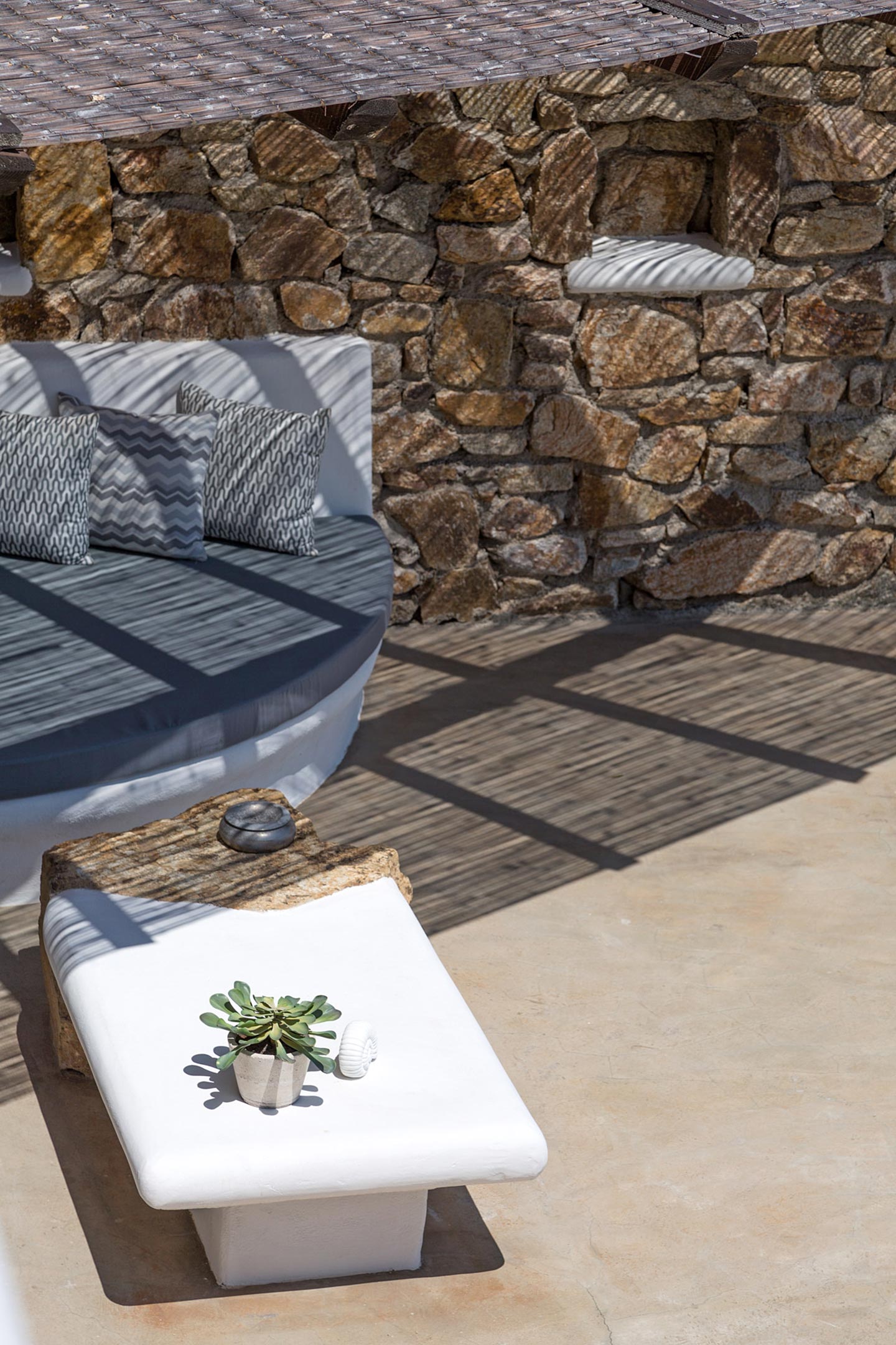 Set on 55,000 meters the villa is situated in one of the most scenic areas of the island. Villa Erifylli is located 300 meters from Panormos Beach, the well known Principote Beach Bar and Restaurant, 1km from Agios Sostis Beach and only 5km from Mykonos Town, the airport and port. The property has been designed to integrate tailor made experiences and understated elegance with the leisurely island lifestyle and vibrant nightlife that has made Mykonos a world class destination. Vila Erifylli provides the perfect combination of privacy, services, natural beauty and location. The interior and exterior living spaces of the villa have been constructed of the highest quality materials and are decorated with comfortable, stylish furnishings and carefully selected artwork that enhance the overall ambiance of this beautiful setting.