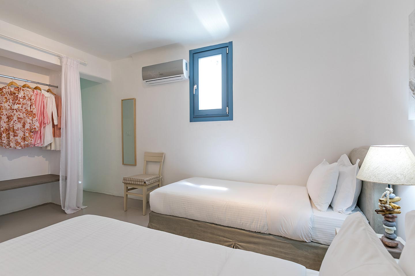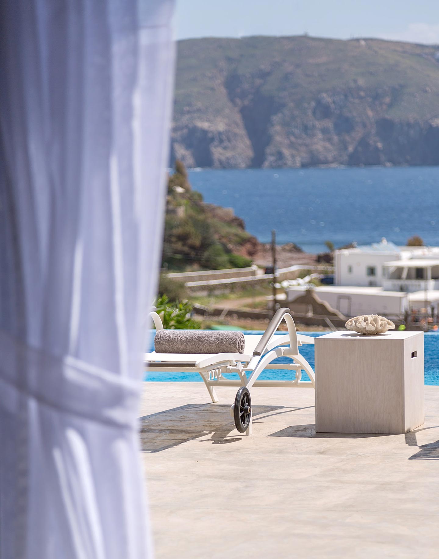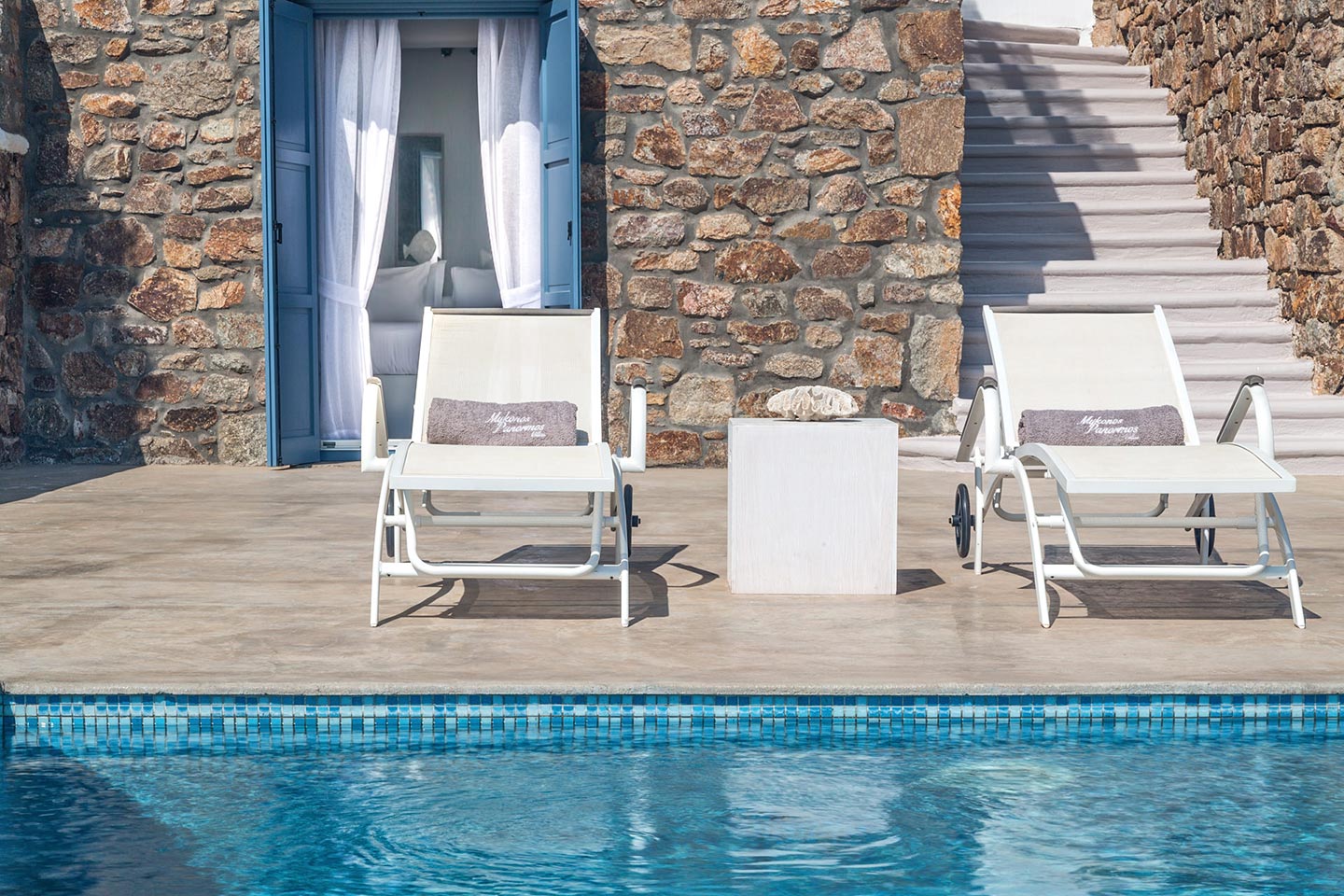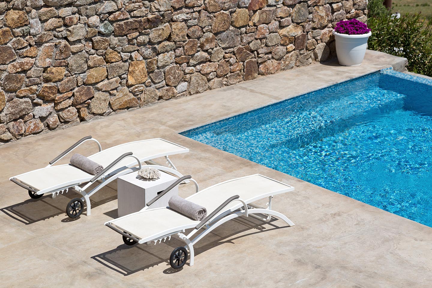 Set on 55,000 meters the villa is situated in one of the most scenic areas of the island. Villa Erifylli is located 300 meters from Panormos Beach, the well known Principote Beach Bar and Restaurant, 1km from Agios Sostis Beach and only 5km from Mykonos Town, the airport and port. The property has been designed to integrate tailor made experiences and understated elegance with the leisurely island lifestyle and vibrant nightlife that has made Mykonos a world class destination. Vila Erifylli provides the perfect combination of privacy, services, natural beauty and location. The interior and exterior living spaces of the villa have been constructed of the highest quality materials and are decorated with comfortable, stylish furnishings and carefully selected artwork that enhance the overall ambiance of this beautiful setting.
