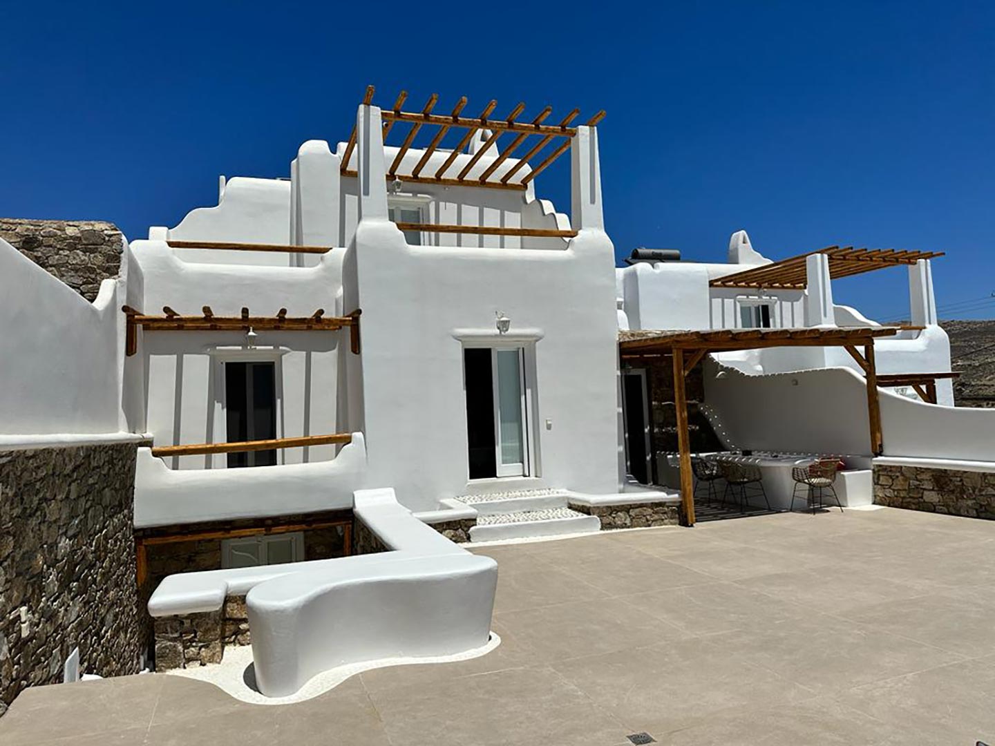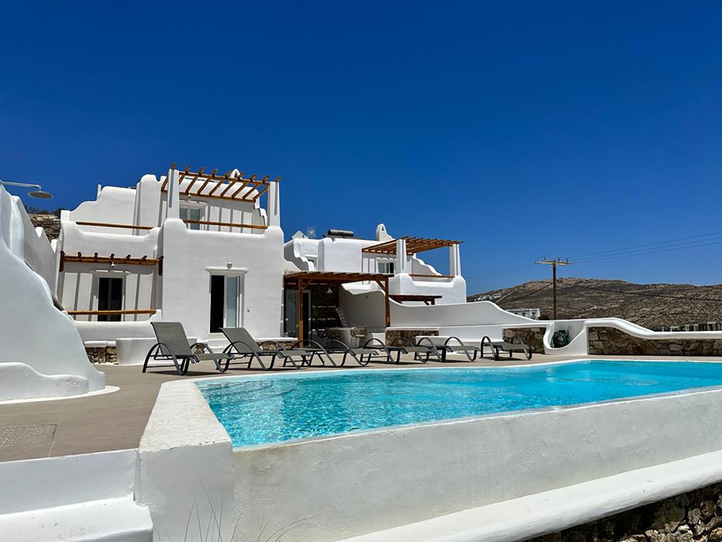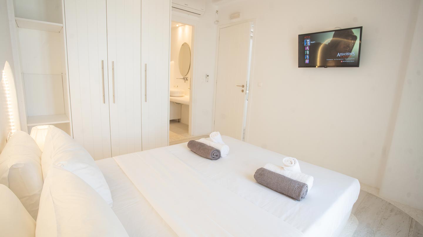 With a maximum capacity of 10 people, villa Evelyn is the perfect getaway for families, groups of friends, or couples seeking privacy and relaxation. The villa boasts five en-suite exquisitely designed bedrooms, each offering a harmonious blend of comfort and style. The elegant and spacious interiors are tastefully adorned, creating an atmosphere of refined luxury. One of the highlights of Evelyn is its private pool, where you can enjoy refreshing dips while basking in the warm Mediterranean sun. Lounge on comfortable sunbeds and unwind in the peaceful ambiance of the villa's outdoor area, surrounded by lush greenery and stunning sea views.