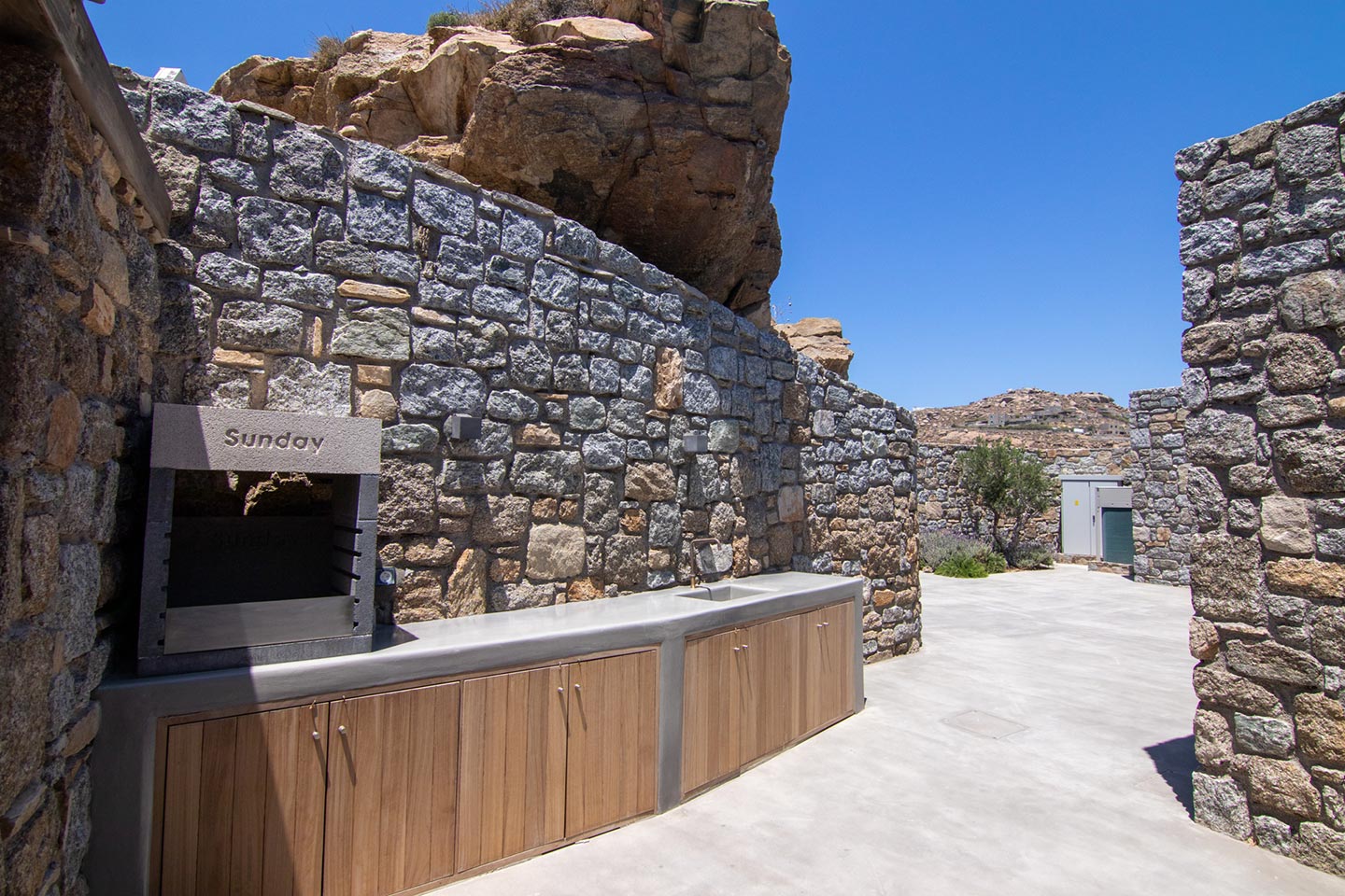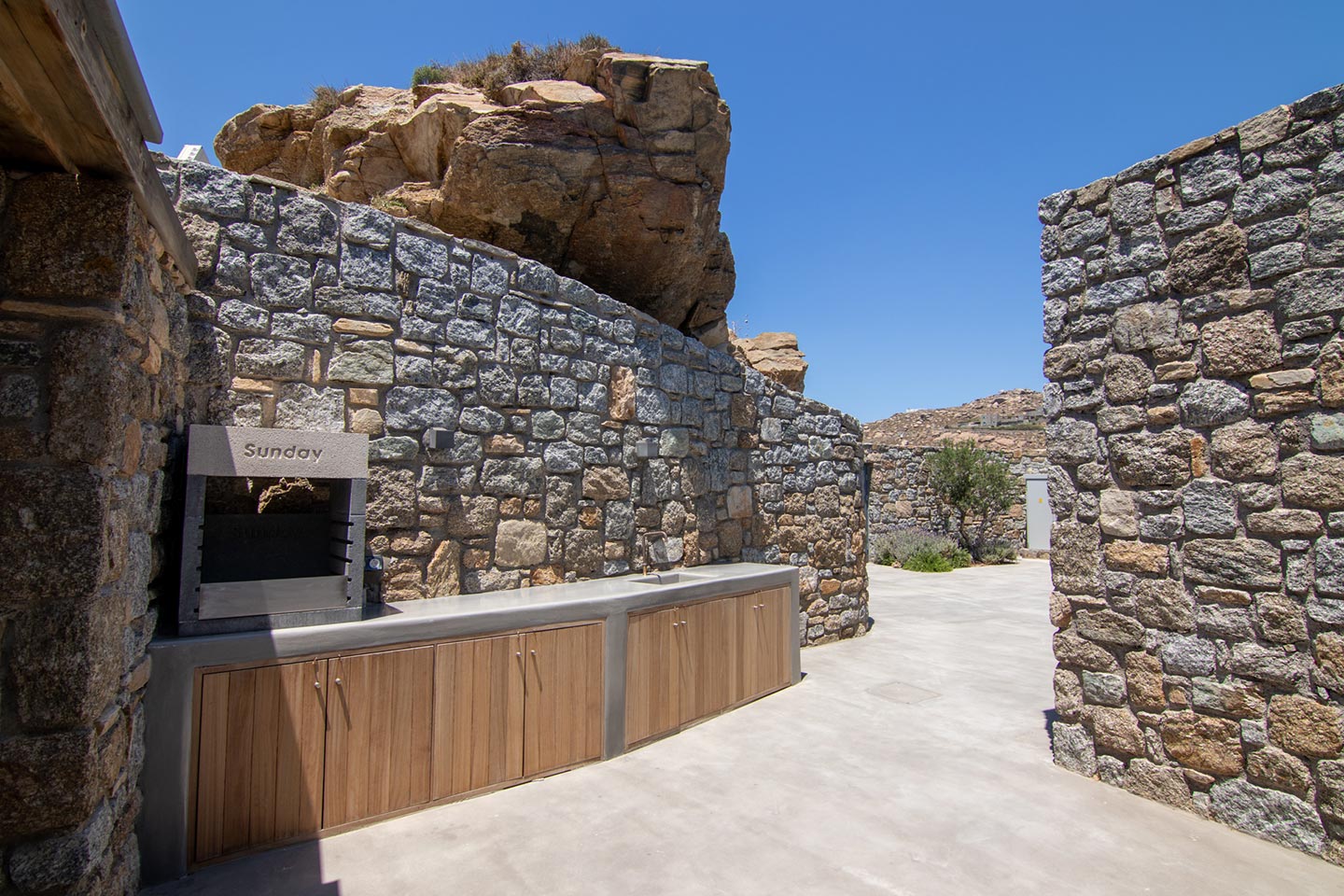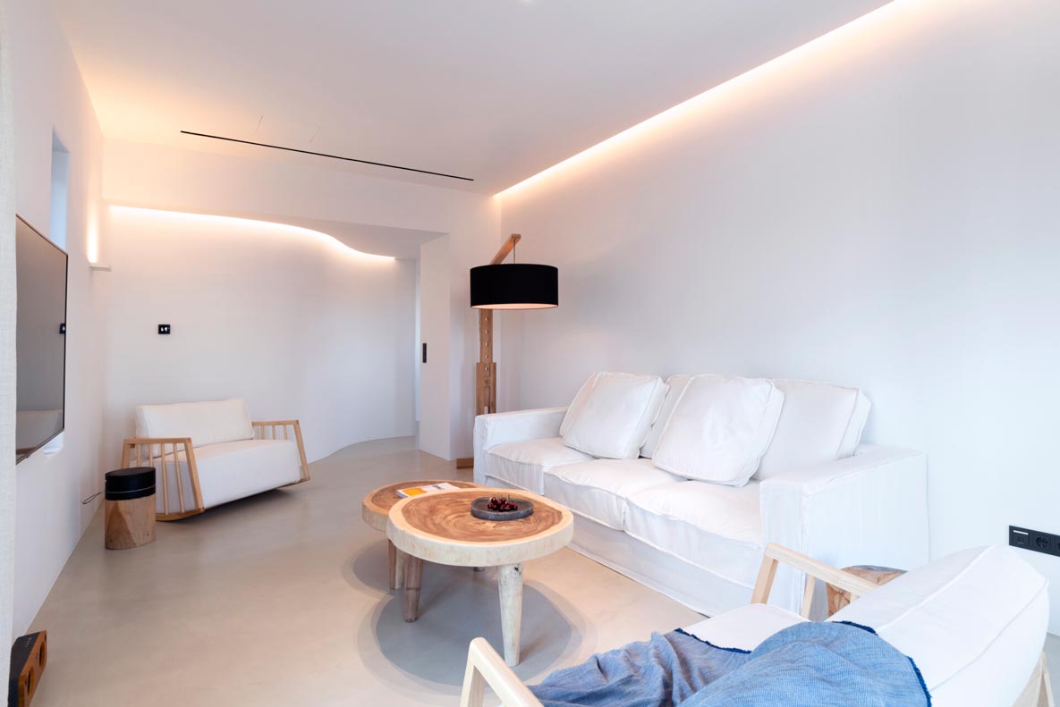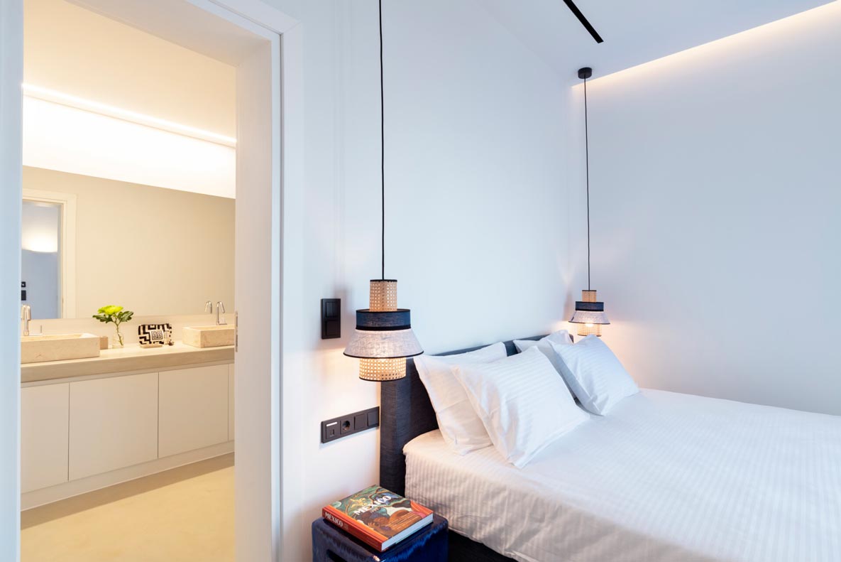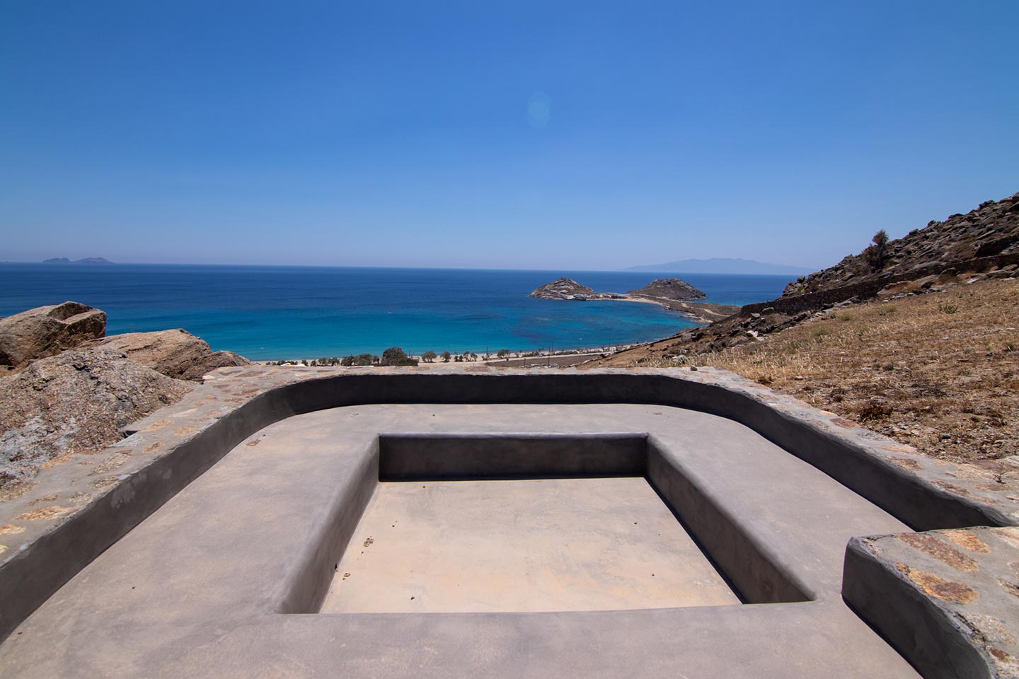 This superb, stone-clad, slab-designed, four-bedroom exclusive villa, perfectly captures Mykonos’ timeless panache. Dine like kings on spacious verandas, dip into a gorgeous infinity pool surrounded by a panoramic Aegean seascape you’ll never forget. Inside, this stylish house’s chic minimal aesthetics offer swathes of space and handcrafted woods. Gorgeous designer furniture and wicker pieces add warmth and a natural feel throughout. Sleep serenely in über-cool, en-suite bedrooms. Part of a 3-house complex where your privacy is neatly combined with glorious open-air summer living.