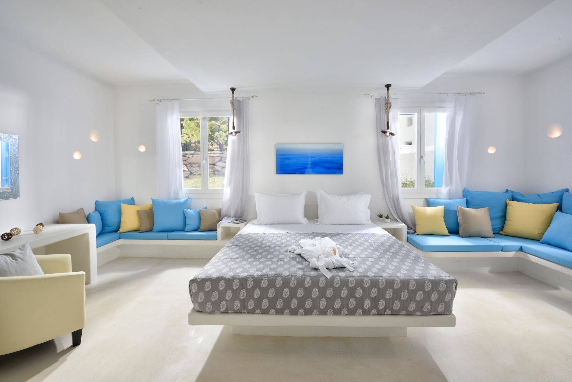 - Spacious bedroom with panoramic sea views