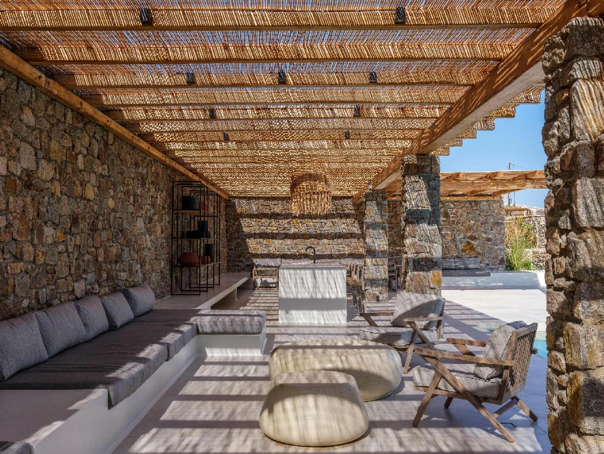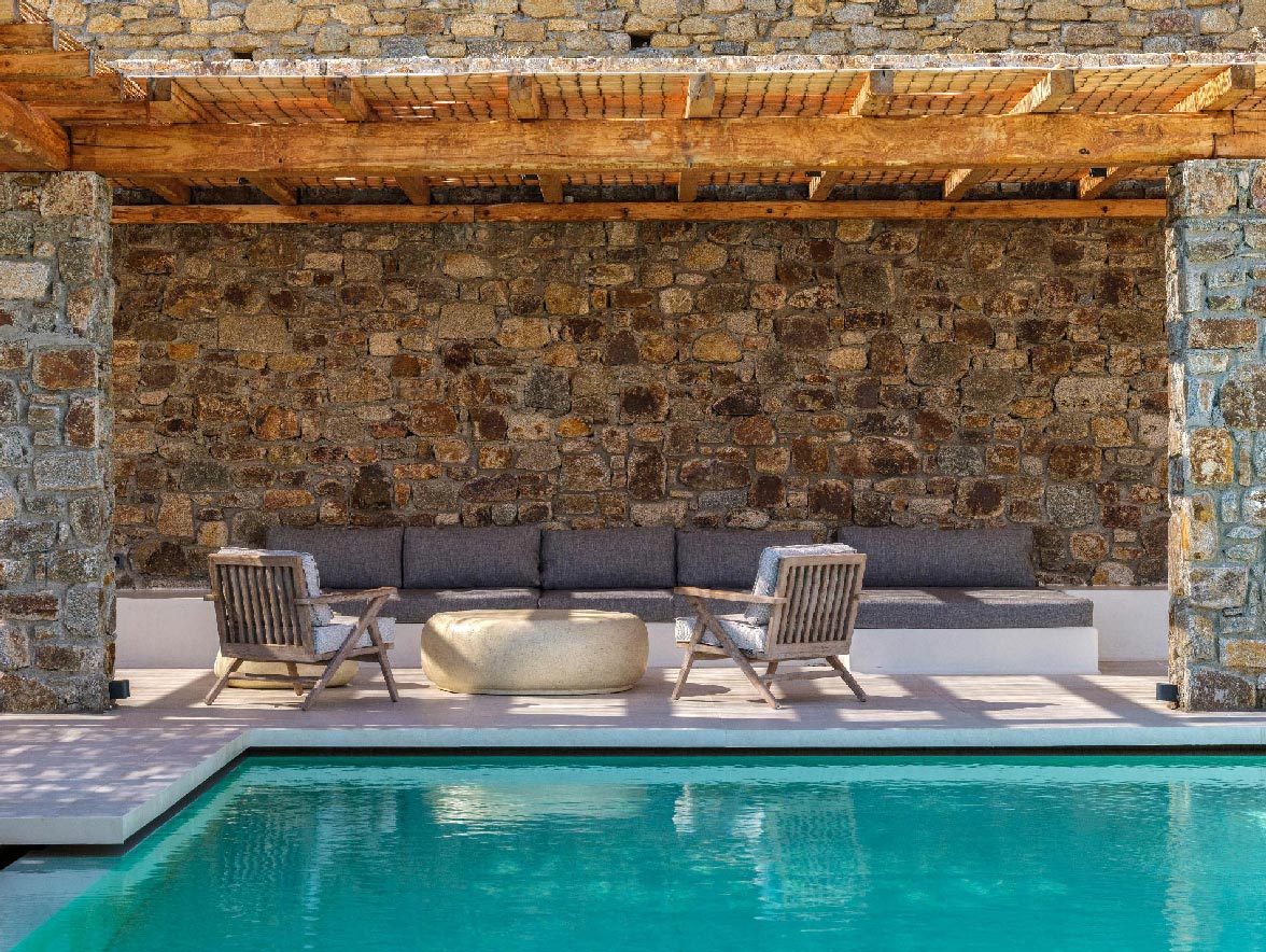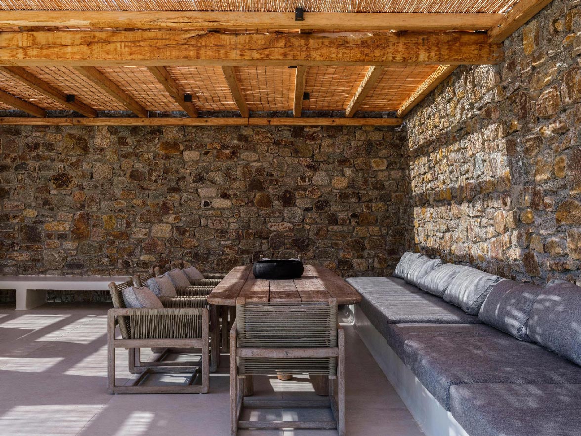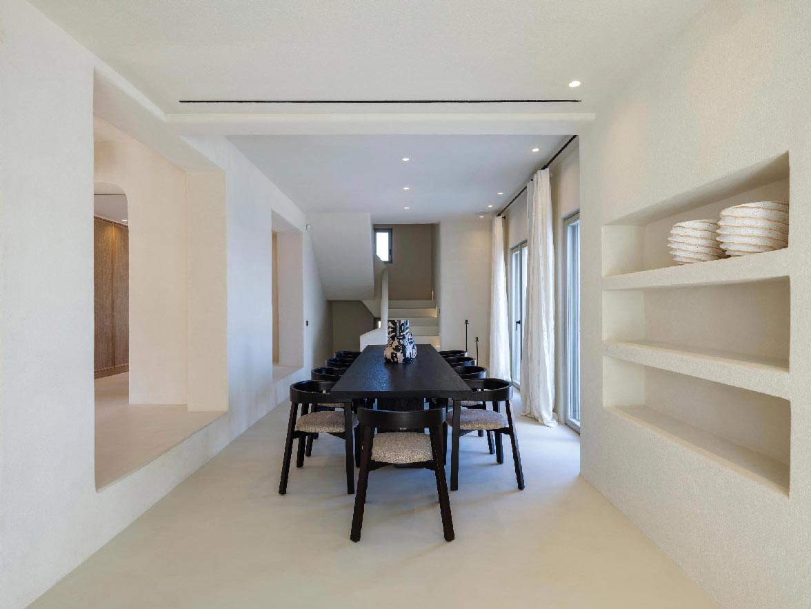 This brand new villa is a high-end property, located only a few minutes away from Ornos and Mykonos Town. The villa offers absolute privacy and proximity to all points of interest, at the same time. Away from the noise of Mykonos town, but still so close to all island facilities and nightlife. This luxurious property of 400 sq.m. expands in 3 levels and consists of 9 master bedrooms -all with luxurious beds and en suite bathrooms-, 1 WC, a spacious living room and a fully equipped kitchen. The property has a very spacious private outdoor terrace with a 100sq.m. infinity pool, well protected by the strong winds that often blow in Mykonos island.