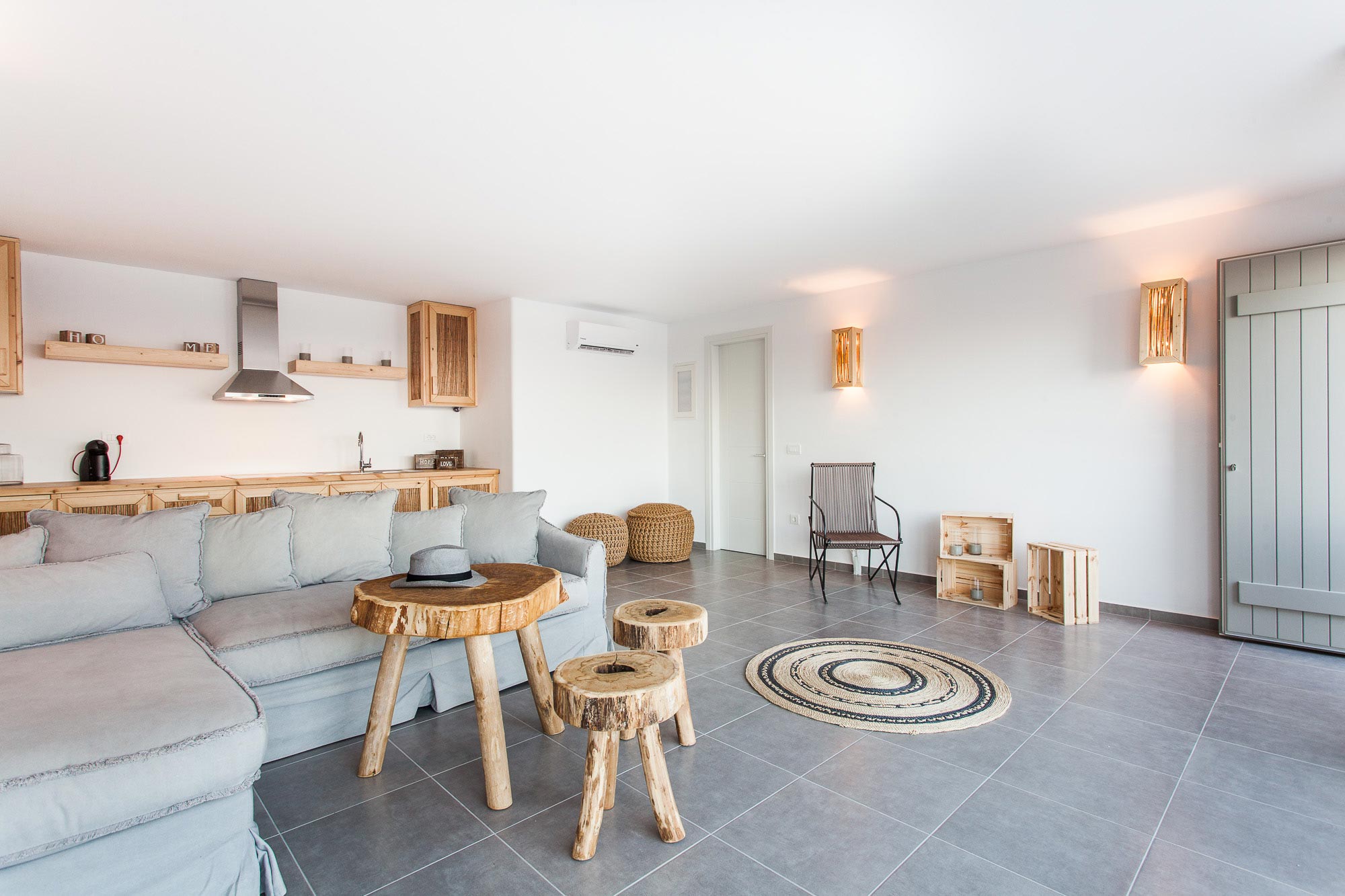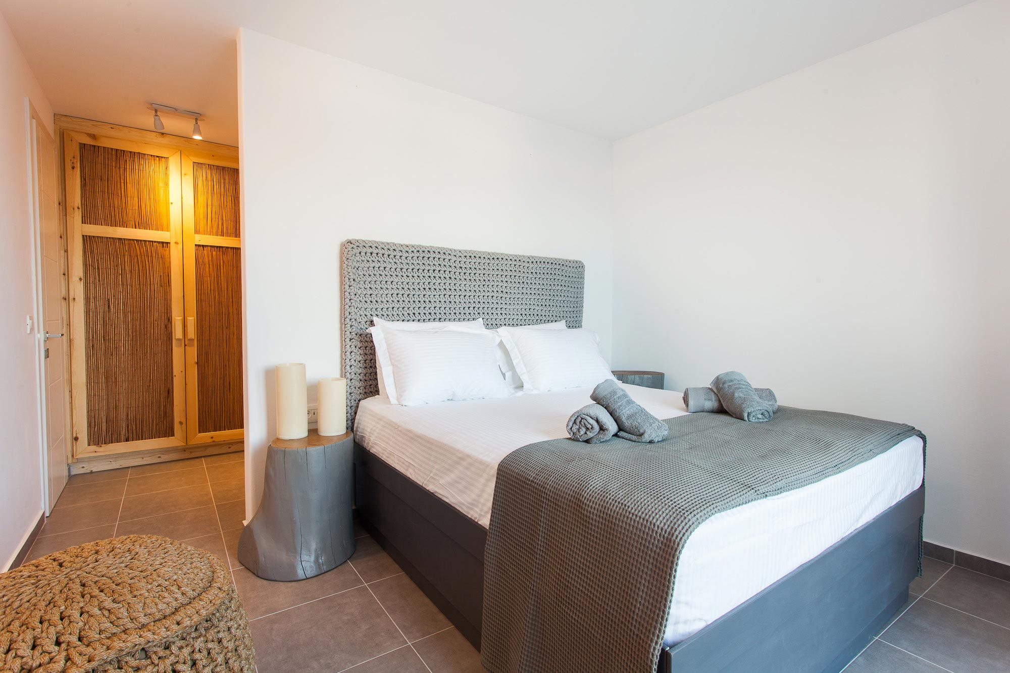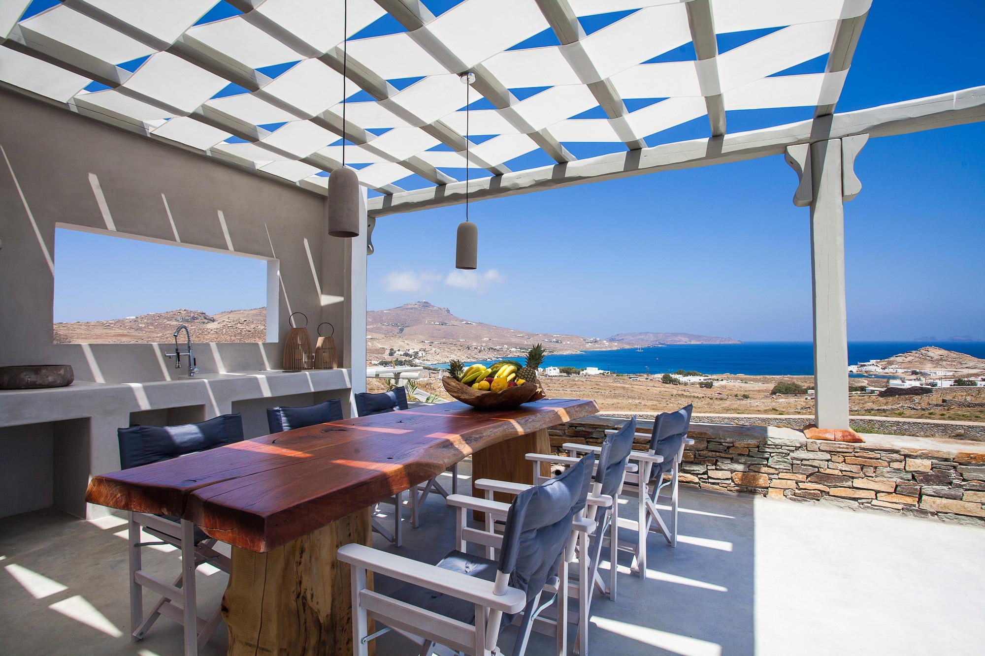 This 4 bedroom villa provides the privacy & tranquility guests seek during their holidays with the comfort they require & with lots of features of a smart house, from lighting to air-conditioning, satellite TV etc. The upper kitchen - as well as numerous furniture - has been picked from signed brands, while lots of touches have been added by Myconian carpenters offering a unique fashionable elegance. It has a big jacuzzi with sea view, a spacious terrace and a private swimming pool.
