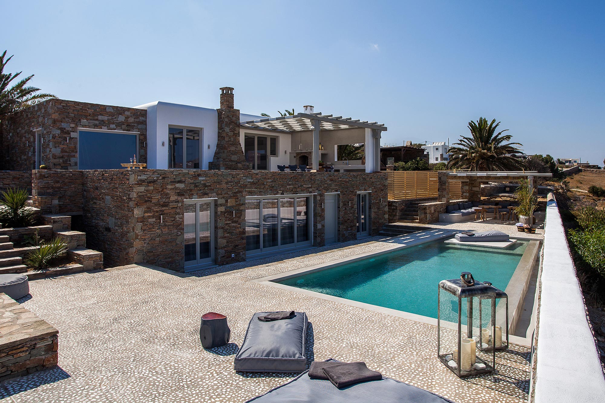 Villa Hermes is a brand new super-luxurious property, overlooking Kalafatis beach, located few minutes driving distance away from the island’s chora (town). Villa Hermes has been designed to flow elegantly between indoor and outdoor living. Pioneering a timeless contemporary Cycladic architecture, influenced by traditional Greek tone. Interior has been eclectically signed, vastly incorporating natural materials like local Myconian stone as well as massive parts of wood delivering absolute comfort in breath-taking surroundings, making you feel like home, away from home.