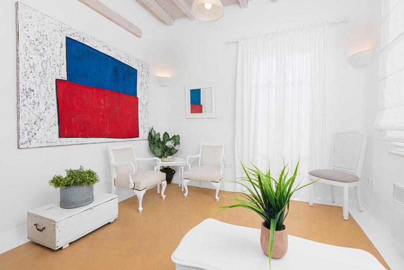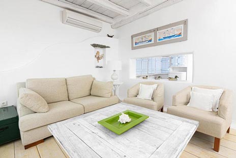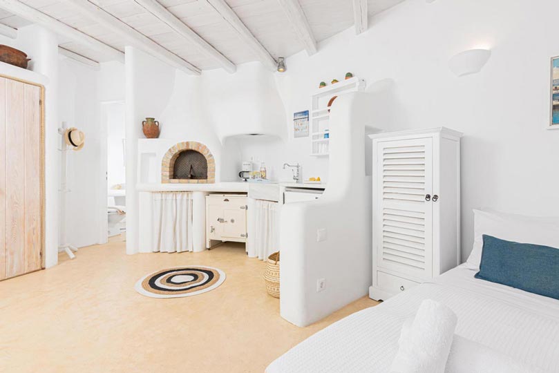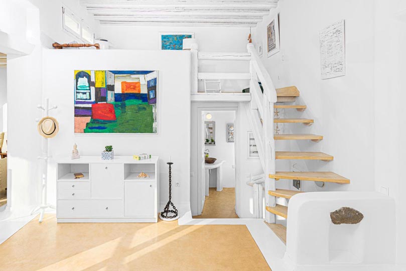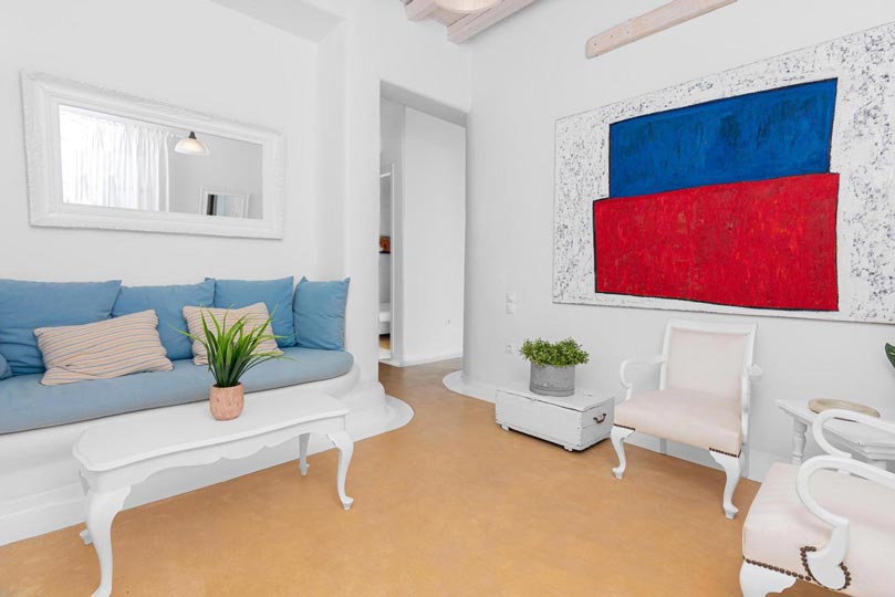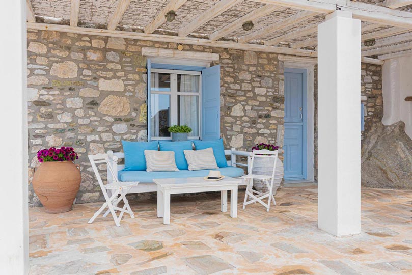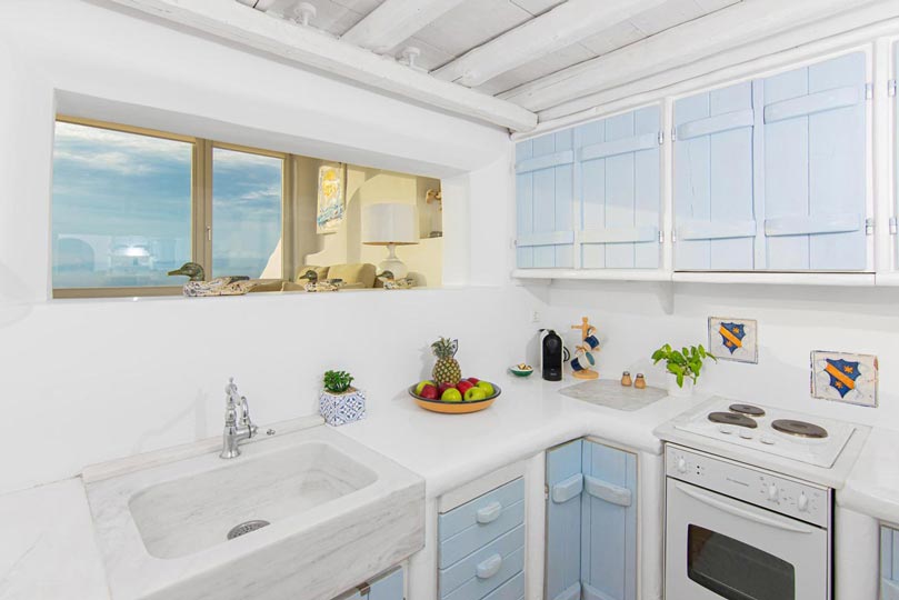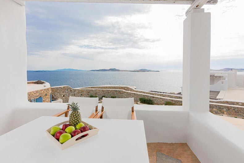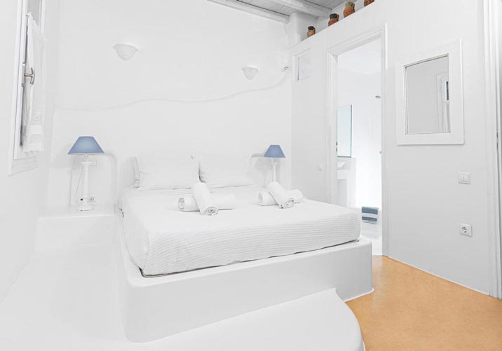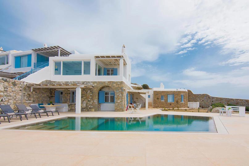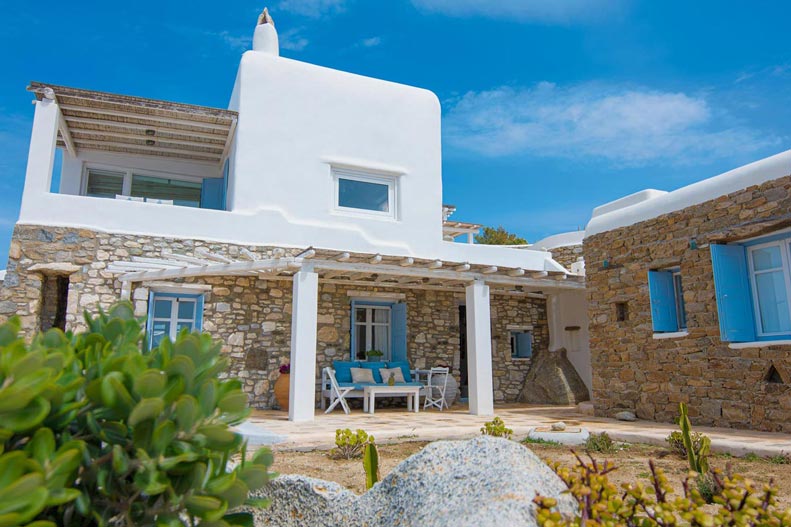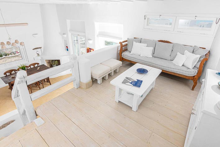 One of the most elegant properties on the island. Located atop Pouli hill in Kanalia area, one of the most famous spots in Mykonos, the villa offers charming outdoor spaces with sensational sunset views over the Aegean Sea and the tiny island of Delos. Its location is ideal for those that want to enjoy a romantic setting while at the same time being near some of the most popular beaches of Mykonos like Agios Ioannis beach and Ornos beach.