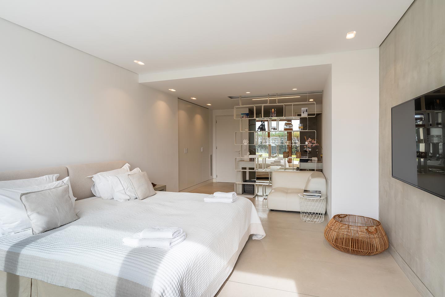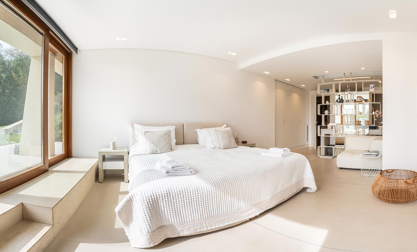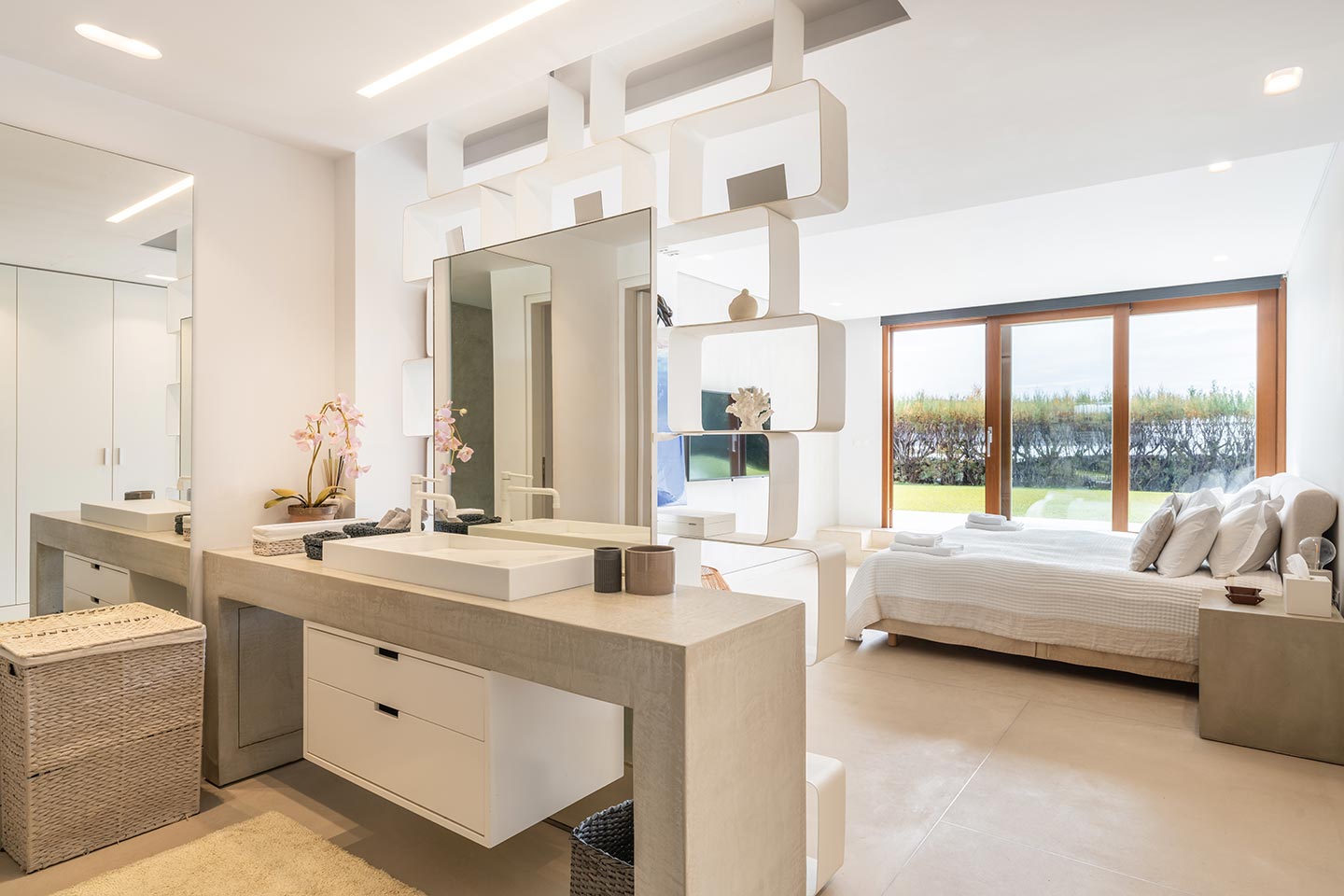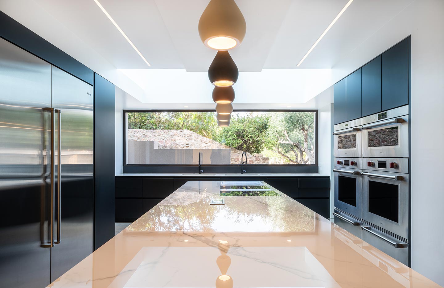 This spacious villa accommodates up to 14 guests across 7 beautifully designed bedrooms (5 in the main house and 2 in separate guesthouses). Ideal for families, groups, or multi-generational stays, it offers the perfect balance of private comfort and open, shared spaces. The villa boasts two private pools, expansive terraces for al fresco dining, and direct access to a secluded beach, offering guests the ultimate in relaxation and outdoor living. The panoramic views of the Aegean Sea and lush landscapes create a stunning backdrop for every occasion. For those seeking an active getaway, the villa features a tennis court, padel court, and a mini soccer field, ensuring that guests of all interests are well catered for. Whether it’s a friendly match or a leisurely day by the pool, the villa offers the perfect setting for both relaxation and recreation. The villa’s interiors are a blend of postmodern sophistication and playful 70s and pop art-inspired design. High-end materials such as stone, wood, and metal are combined with vibrant décor to create a visually captivating environment that encourages both relaxation and creative expression.
