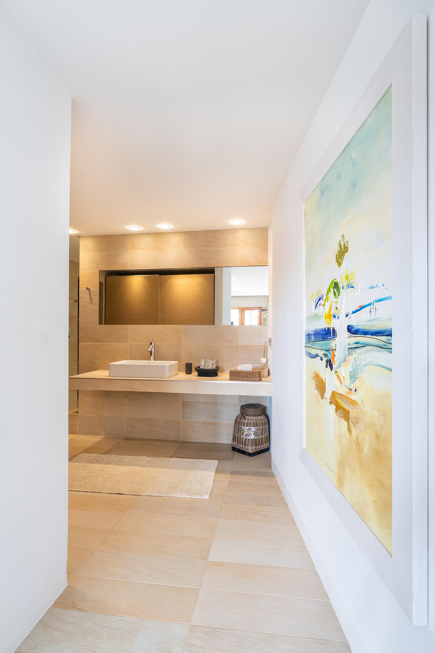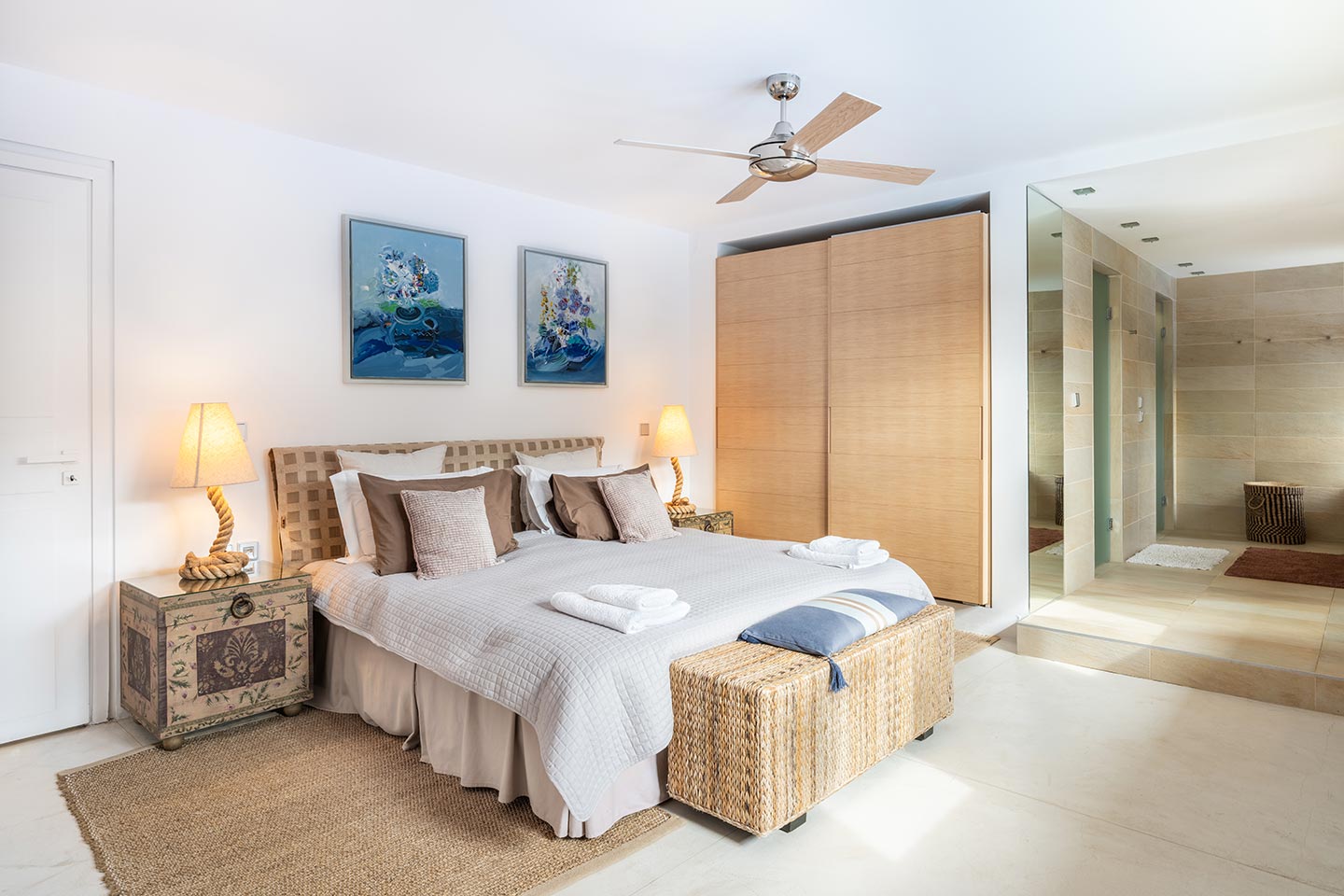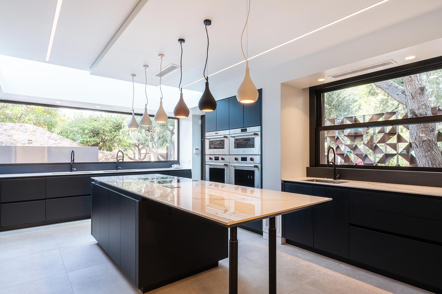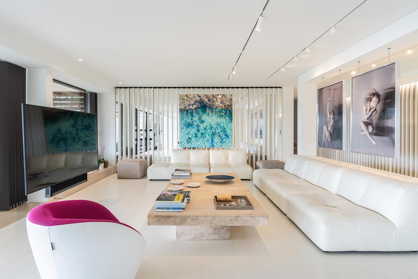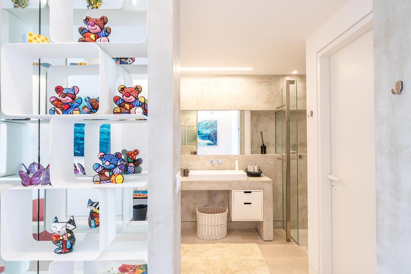 This spacious villa accommodates up to 14 guests across 7 beautifully designed bedrooms (5 in the main house and 2 in separate guesthouses). Ideal for families, groups, or multi-generational stays, it offers the perfect balance of private comfort and open, shared spaces. The villa boasts two private pools, expansive terraces for al fresco dining, and direct access to a secluded beach, offering guests the ultimate in relaxation and outdoor living. The panoramic views of the Aegean Sea and lush landscapes create a stunning backdrop for every occasion. For those seeking an active getaway, the villa features a tennis court, padel court, and a mini soccer field, ensuring that guests of all interests are well catered for. Whether it’s a friendly match or a leisurely day by the pool, the villa offers the perfect setting for both relaxation and recreation. The villa’s interiors are a blend of postmodern sophistication and playful 70s and pop art-inspired design. High-end materials such as stone, wood, and metal are combined with vibrant décor to create a visually captivating environment that encourages both relaxation and creative expression.