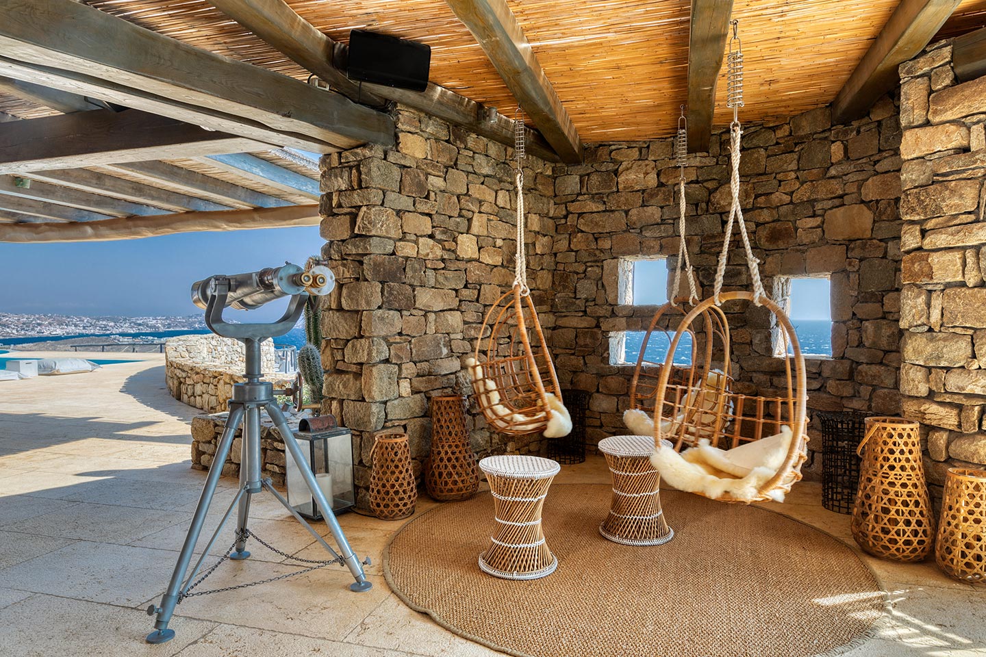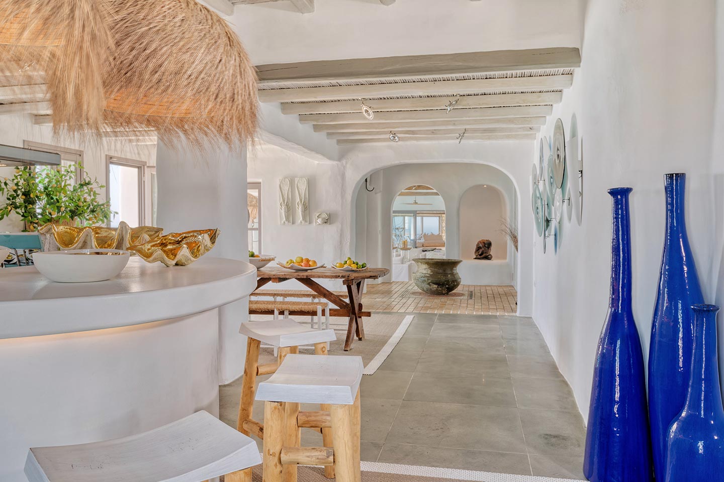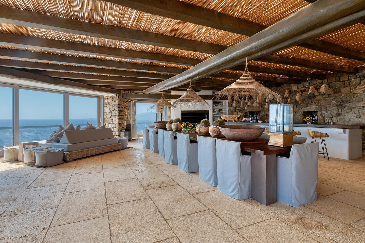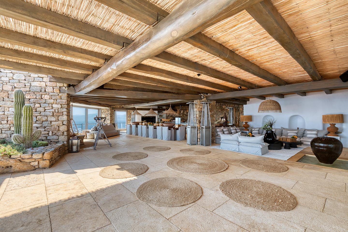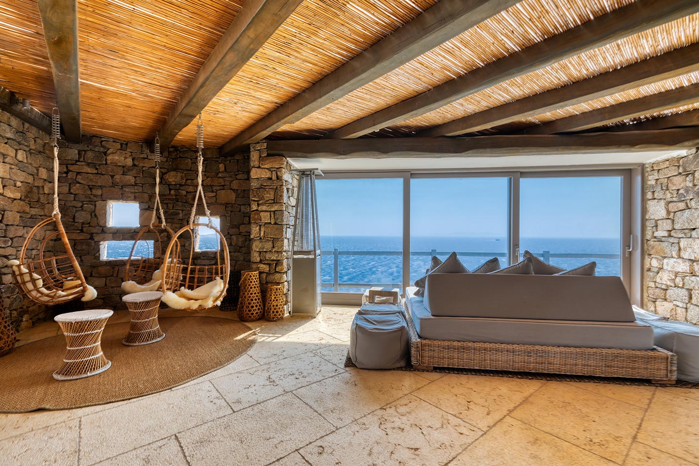Perched majestically atop the cliffs of Houlakia, The villa stands as the crown jewel of Mykonos, offering an unparalleled private estate experience.Its strategic location provides awe-inspiring panoramic views of the azure Aegean Sea, creating a mesmerizing backdrop for an unforgettable stay.Every aspect of the villa is meticulously designed to integrate seamlessly with the island’s natural beauty. The estate’s architecture blends harmoniously with the rugged landscape, featuring a timeless stone and whitewashed exterior that embodies the quintessential Mykonian aesthetic.