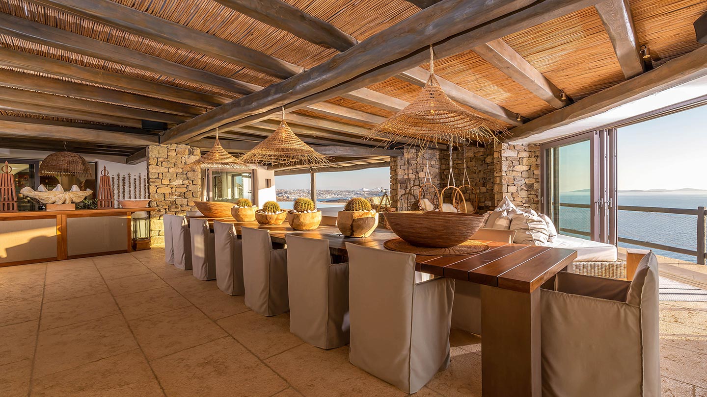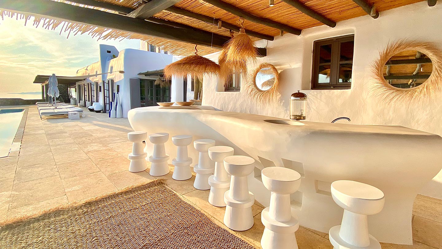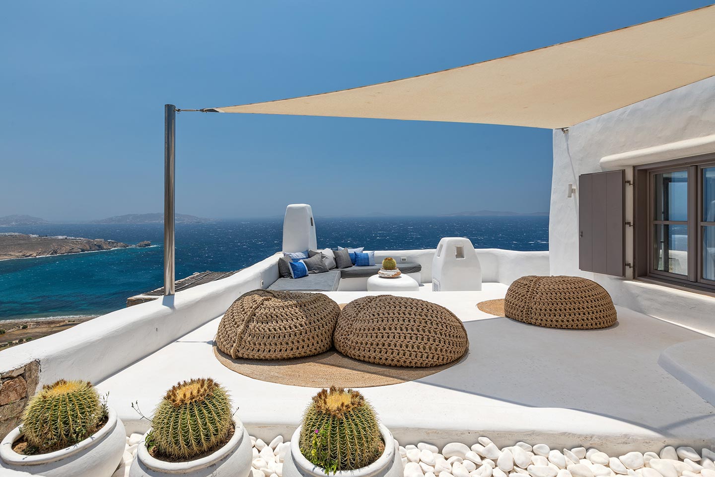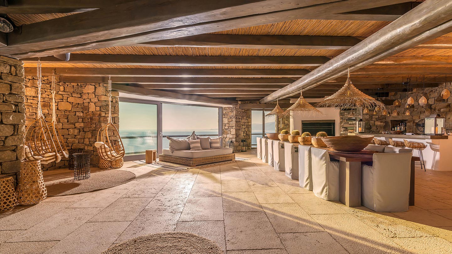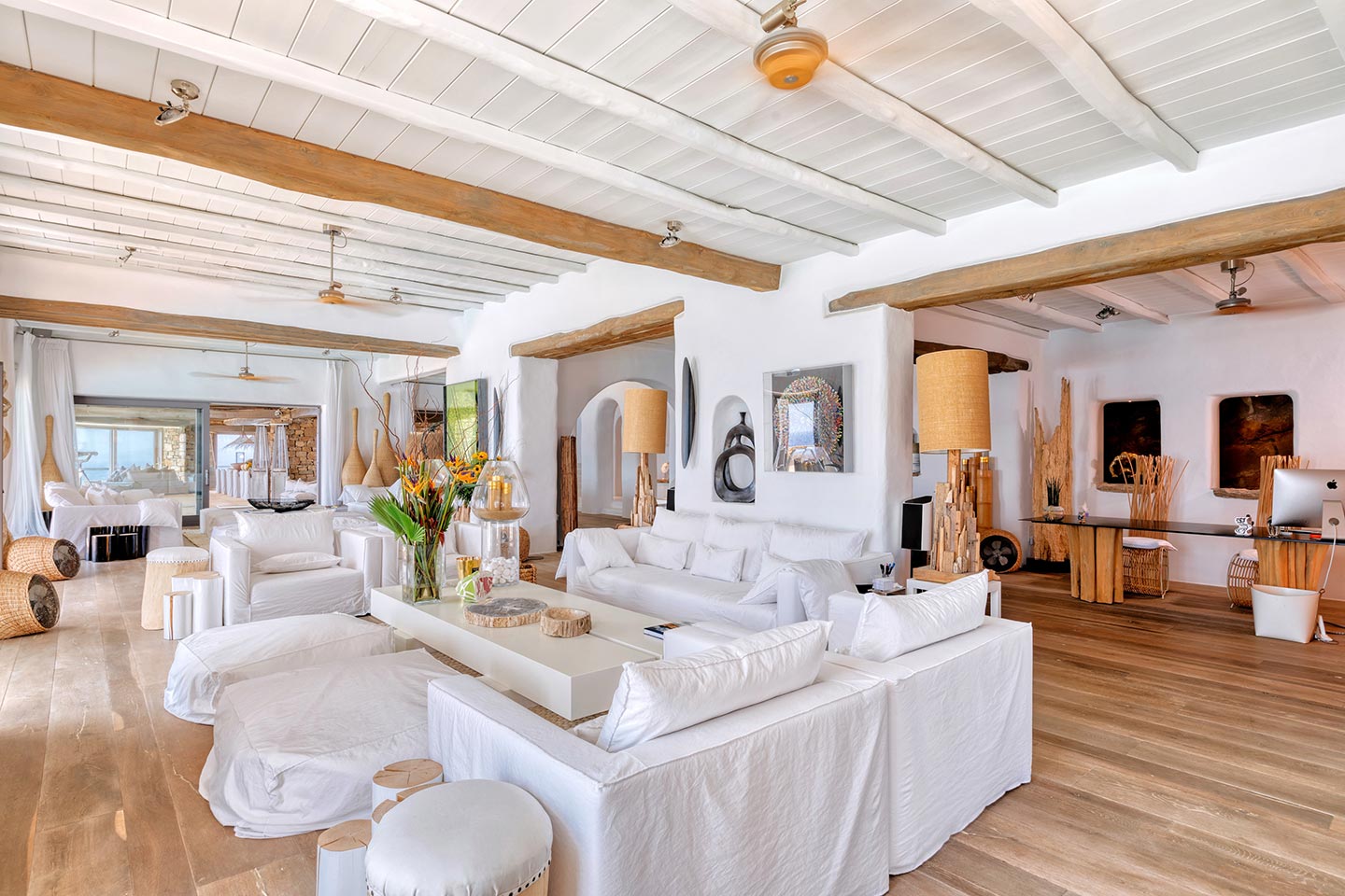Perched majestically atop the cliffs of Houlakia, The villa stands as the crown jewel of Mykonos, offering an unparalleled private estate experience.Its strategic location provides awe-inspiring panoramic views of the azure Aegean Sea, creating a mesmerizing backdrop for an unforgettable stay.Every aspect of the villa is meticulously designed to integrate seamlessly with the island’s natural beauty. The estate’s architecture blends harmoniously with the rugged landscape, featuring a timeless stone and whitewashed exterior that embodies the quintessential Mykonian aesthetic.