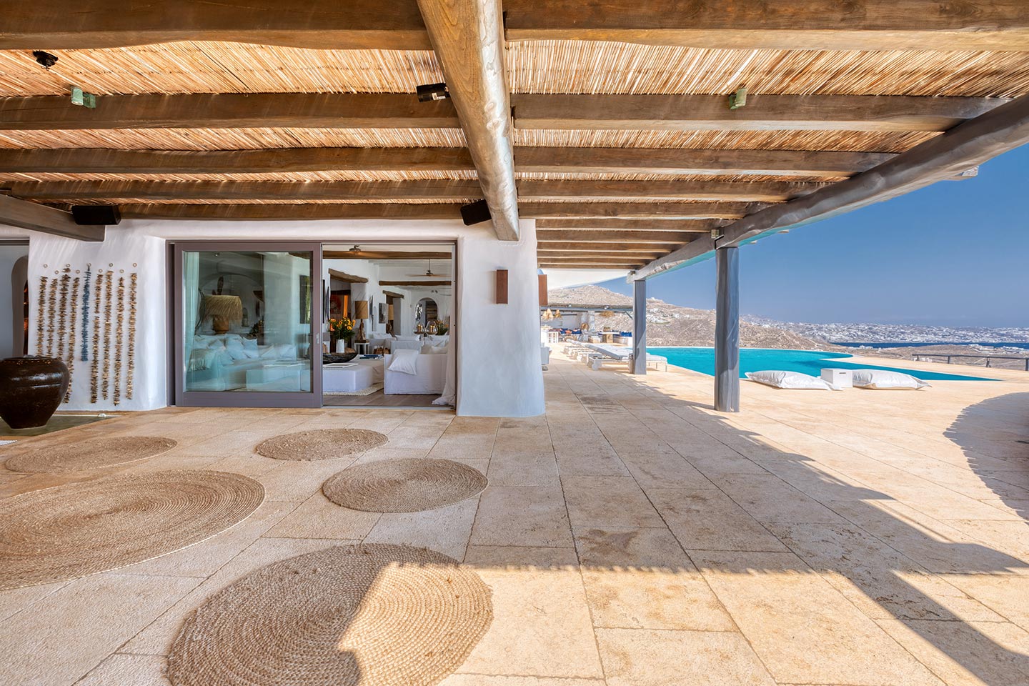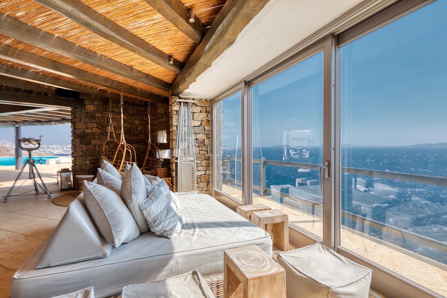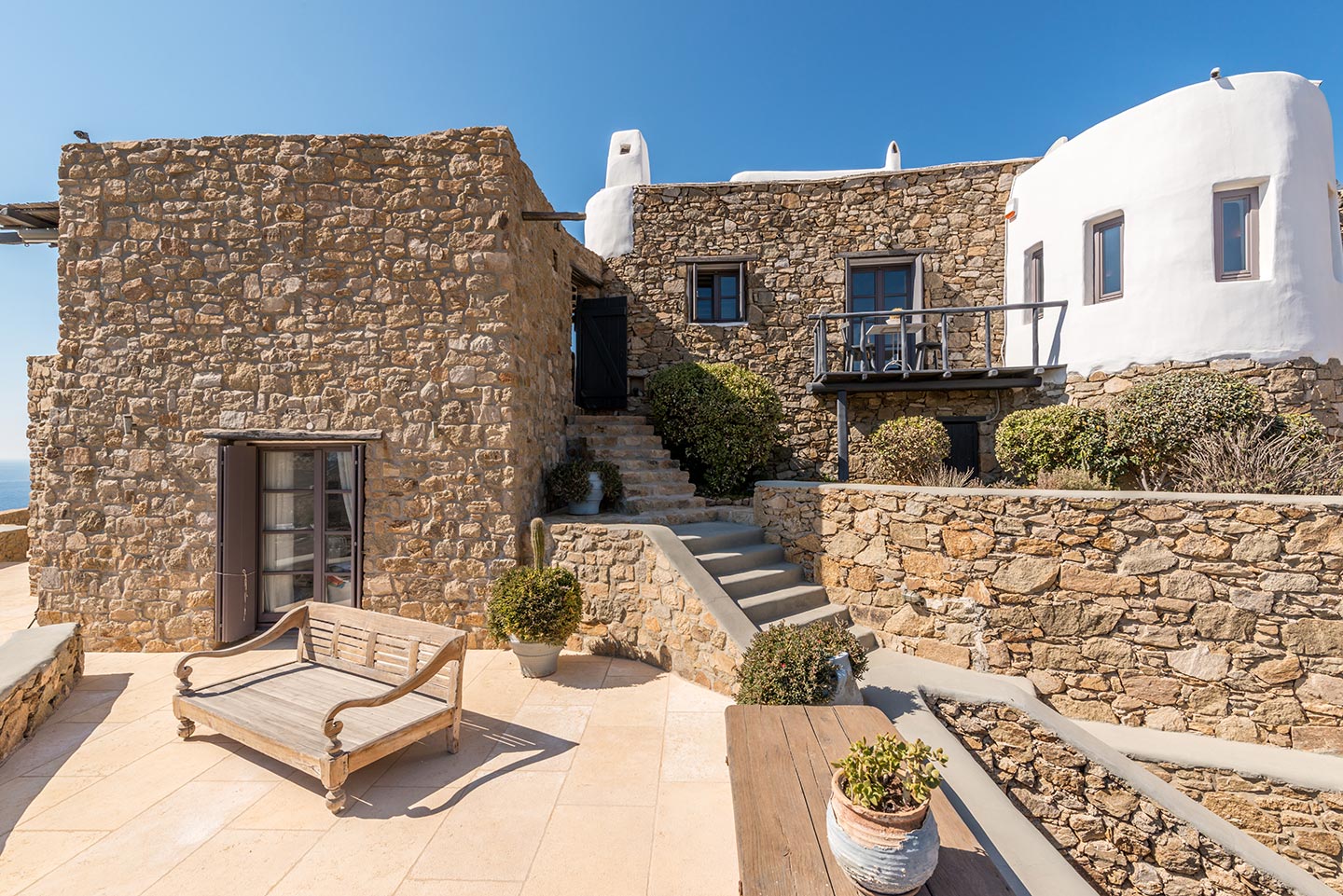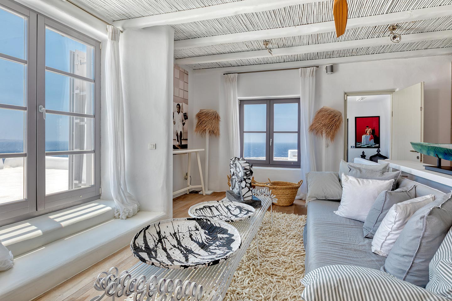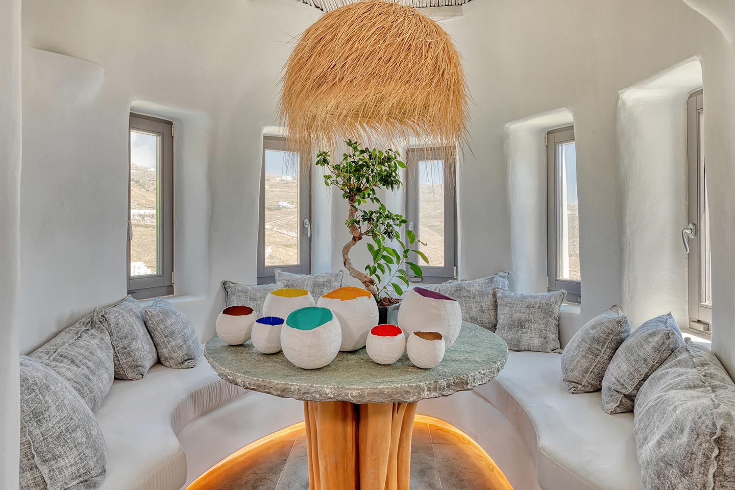 Perched majestically atop the cliffs of Houlakia, The villa stands as the crown jewel of Mykonos, offering an unparalleled private estate experience.Its strategic location provides awe-inspiring panoramic views of the azure Aegean Sea, creating a mesmerizing backdrop for an unforgettable stay.Every aspect of the villa is meticulously designed to integrate seamlessly with the island’s natural beauty. The estate’s architecture blends harmoniously with the rugged landscape, featuring a timeless stone and whitewashed exterior that embodies the quintessential Mykonian aesthetic.