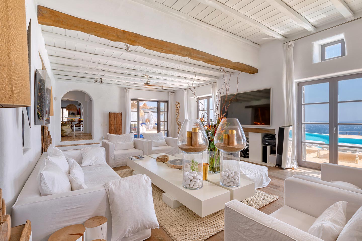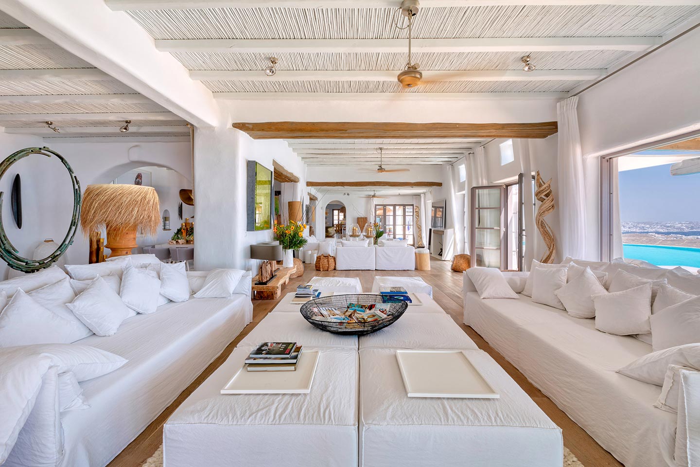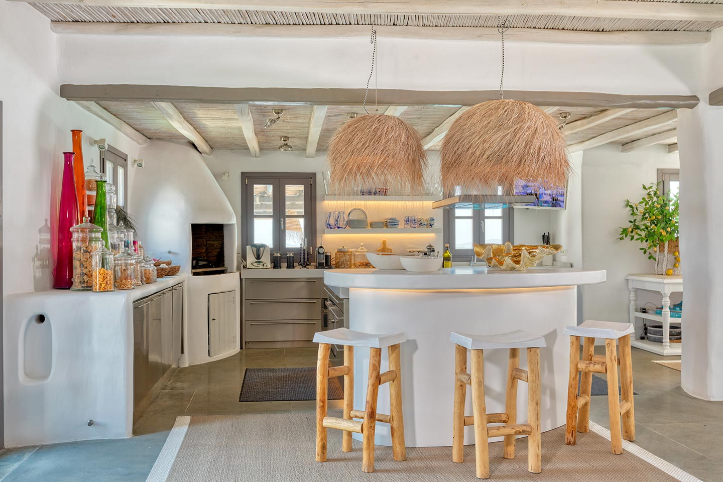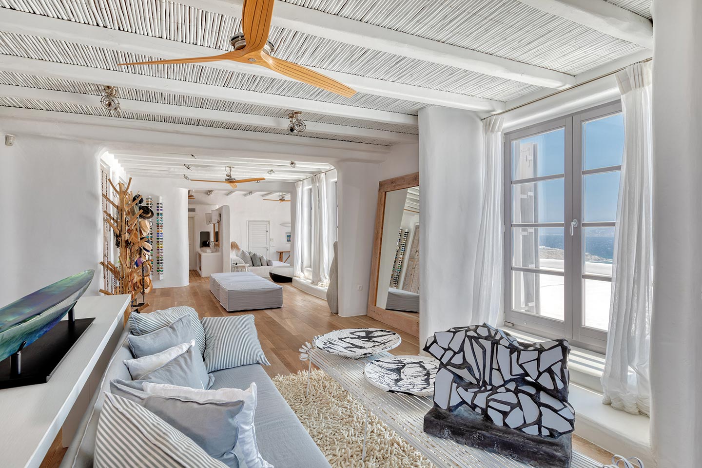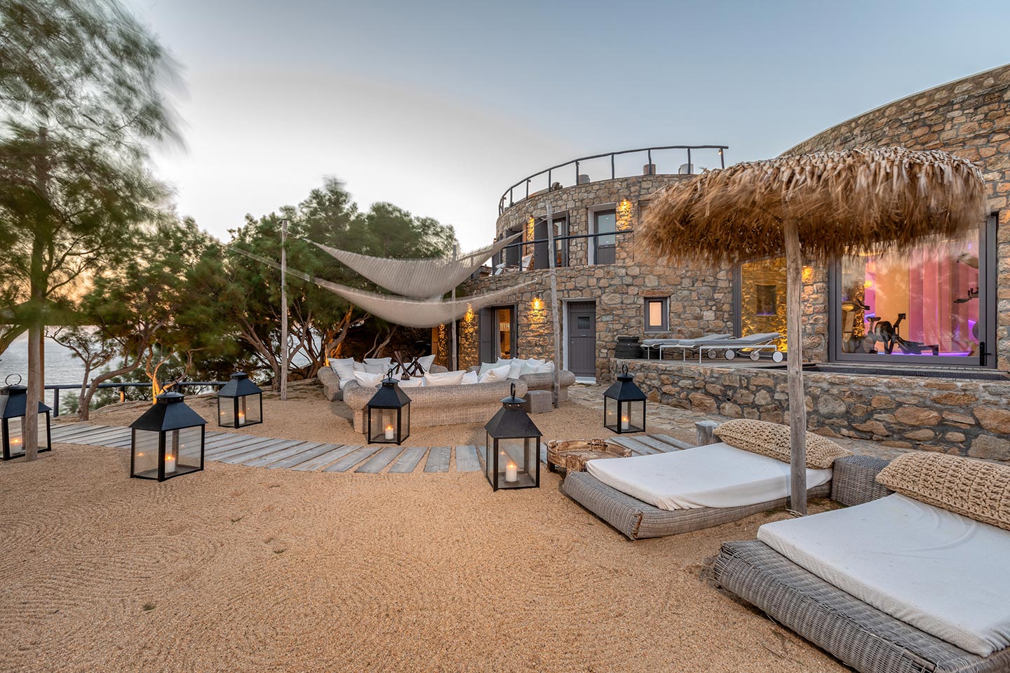 Perched majestically atop the cliffs of Houlakia, The villa stands as the crown jewel of Mykonos, offering an unparalleled private estate experience.Its strategic location provides awe-inspiring panoramic views of the azure Aegean Sea, creating a mesmerizing backdrop for an unforgettable stay.Every aspect of the villa is meticulously designed to integrate seamlessly with the island’s natural beauty. The estate’s architecture blends harmoniously with the rugged landscape, featuring a timeless stone and whitewashed exterior that embodies the quintessential Mykonian aesthetic.