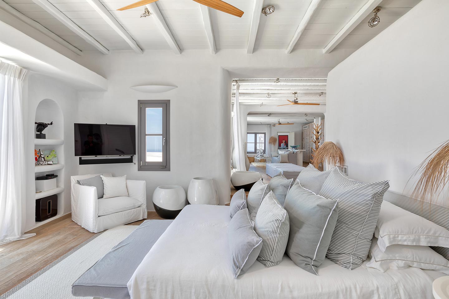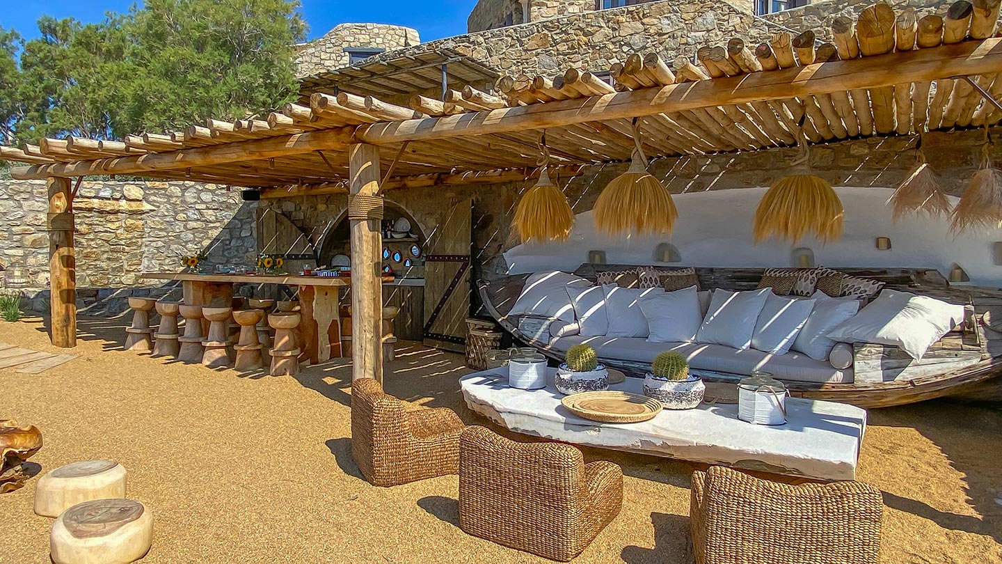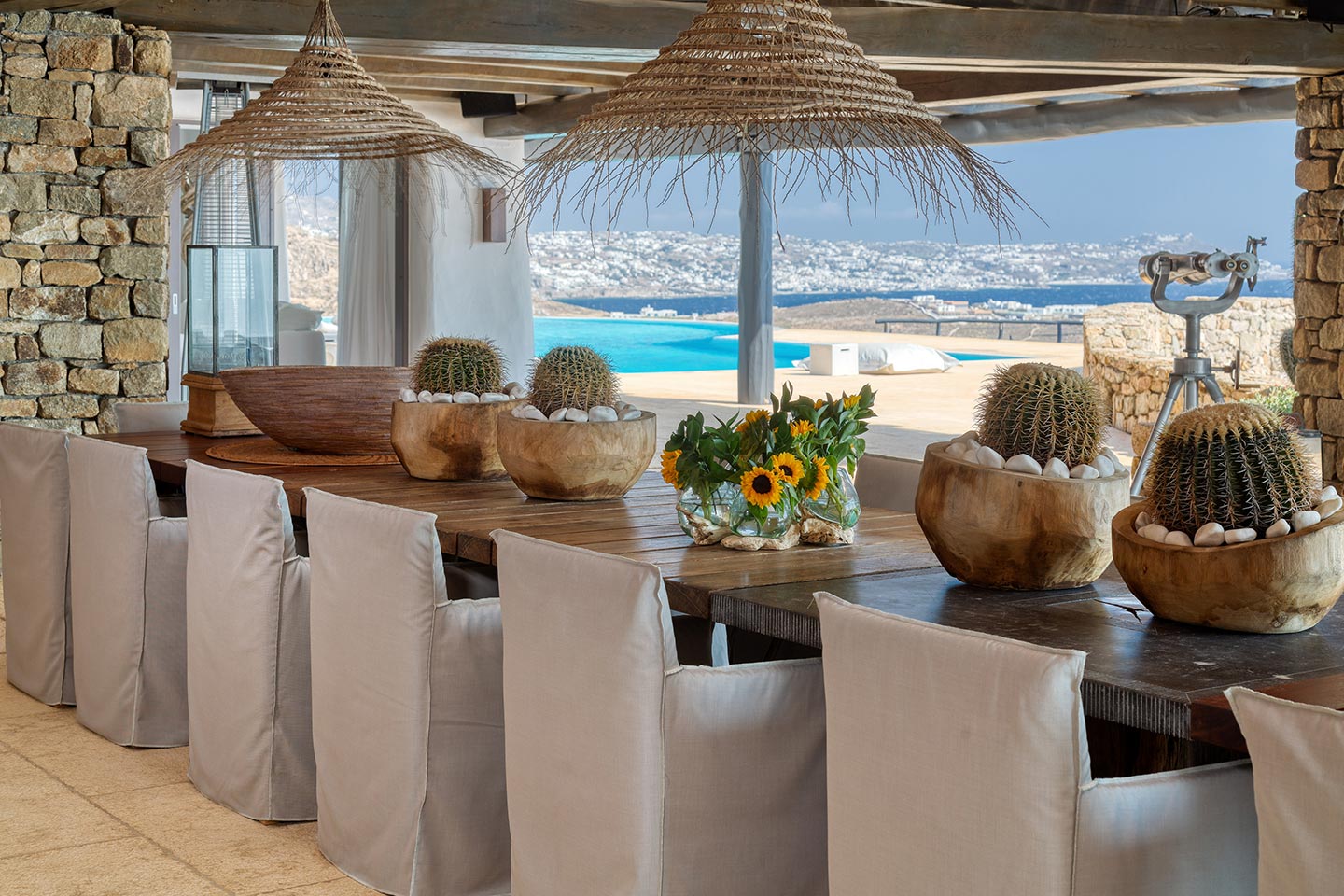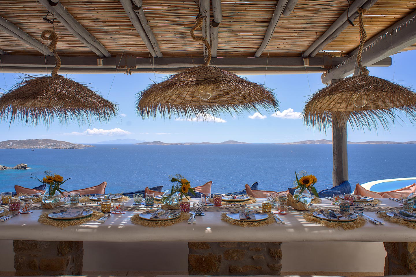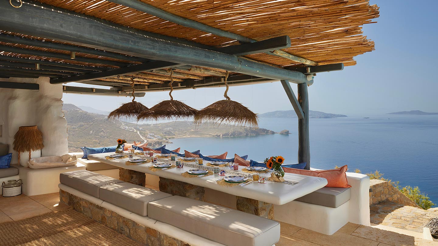 Perched majestically atop the cliffs of Houlakia, The villa stands as the crown jewel of Mykonos, offering an unparalleled private estate experience.Its strategic location provides awe-inspiring panoramic views of the azure Aegean Sea, creating a mesmerizing backdrop for an unforgettable stay.Every aspect of the villa is meticulously designed to integrate seamlessly with the island’s natural beauty. The estate’s architecture blends harmoniously with the rugged landscape, featuring a timeless stone and whitewashed exterior that embodies the quintessential Mykonian aesthetic.