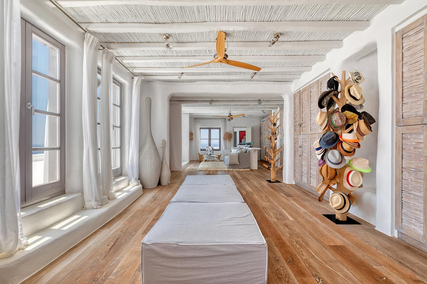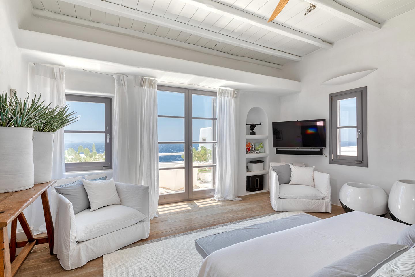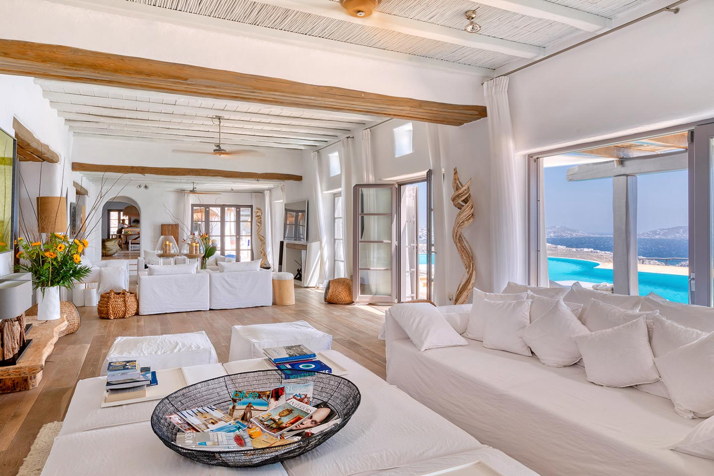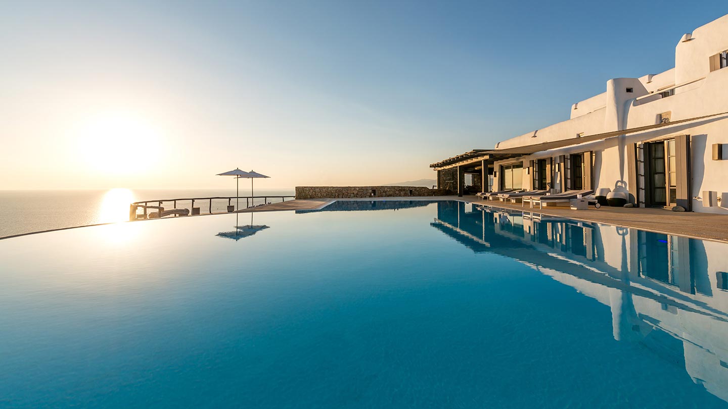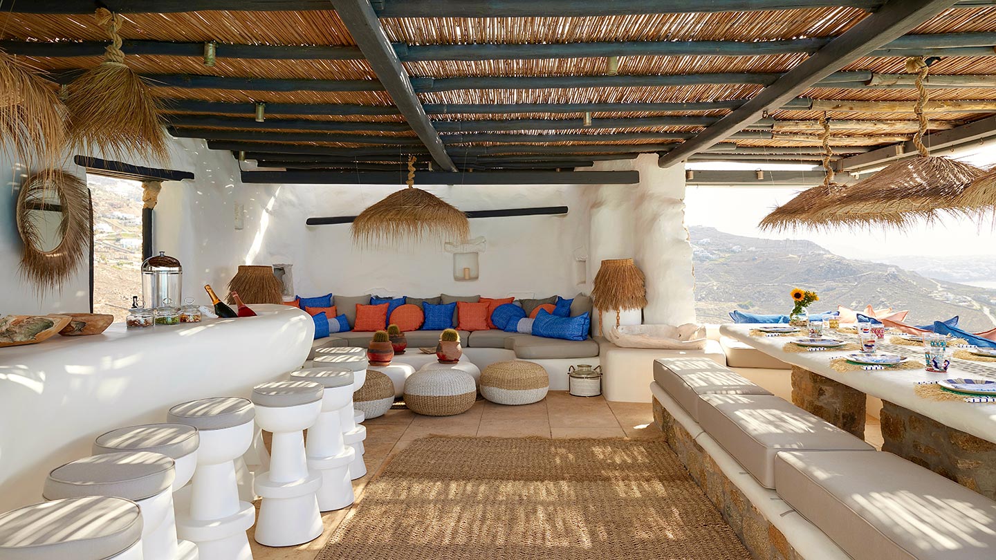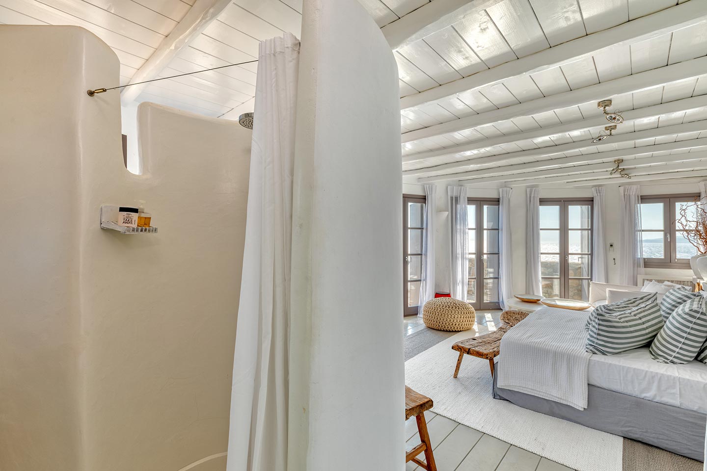 Perched majestically atop the cliffs of Houlakia, The villa stands as the crown jewel of Mykonos, offering an unparalleled private estate experience.Its strategic location provides awe-inspiring panoramic views of the azure Aegean Sea, creating a mesmerizing backdrop for an unforgettable stay.Every aspect of the villa is meticulously designed to integrate seamlessly with the island’s natural beauty. The estate’s architecture blends harmoniously with the rugged landscape, featuring a timeless stone and whitewashed exterior that embodies the quintessential Mykonian aesthetic.