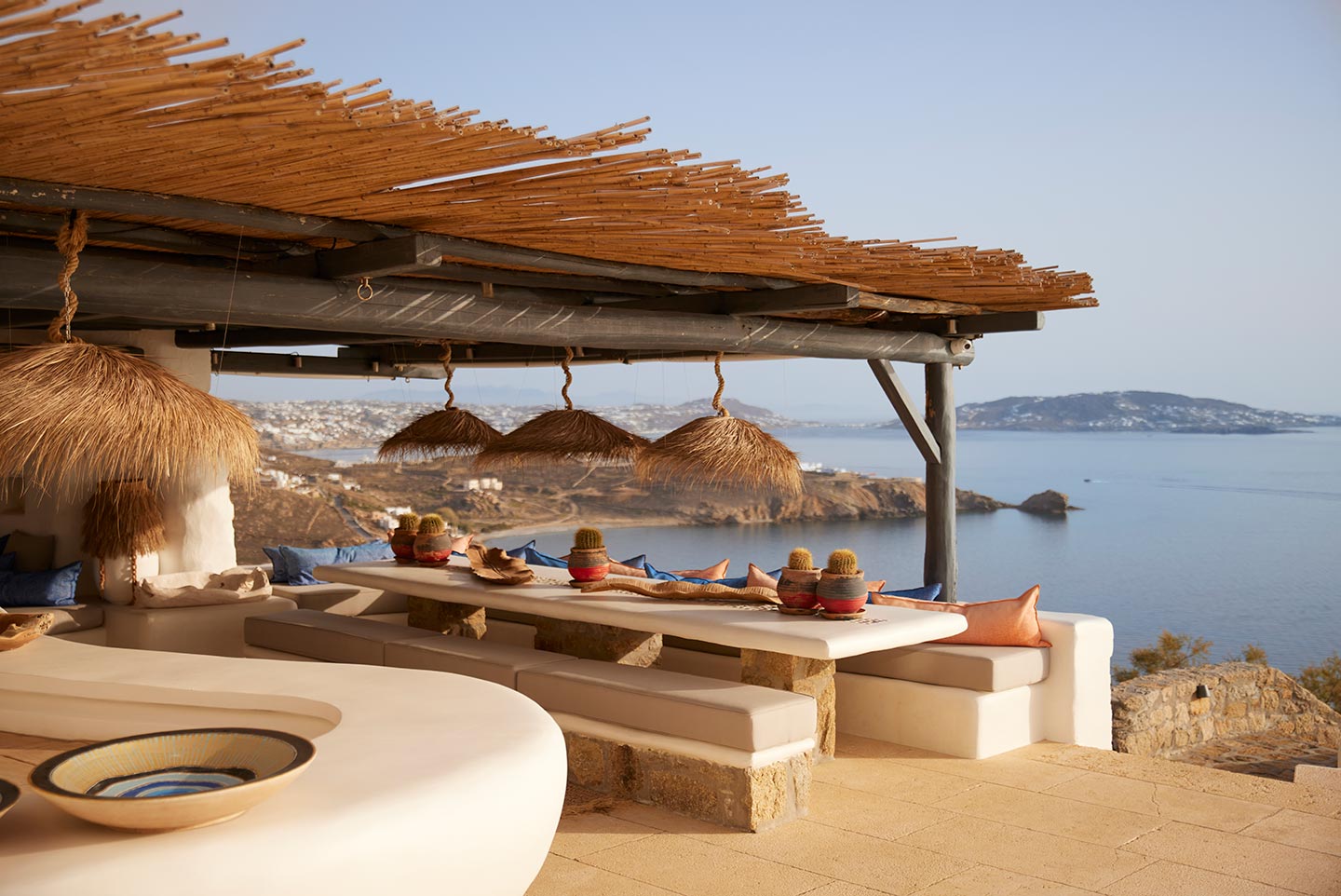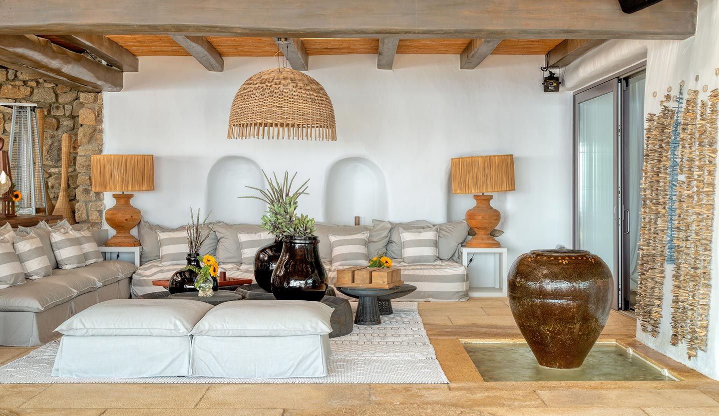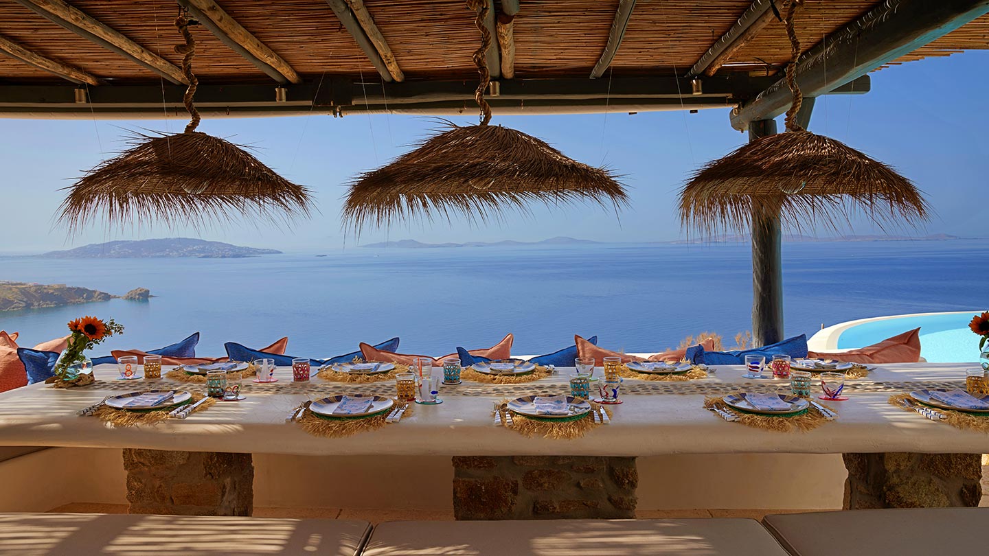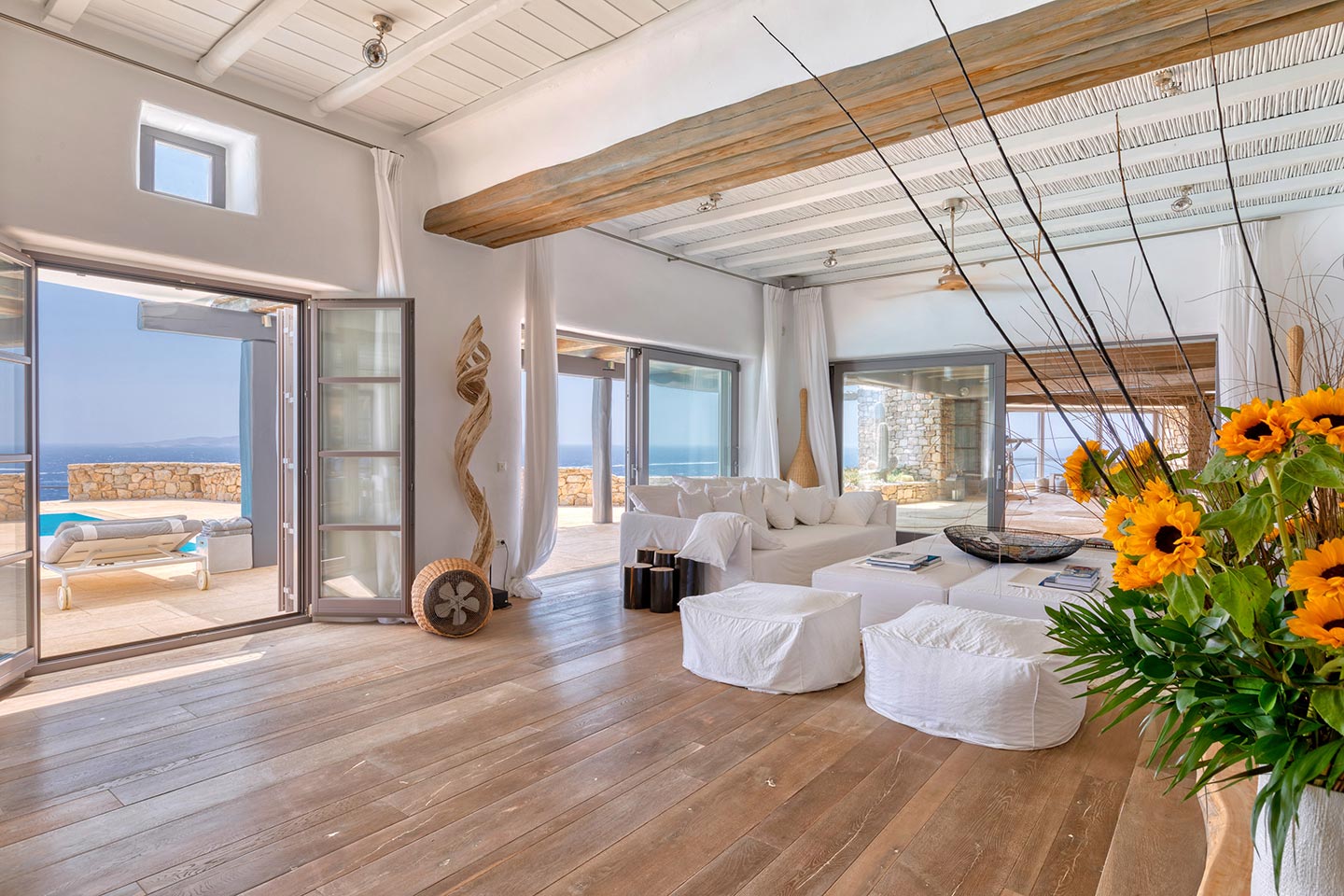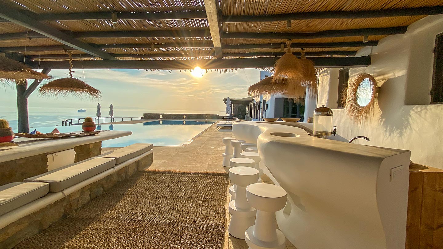 Perched majestically atop the cliffs of Houlakia, The villa stands as the crown jewel of Mykonos, offering an unparalleled private estate experience.Its strategic location provides awe-inspiring panoramic views of the azure Aegean Sea, creating a mesmerizing backdrop for an unforgettable stay.Every aspect of the villa is meticulously designed to integrate seamlessly with the island’s natural beauty. The estate’s architecture blends harmoniously with the rugged landscape, featuring a timeless stone and whitewashed exterior that embodies the quintessential Mykonian aesthetic.