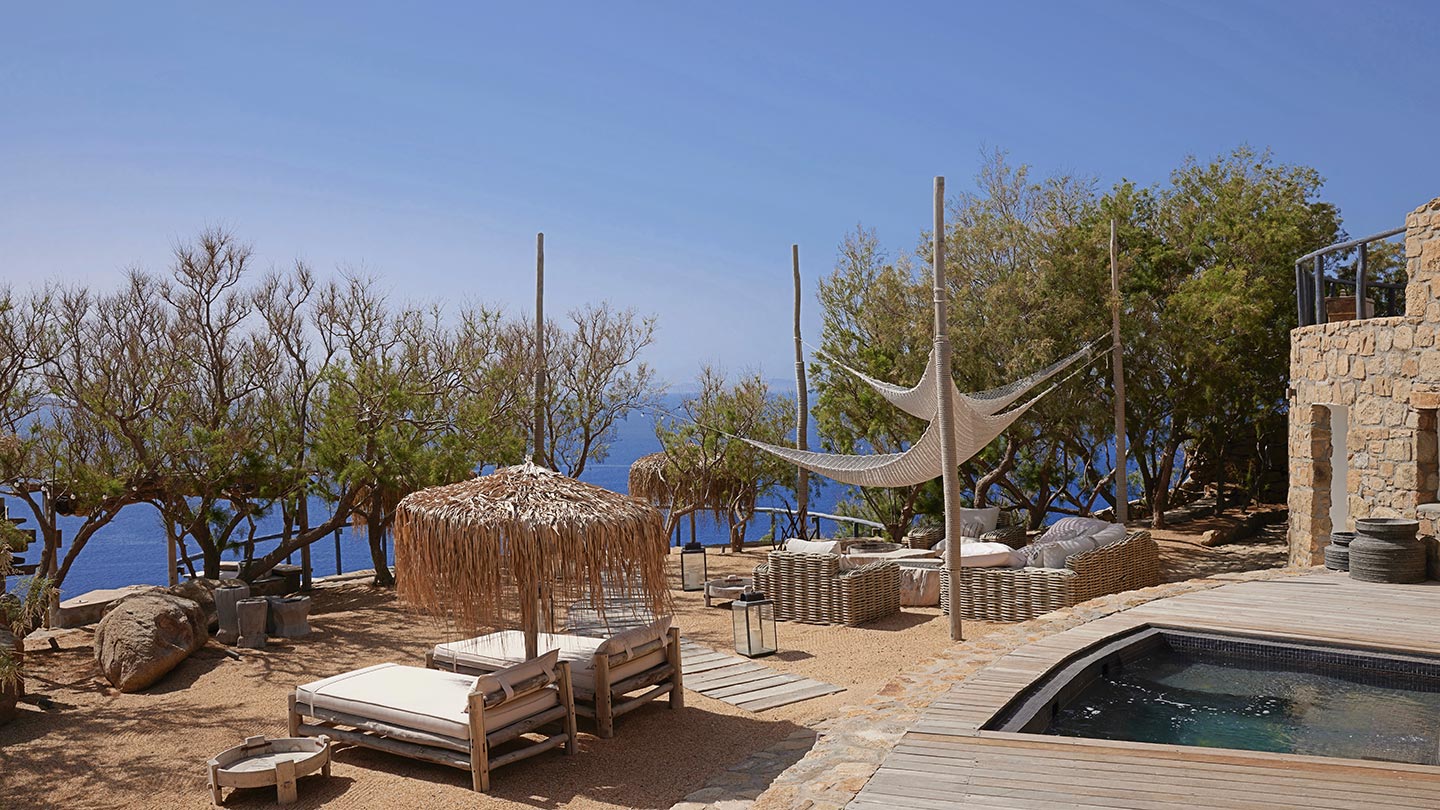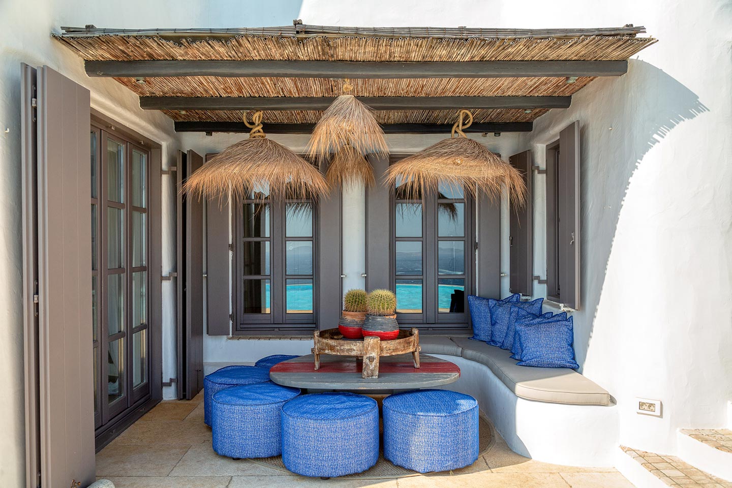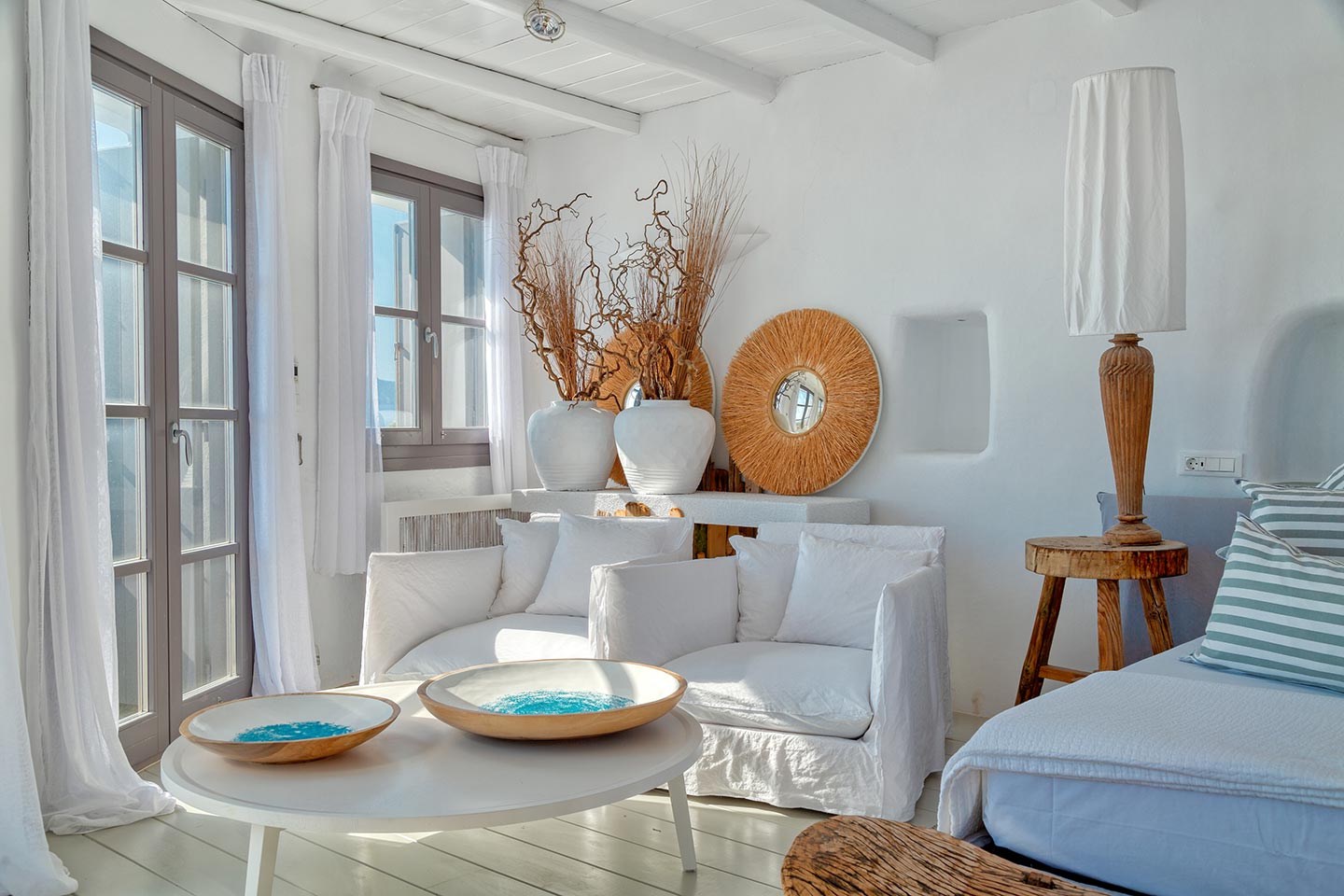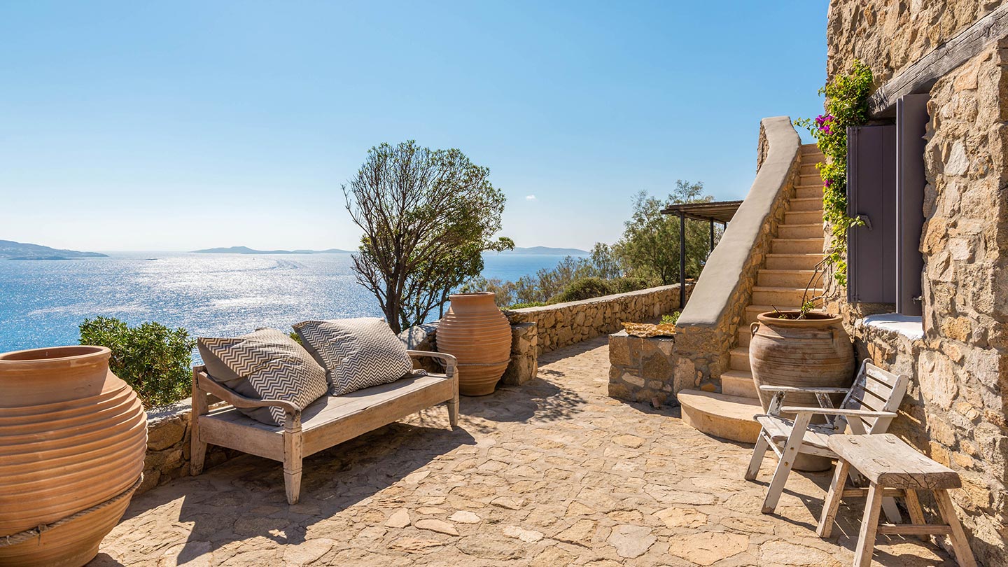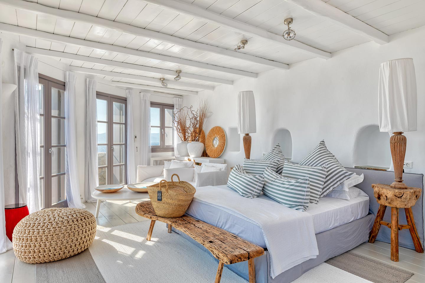 Perched majestically atop the cliffs of Houlakia, The villa stands as the crown jewel of Mykonos, offering an unparalleled private estate experience.Its strategic location provides awe-inspiring panoramic views of the azure Aegean Sea, creating a mesmerizing backdrop for an unforgettable stay.Every aspect of the villa is meticulously designed to integrate seamlessly with the island’s natural beauty. The estate’s architecture blends harmoniously with the rugged landscape, featuring a timeless stone and whitewashed exterior that embodies the quintessential Mykonian aesthetic.