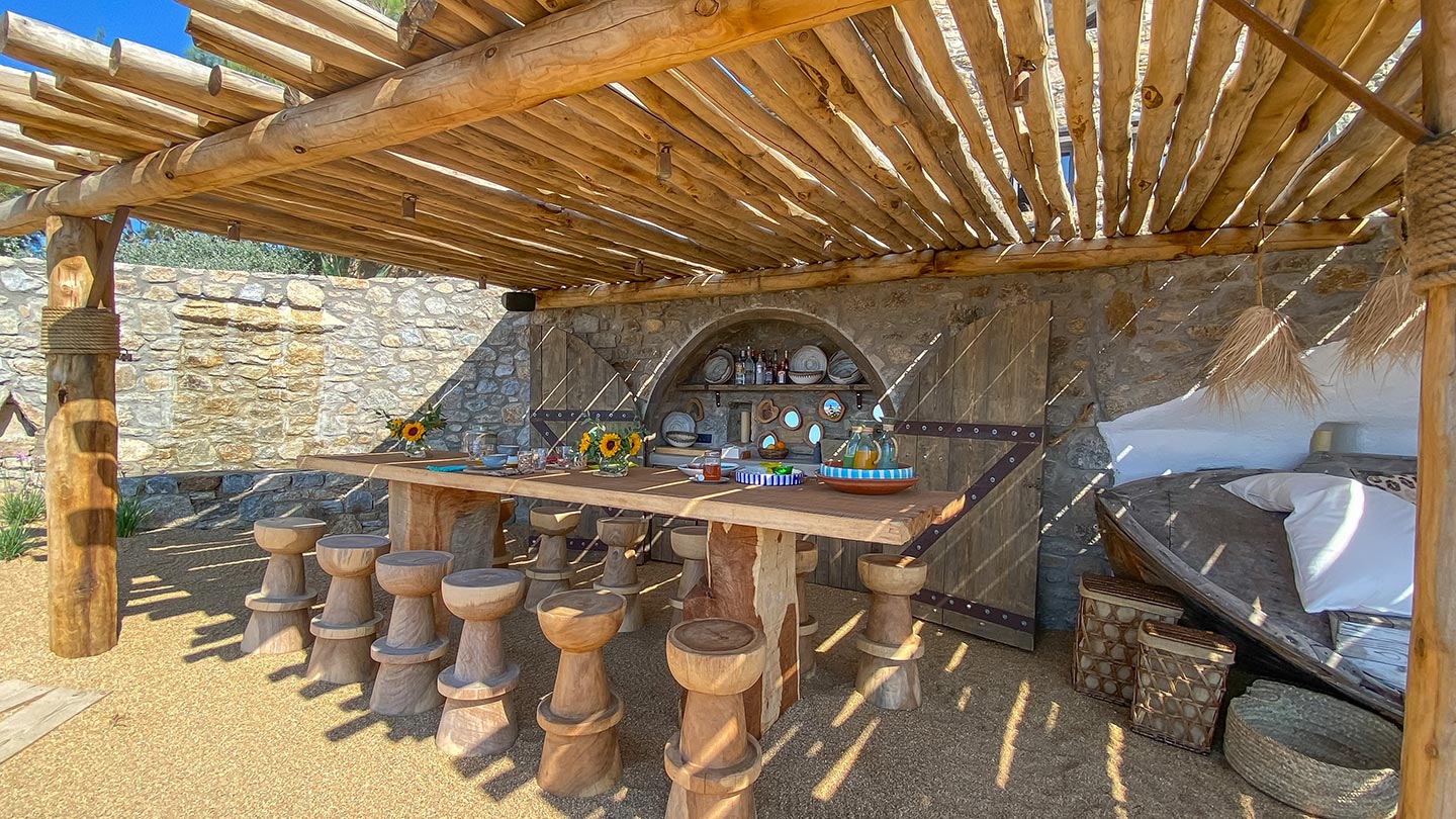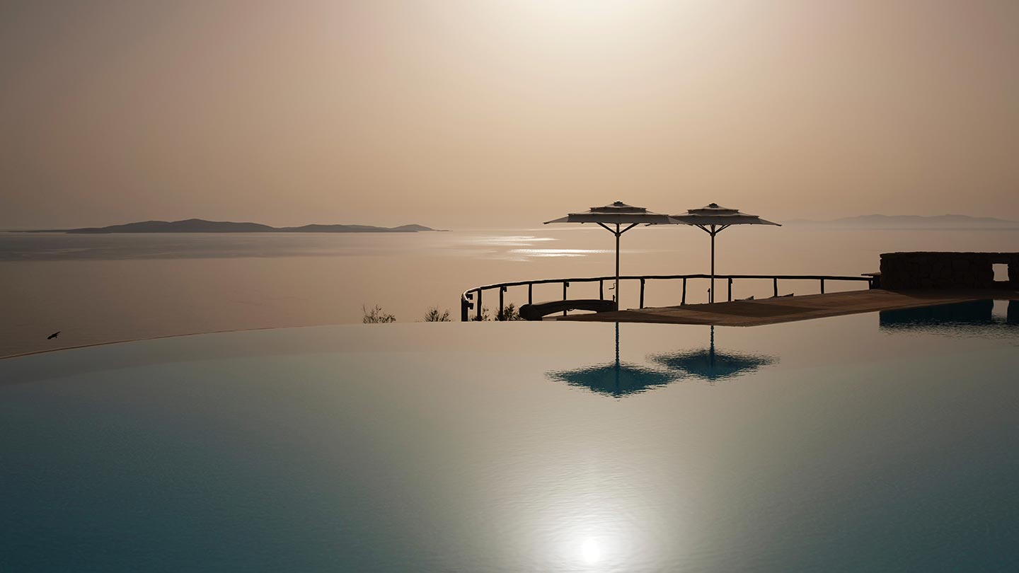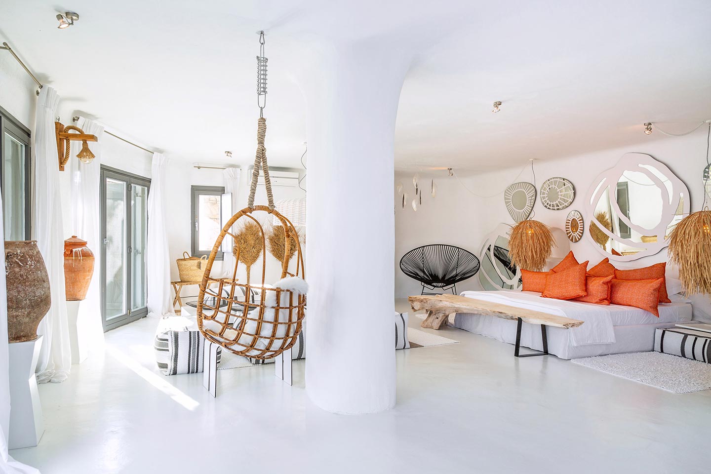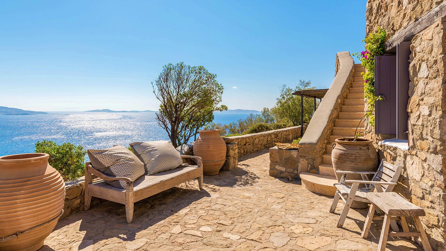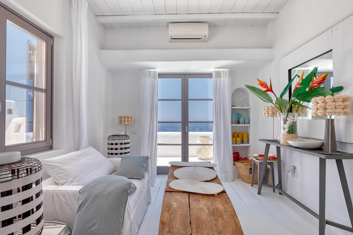 Perched majestically atop the cliffs of Houlakia, The villa stands as the crown jewel of Mykonos, offering an unparalleled private estate experience.Its strategic location provides awe-inspiring panoramic views of the azure Aegean Sea, creating a mesmerizing backdrop for an unforgettable stay.Every aspect of the villa is meticulously designed to integrate seamlessly with the island’s natural beauty. The estate’s architecture blends harmoniously with the rugged landscape, featuring a timeless stone and whitewashed exterior that embodies the quintessential Mykonian aesthetic.