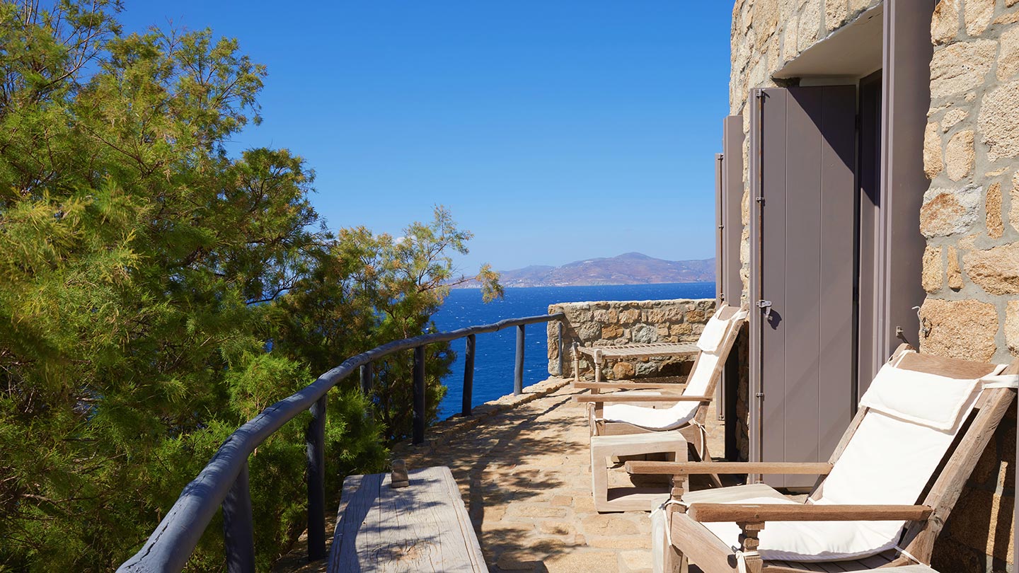 • The 7 guests’s bedrooms, each featuring ensuite facilities, private terraces, and stunning sea views.