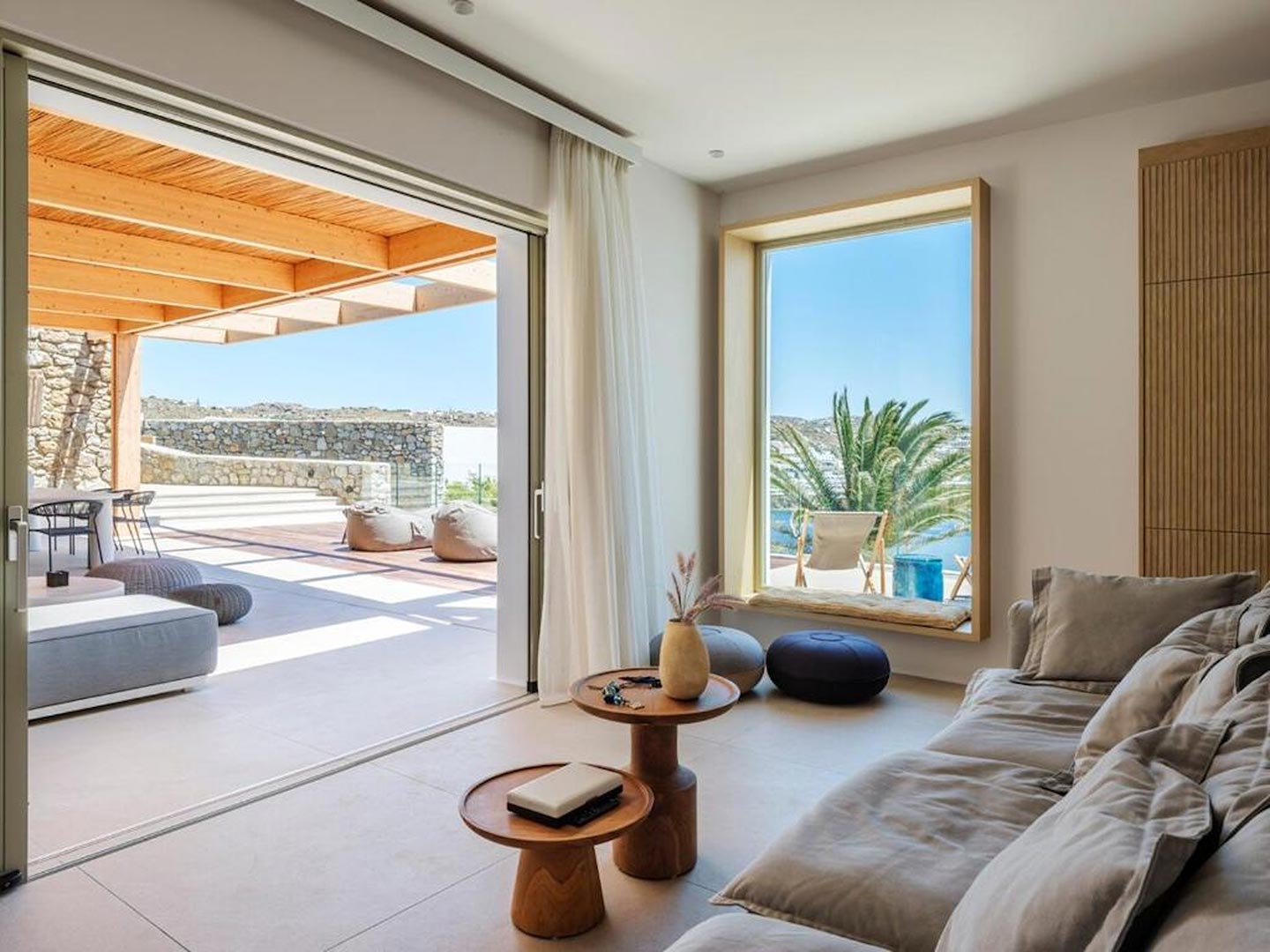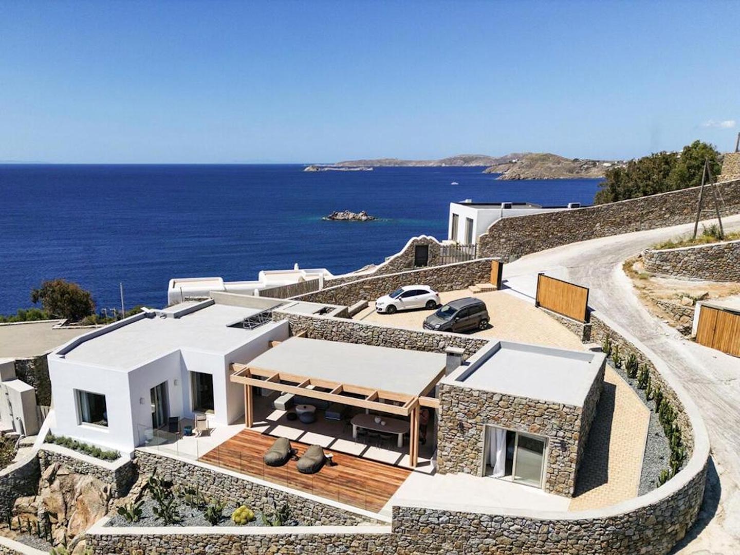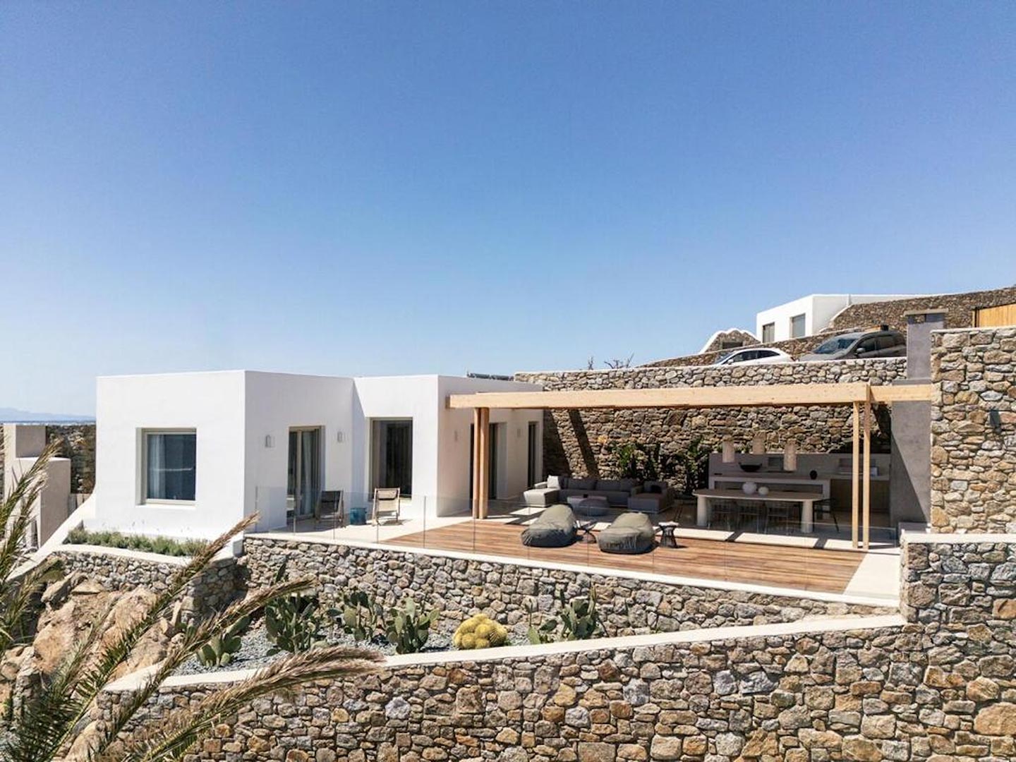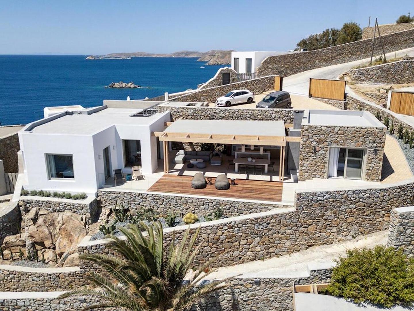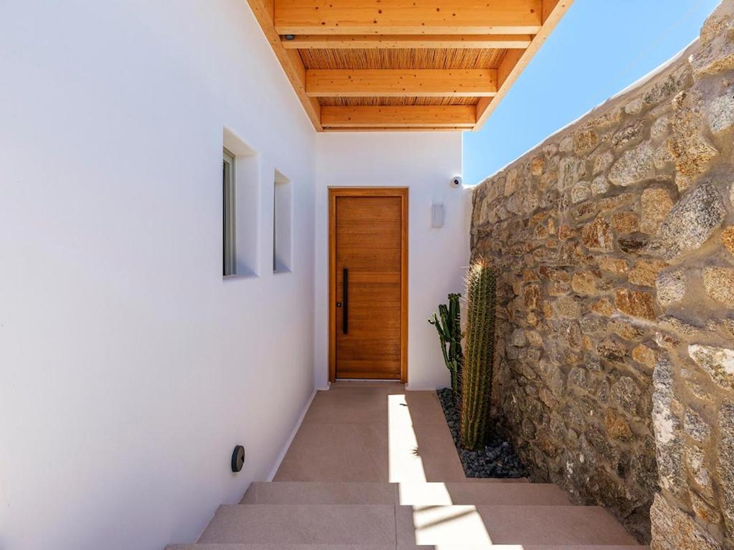 Located just steps from one of the most iconic beaches in the Mediterranean, this exceptional villa offers a harmonious blend of contemporary luxury, refined design, and a prime coastal setting. Recently constructed and elegantly updated, the residence exemplifies upscale island living at its finest.The property features three generously sized master bedrooms, each with a private en-suite bathroom, ensuring comfort and privacy for all guests. An additional guest bathroom enhances everyday convenience. The villa's interior is designed with a modern open-plan concept, connecting a fully equipped kitchen, an inviting dining area, and a bright, spacious living room that opens directly onto a sunlit terrace and stylish outdoor lounge area. This seamless flow between indoor and outdoor spaces invites guests to embrace the relaxed rhythm of Mediterranean life.