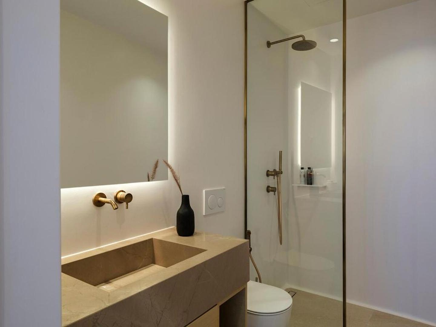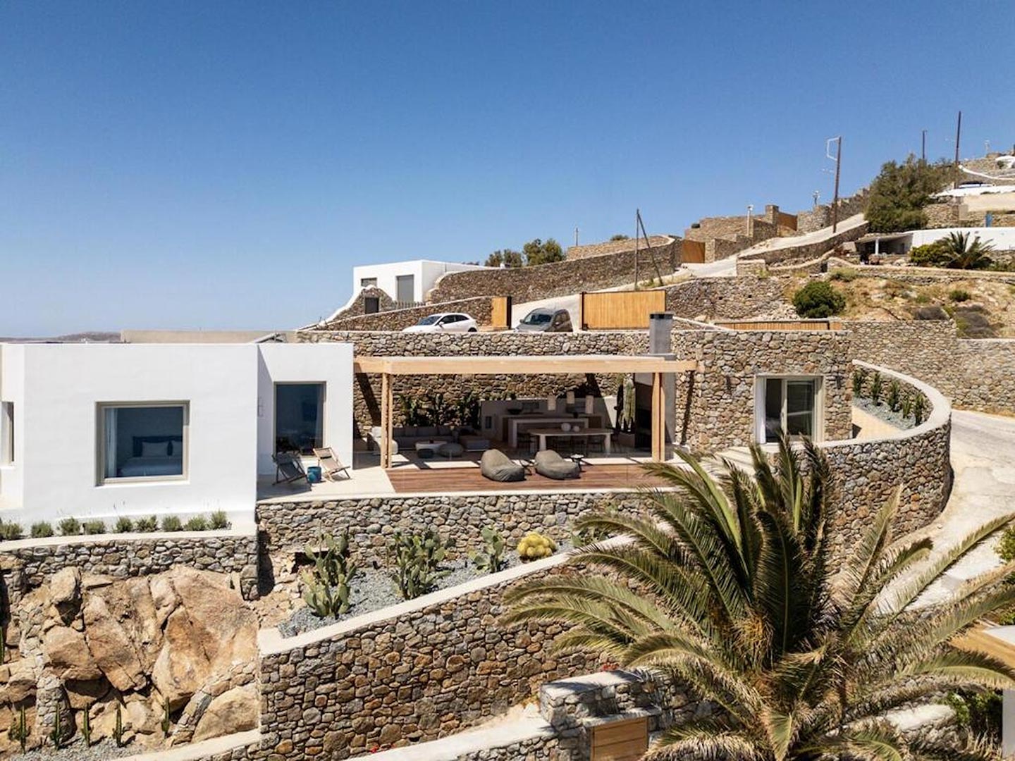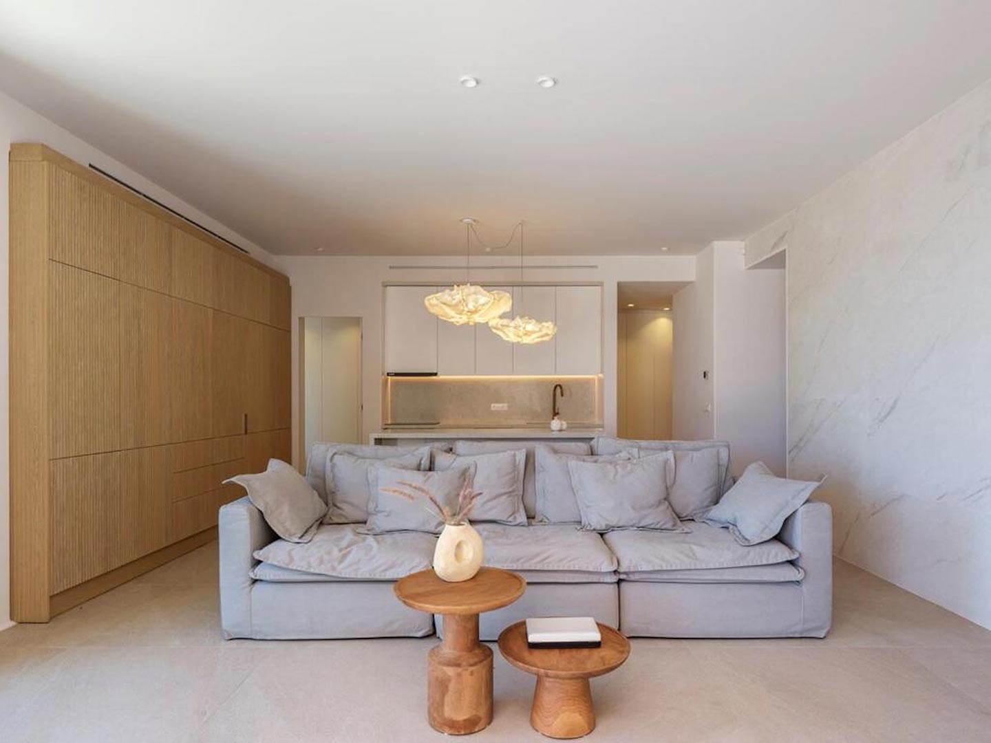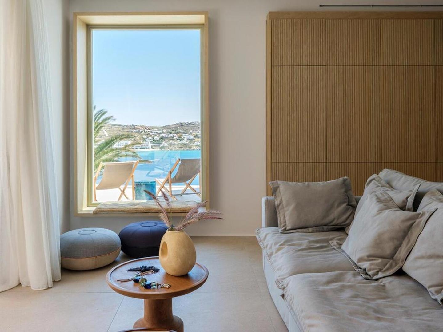 Located just steps from one of the most iconic beaches in the Mediterranean, this exceptional villa offers a harmonious blend of contemporary luxury, refined design, and a prime coastal setting. Recently constructed and elegantly updated, the residence exemplifies upscale island living at its finest.The property features three generously sized master bedrooms, each with a private en-suite bathroom, ensuring comfort and privacy for all guests. An additional guest bathroom enhances everyday convenience. The villa's interior is designed with a modern open-plan concept, connecting a fully equipped kitchen, an inviting dining area, and a bright, spacious living room that opens directly onto a sunlit terrace and stylish outdoor lounge area. This seamless flow between indoor and outdoor spaces invites guests to embrace the relaxed rhythm of Mediterranean life.