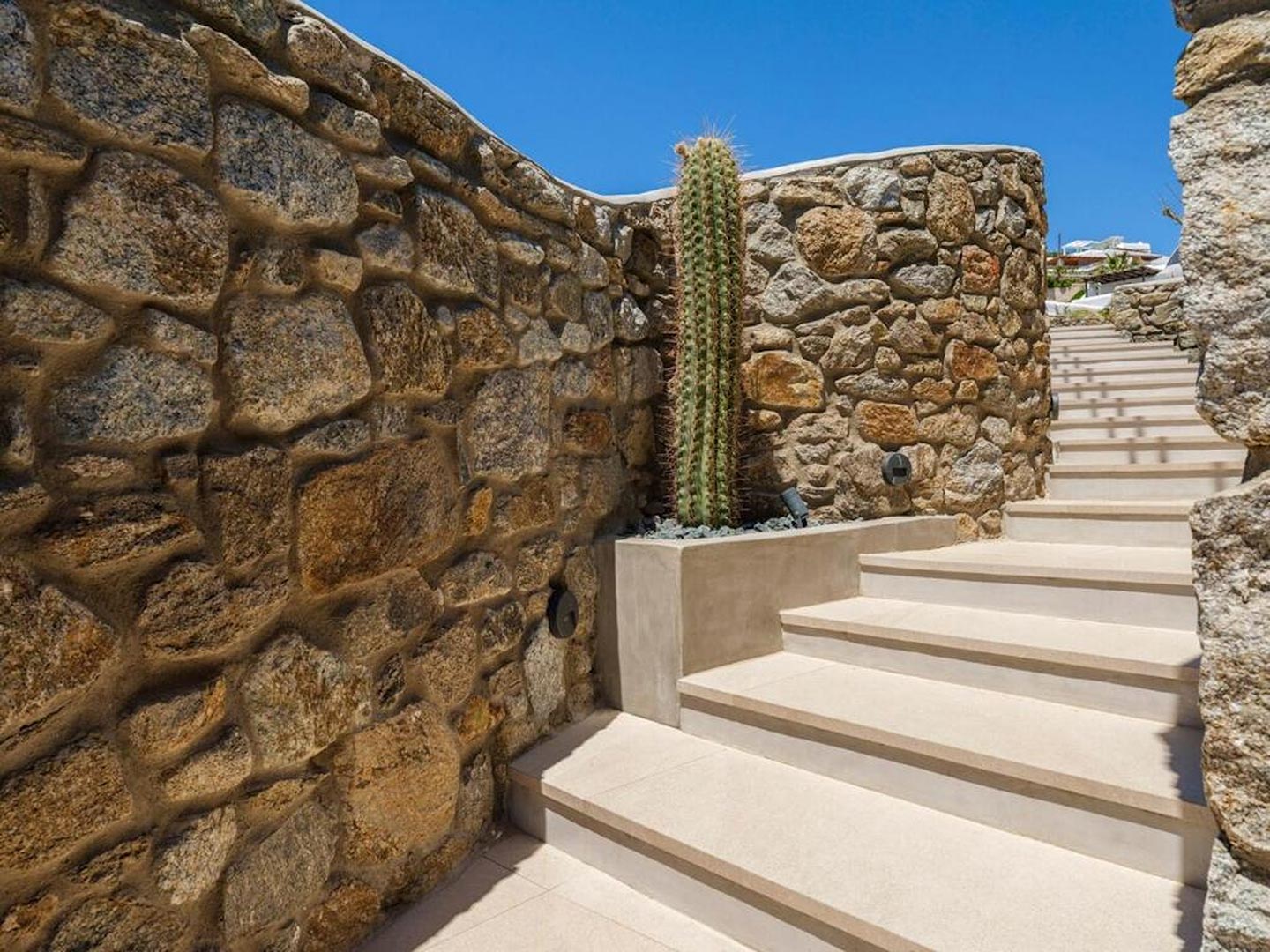 The outdoor areas are thoughtfully designed for both leisure and entertainment. With sweeping sea views across a celebrated bay and a favorable south-facing orientation, the villa enjoys abundant natural light throughout the day. Guests can dine alfresco in the designated outdoor dining space, take advantage of the built-in barbecue, or enjoy refreshments at the private bar while taking in the coastal scenery.Inside, the home is outfitted with modern amenities to ensure a comfortable and effortless stay. These include high-speed WiFi, satellite television, a washing machine, dryer, central air conditioning, and a backup generator to provide uninterrupted service.