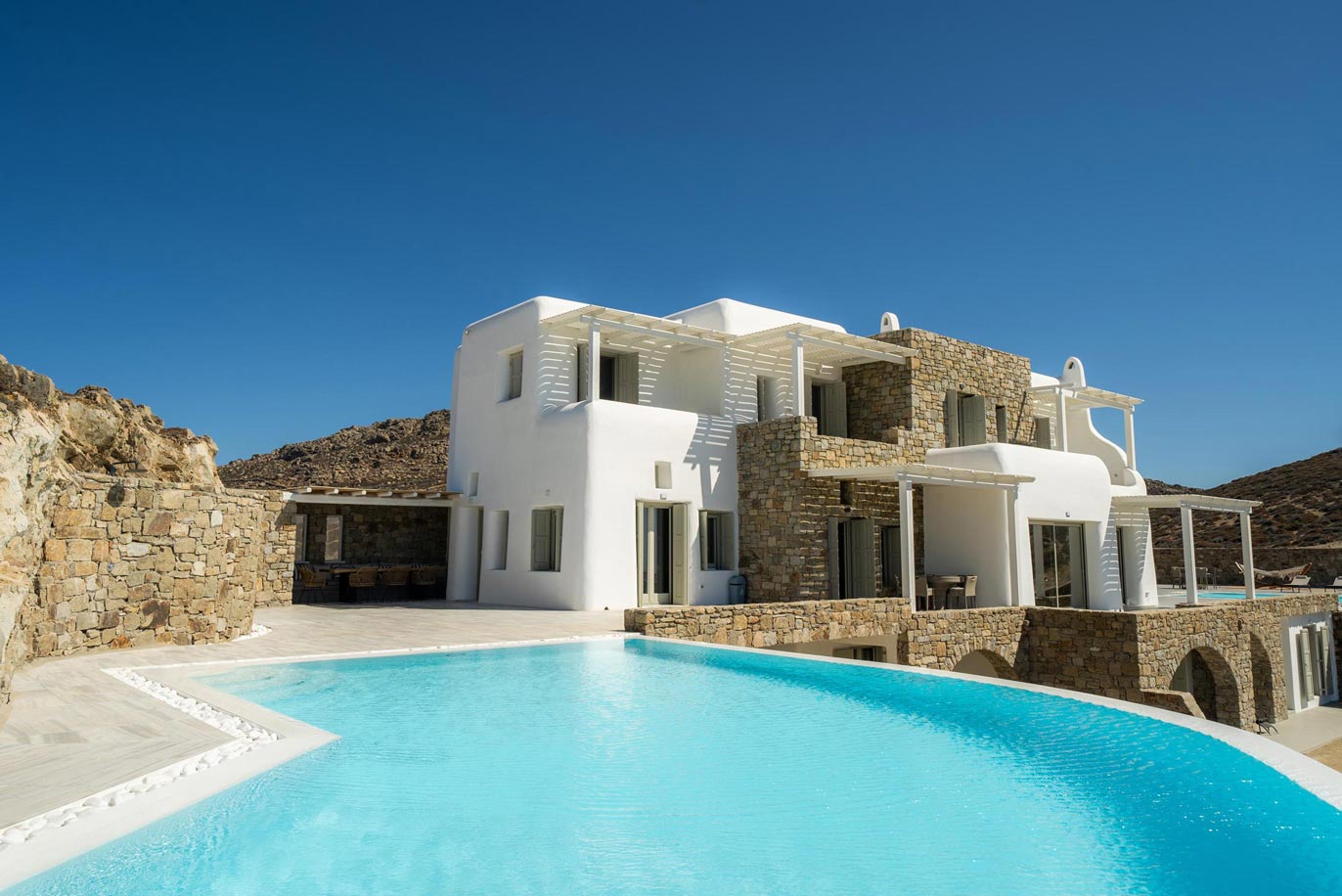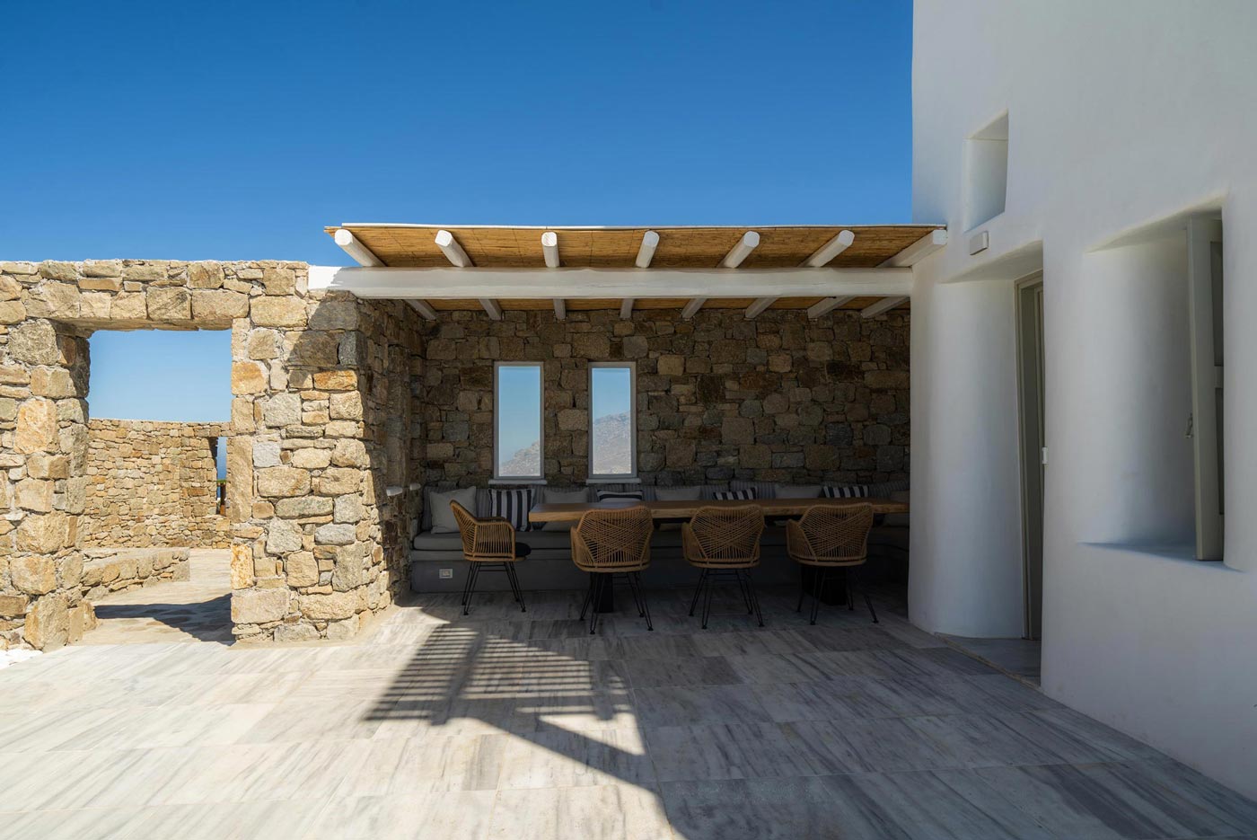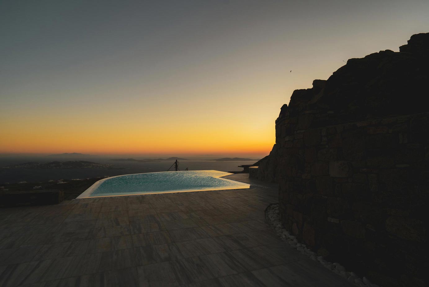 Villa Medusa is a luxurious 260 sqm Mykonian residence that blends minimalist and Cycladic architecture, featuring natural rock elements and classic whitewashed accents. Perched atop the mountain in the Kastro area, it offers unparalleled sea and sunset views. The villa comfortably accommodates up to 12 guests across three levels: ground, first, and lower. The ground floor hosts an open-plan living and dining area, along with a fully equipped kitchen, all with direct access to the pool area. The lower level features two double bedrooms with ensuite bathrooms, sea views, and access to a balcony, and two double bedrooms with ensuite bathrooms. On the first floor, there are two double bedrooms with ensuite bathrooms, both boasting breathtaking sea views and private balconies. Outdoors, guests can enjoy a private infinity pool with sunbeds, a shaded lounge, and dining area. Balconies offer additional lounge and dining spaces with stunning sea views. Whether you're after an active escape or a mindful retreat, Anemos sets the perfect vibe for all.