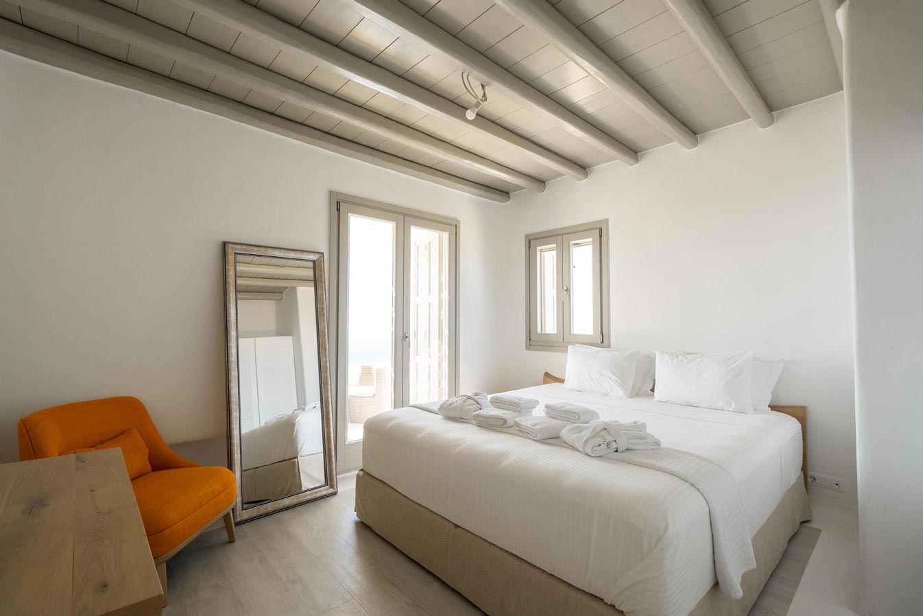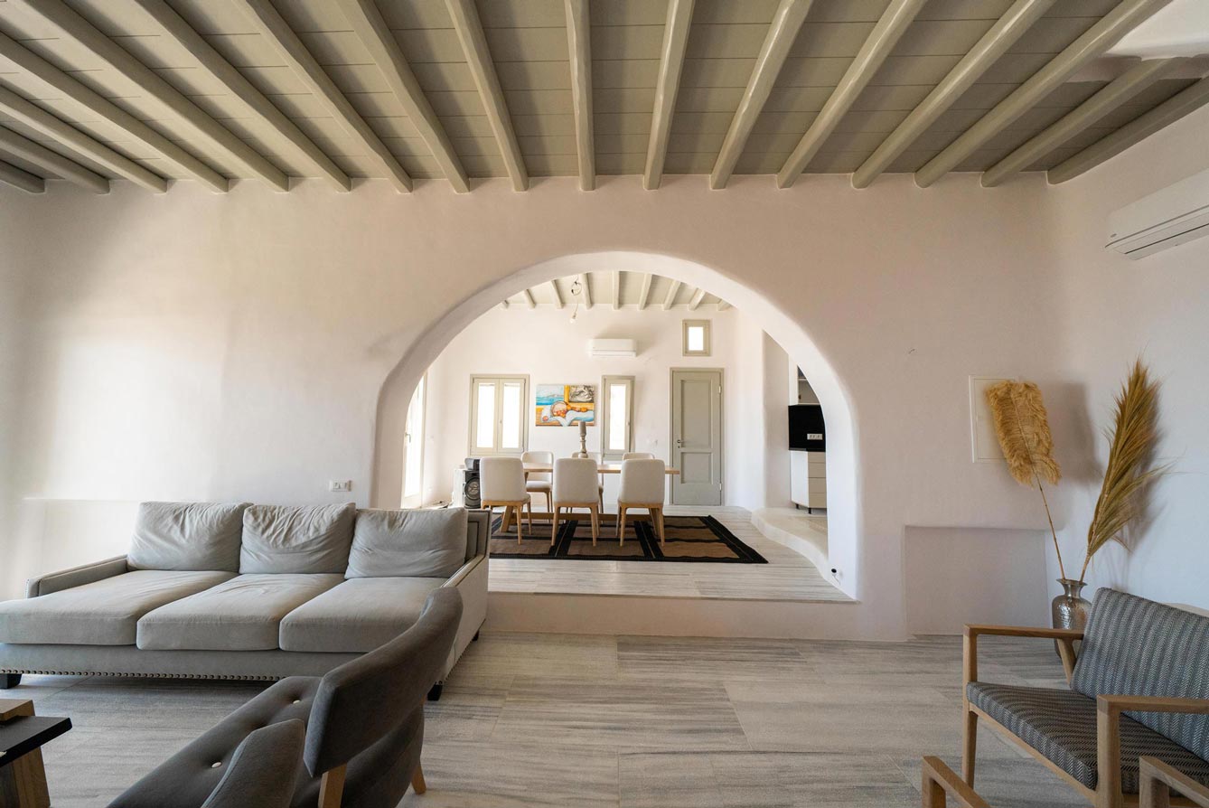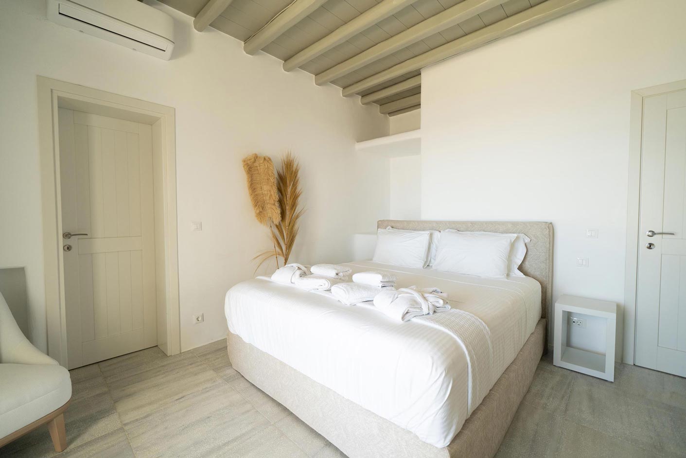 Villa Medusa is a luxurious 260 sqm Mykonian residence that blends minimalist and Cycladic architecture, featuring natural rock elements and classic whitewashed accents. Perched atop the mountain in the Kastro area, it offers unparalleled sea and sunset views. The villa comfortably accommodates up to 12 guests across three levels: ground, first, and lower. The ground floor hosts an open-plan living and dining area, along with a fully equipped kitchen, all with direct access to the pool area. The lower level features two double bedrooms with ensuite bathrooms, sea views, and access to a balcony, and two double bedrooms with ensuite bathrooms. On the first floor, there are two double bedrooms with ensuite bathrooms, both boasting breathtaking sea views and private balconies. Outdoors, guests can enjoy a private infinity pool with sunbeds, a shaded lounge, and dining area. Balconies offer additional lounge and dining spaces with stunning sea views. Whether you're after an active escape or a mindful retreat, Anemos sets the perfect vibe for all.