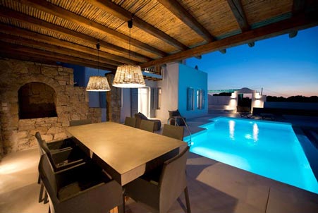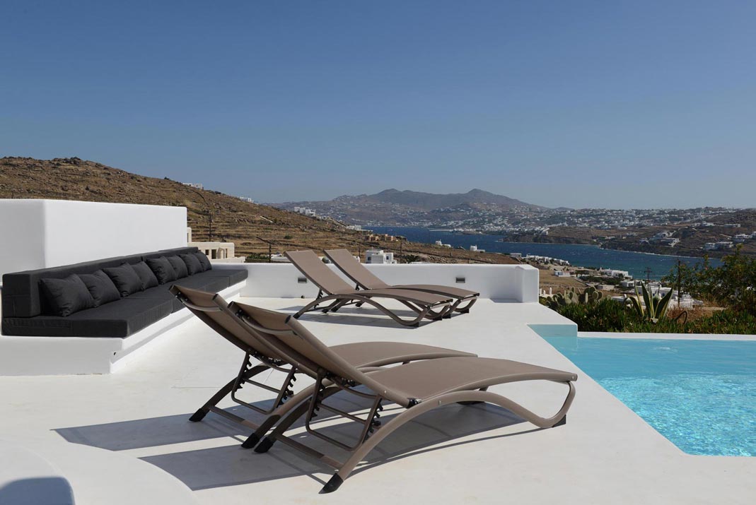 A wonderful 150 m² Villa with 3 bedrooms and private pool, located ideally between St. John & Ornos Beach, featuring stunning views of the Aegean Sea and the picturesque windmills of Mykonos Town. Stylishly contemporary interiors are well-matched with the stunning outside area, where the private swimming pool stands as point of reference, lined with trendy sun-chairs and a shaded dining area, that provides a cool spot from the heated sun.